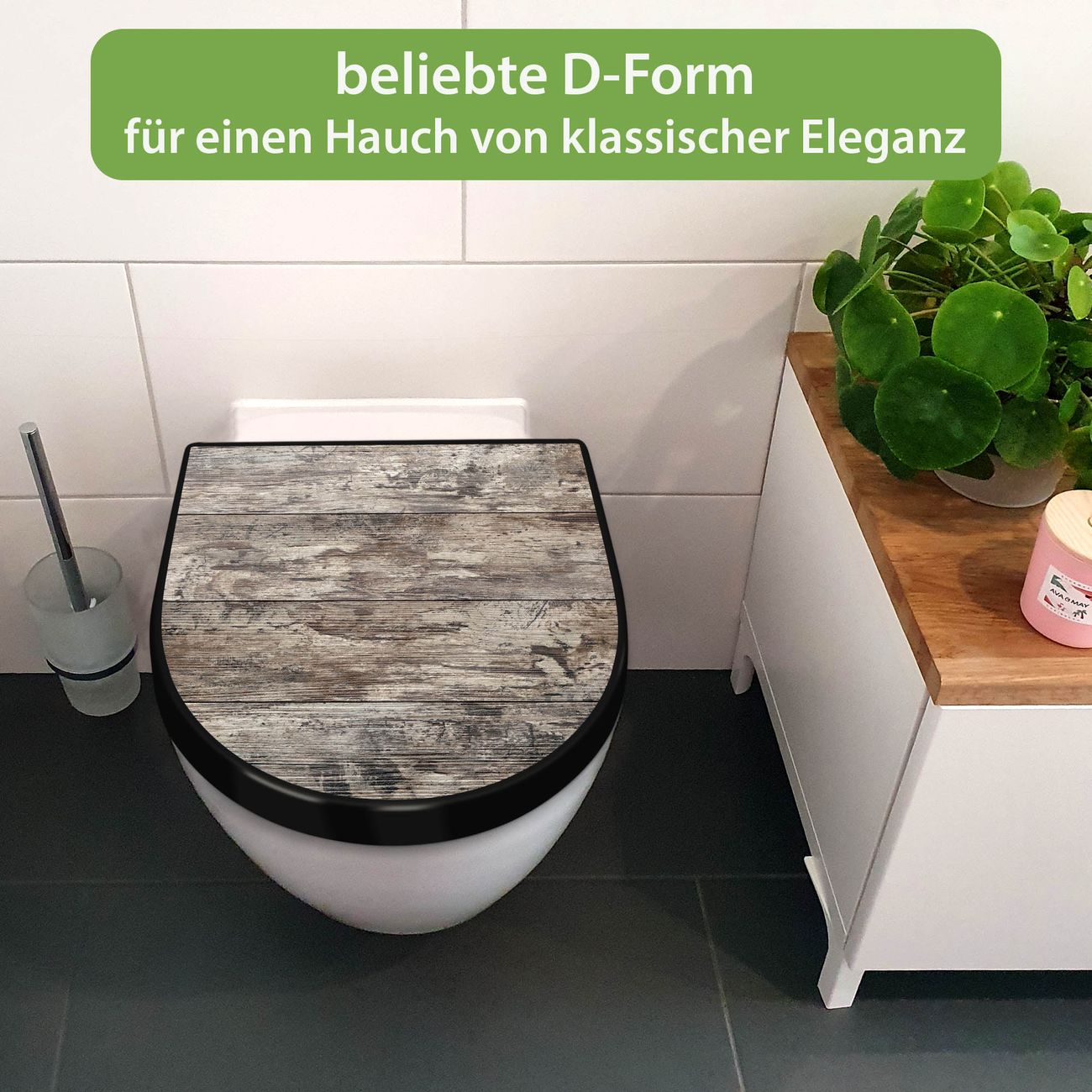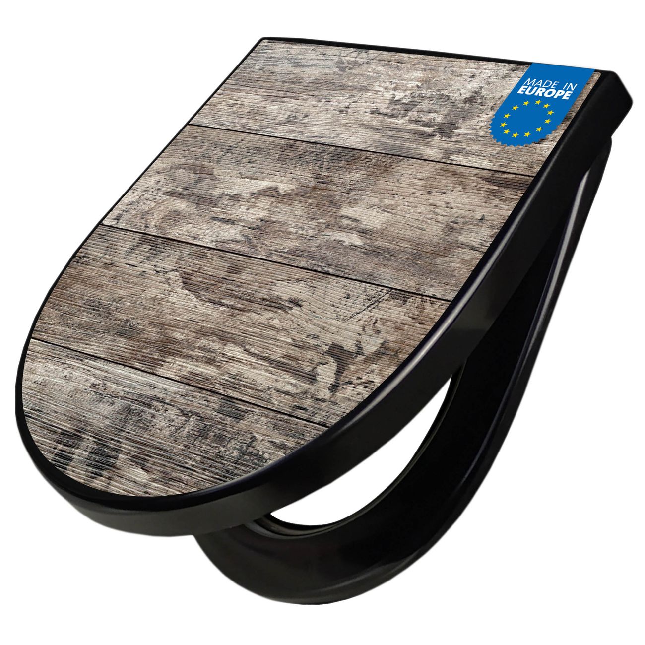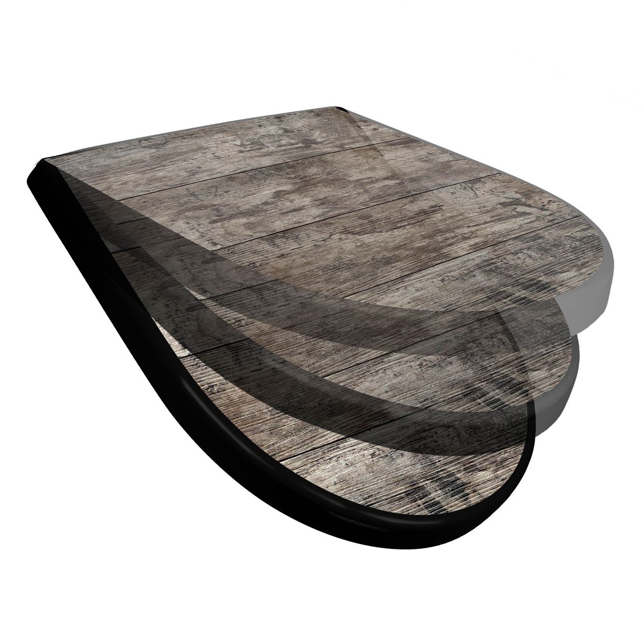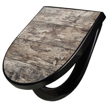 WC Sitz D-Form Schwarz mit Absenkautomatik Motiv Alte Planken