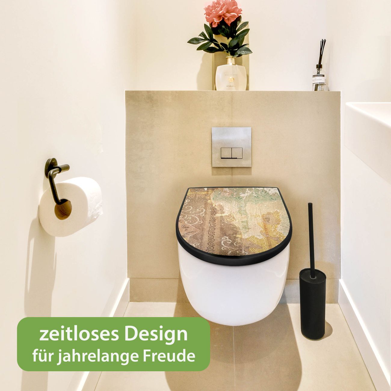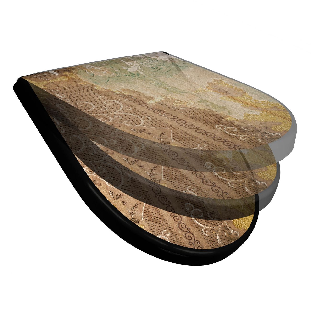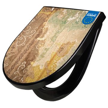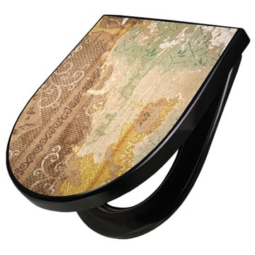 WC Sitz D-Form Schwarz mit Absenkautomatik Motiv Alte Tapeten