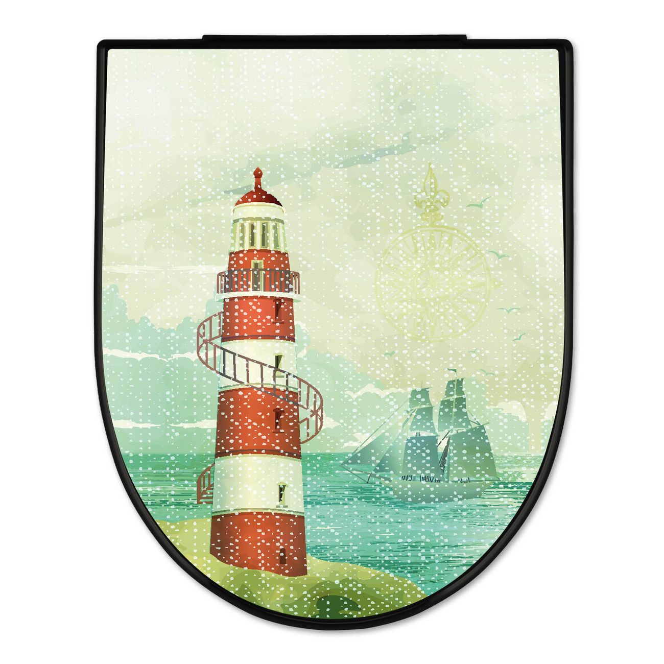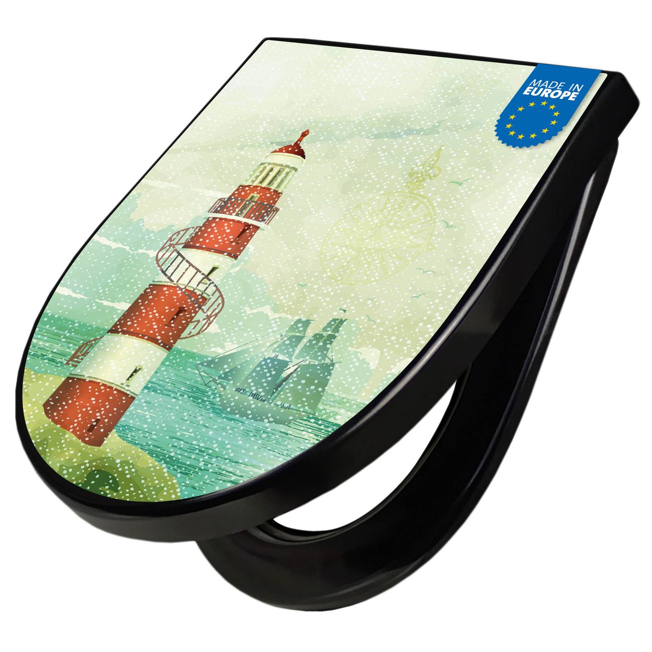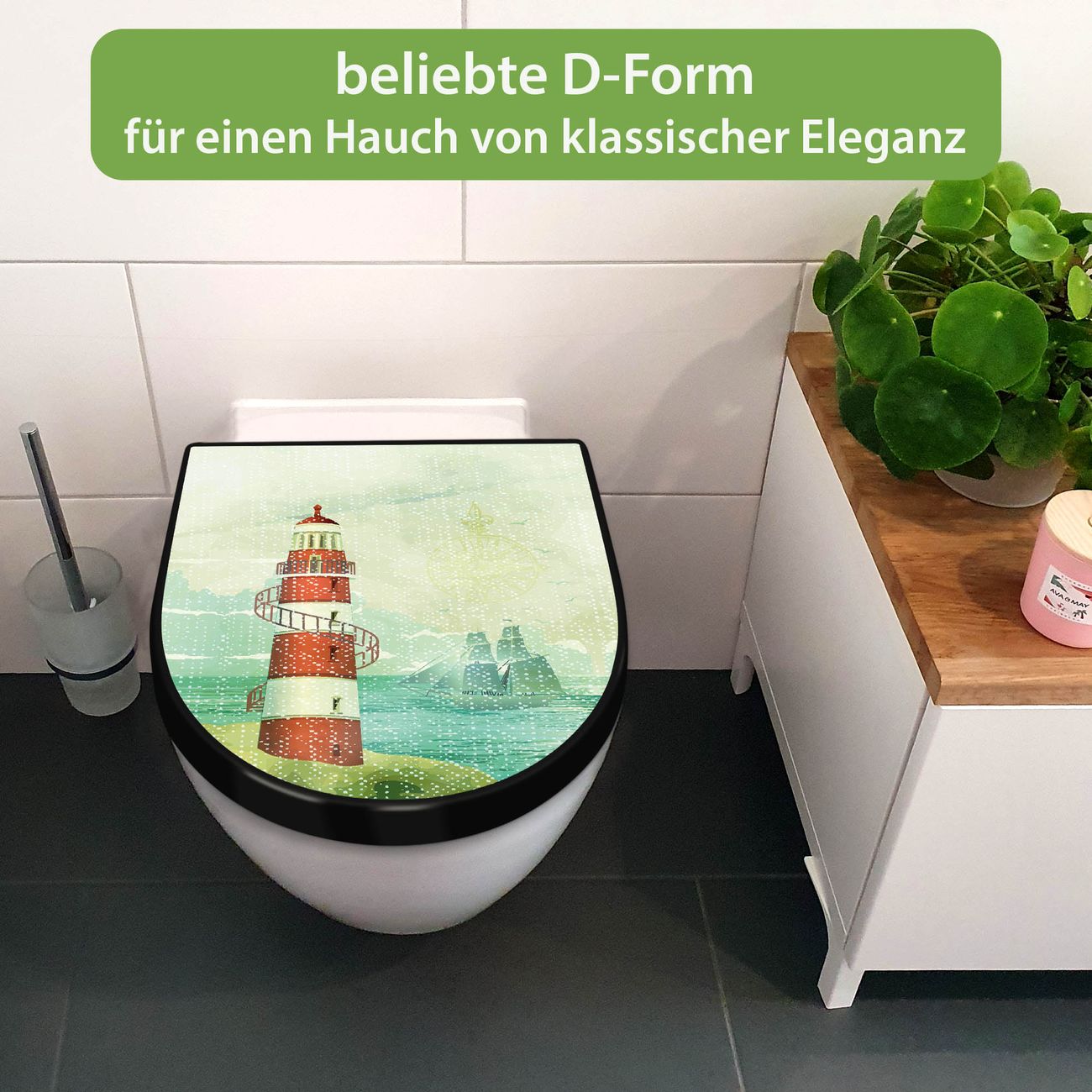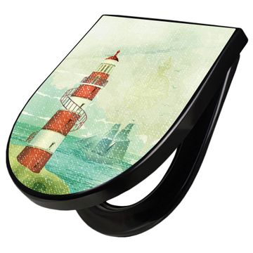 WC Sitz D-Form Schwarz mit Absenkautomatik Motiv Alter Leuchtturm