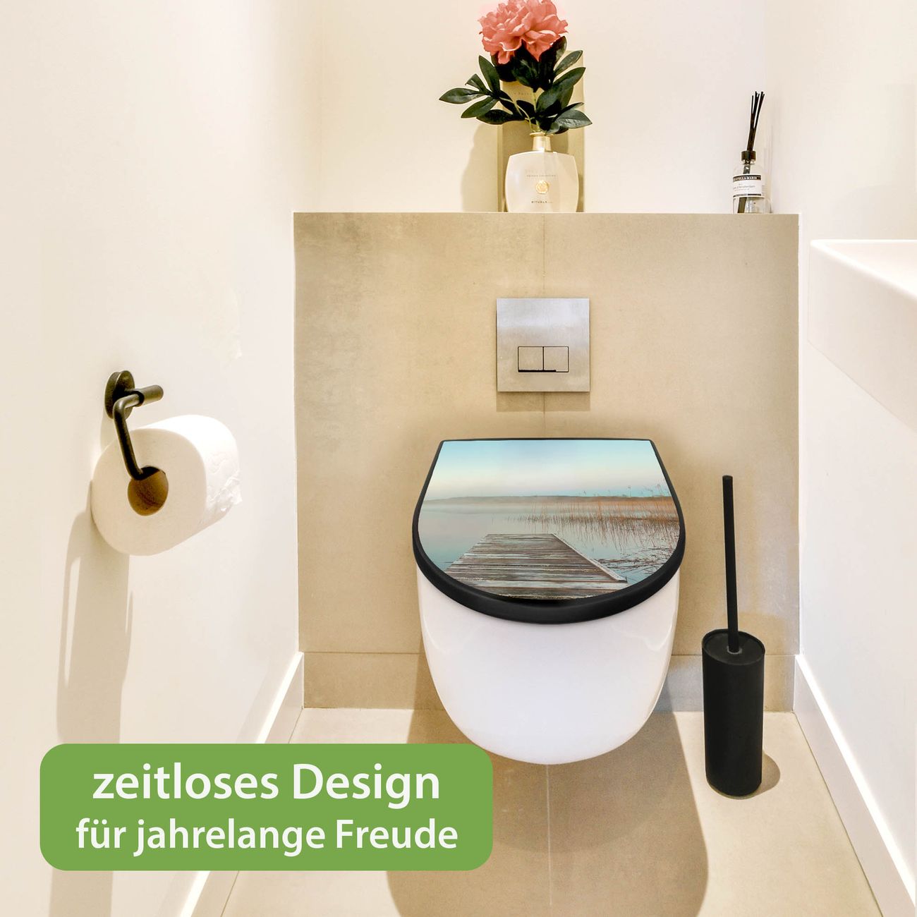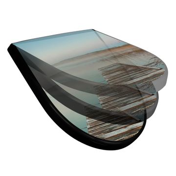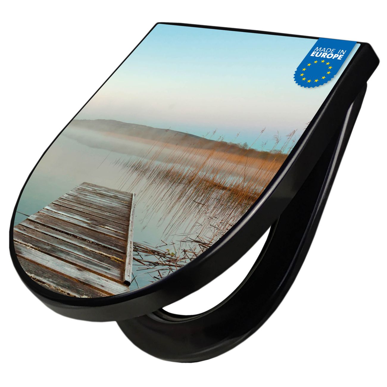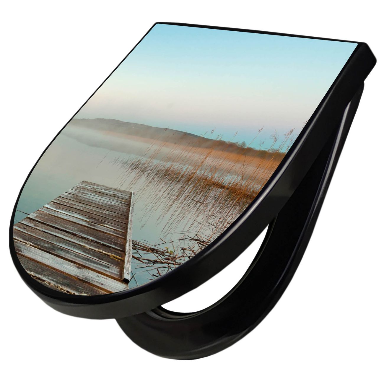 WC Sitz D-Form Schwarz mit Absenkautomatik Motiv Alter Steg