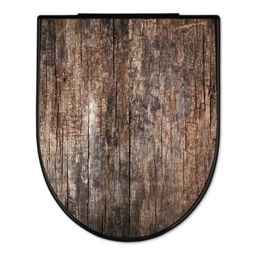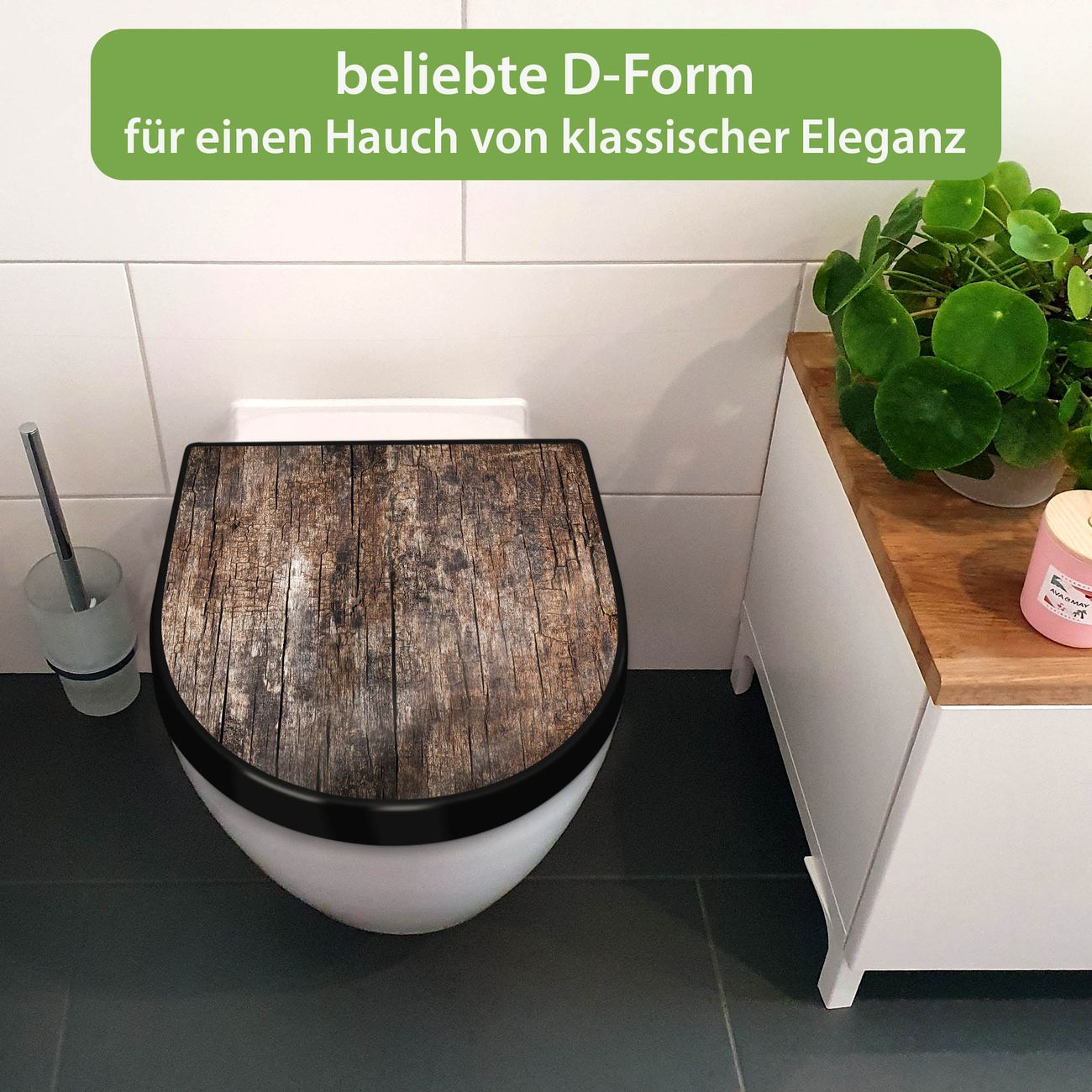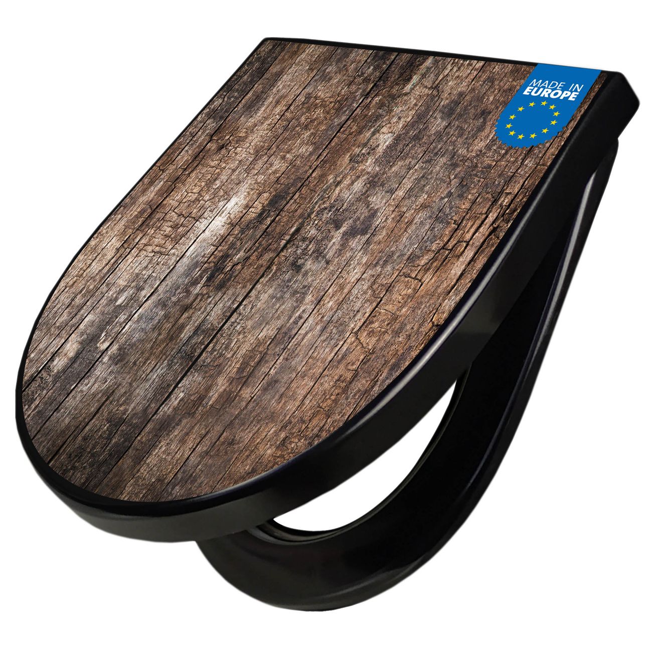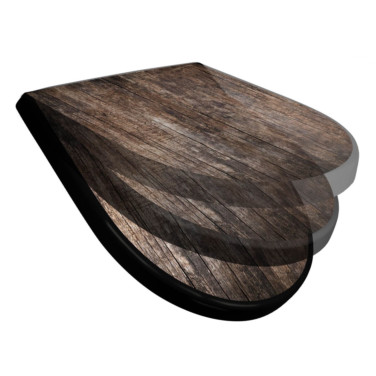 WC Sitz D-Form Schwarz mit Absenkautomatik Motiv Altes Holz
