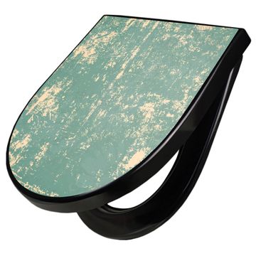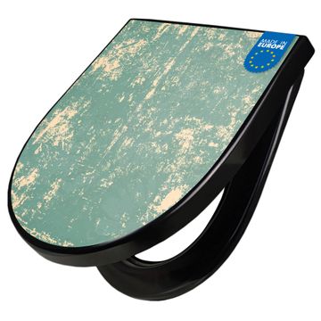 WC Sitz D-Form Schwarz mit Absenkautomatik Motiv Altes Papier