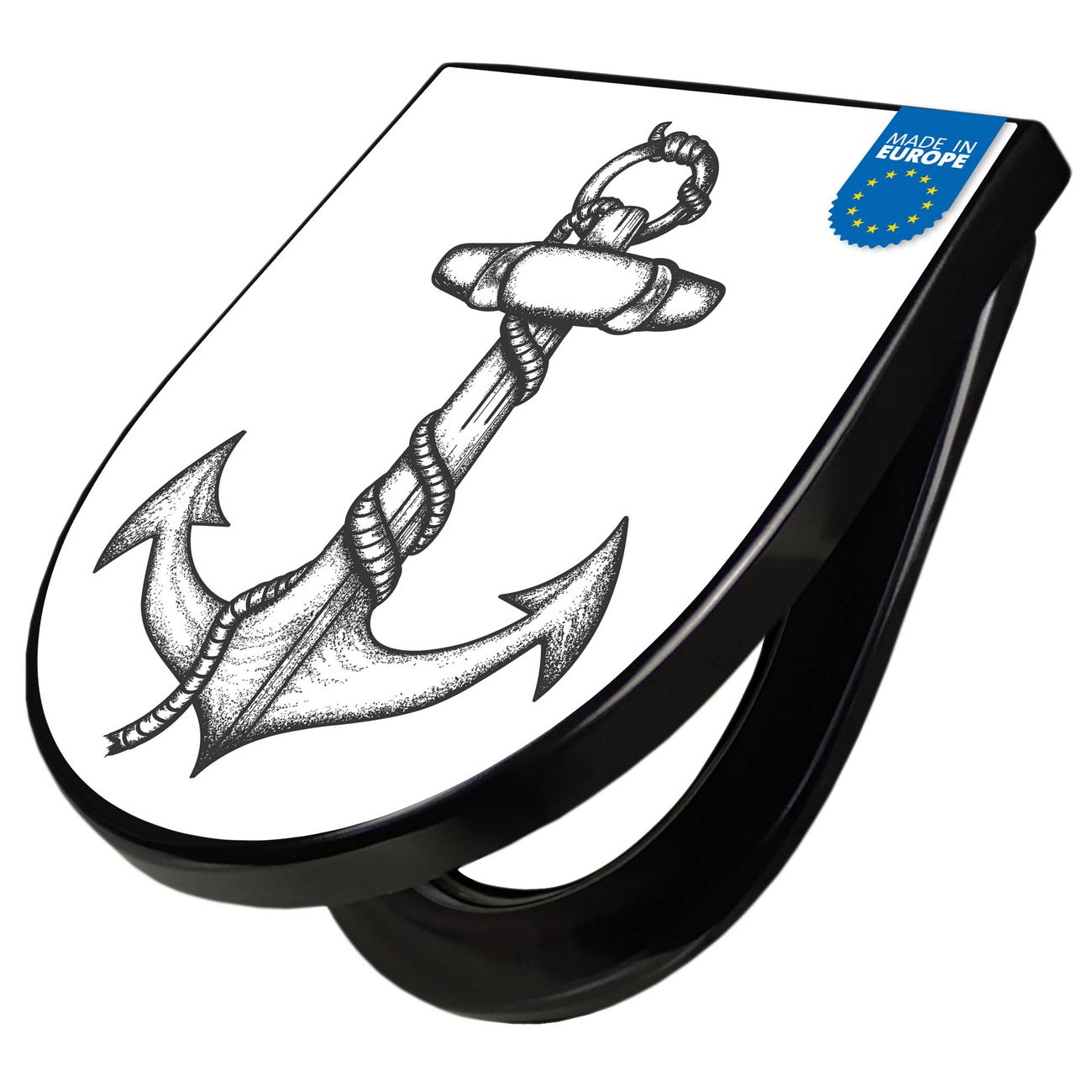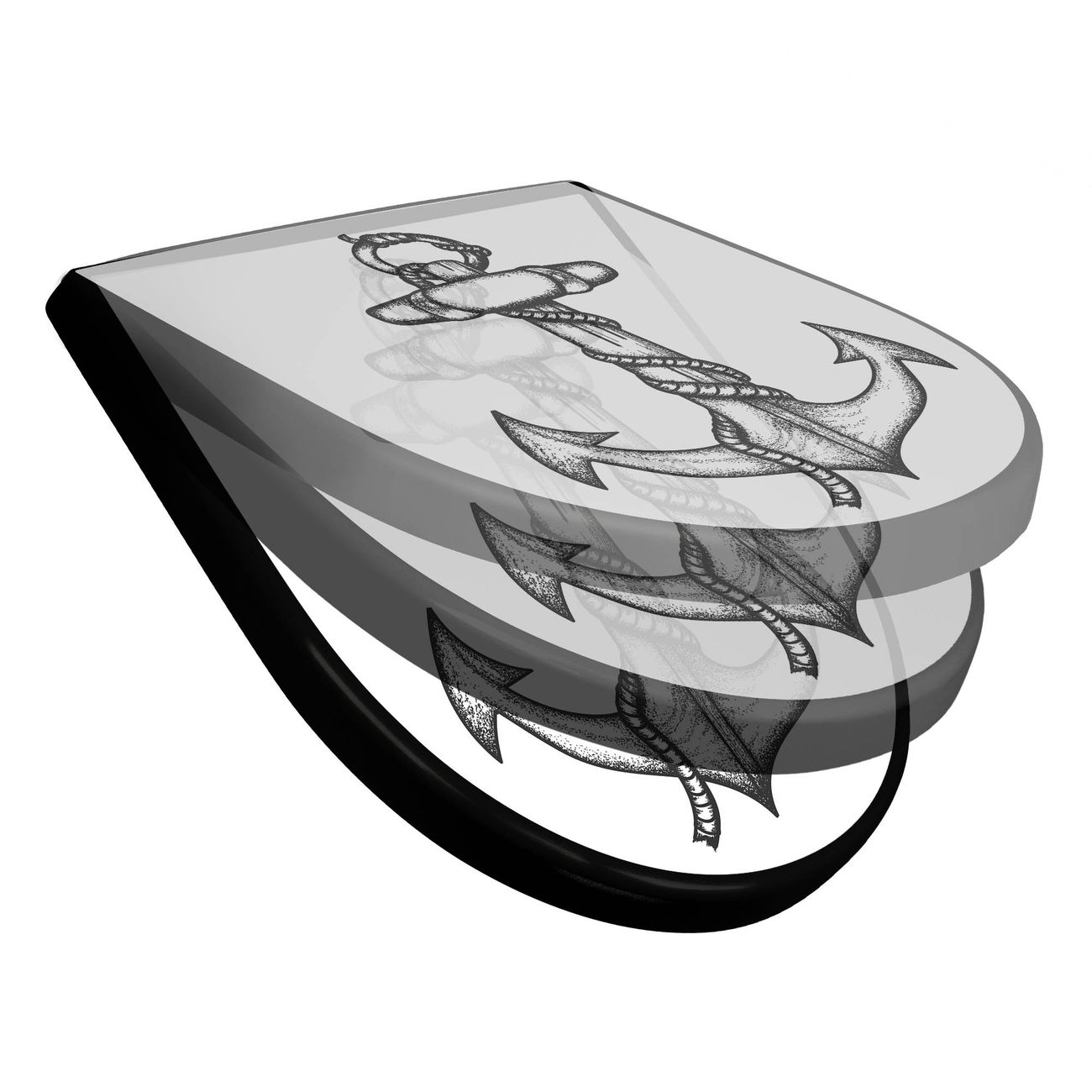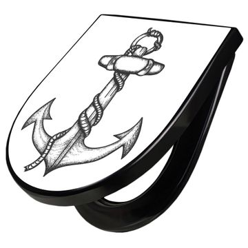 WC Sitz D-Form Schwarz mit Absenkautomatik Motiv Anker 2