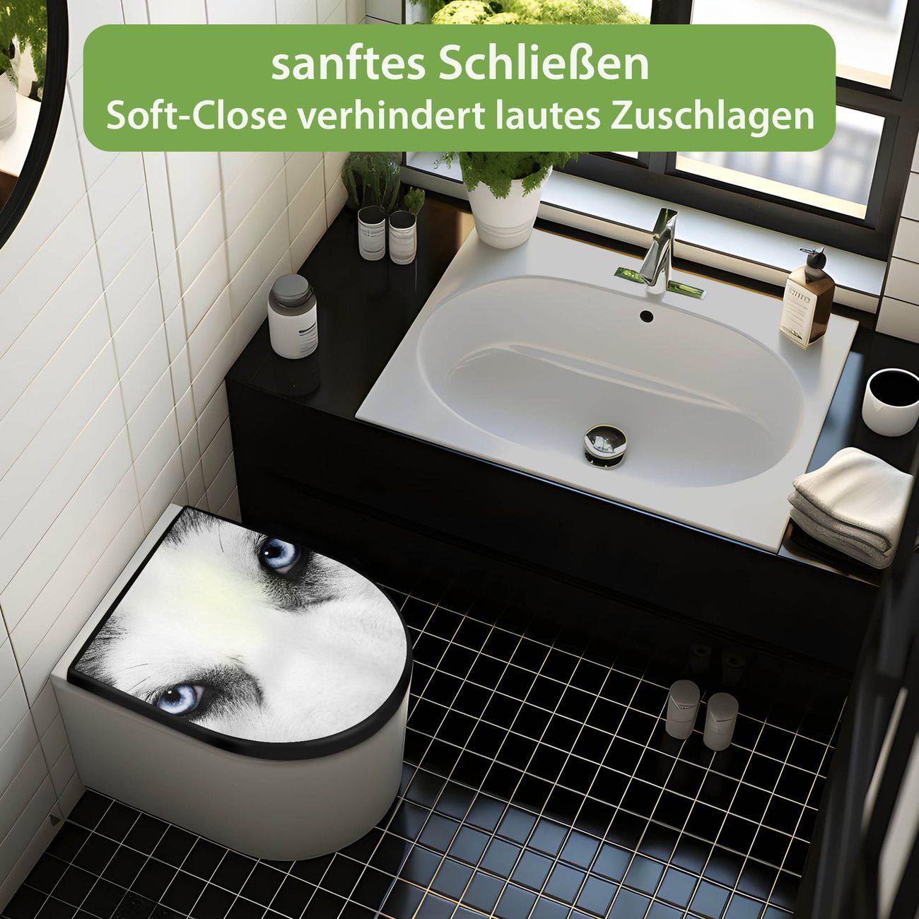 WC Sitz D-Form Schwarz mit Absenkautomatik Motiv Anouk