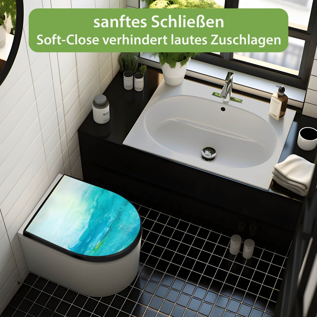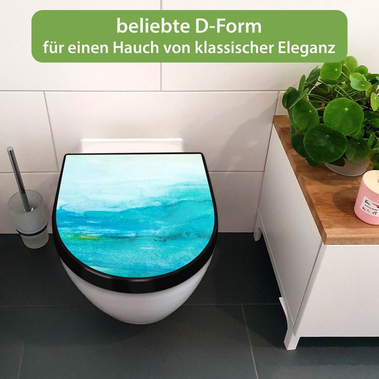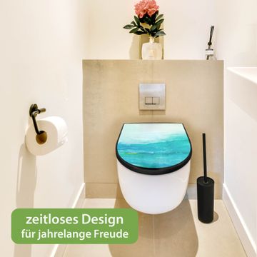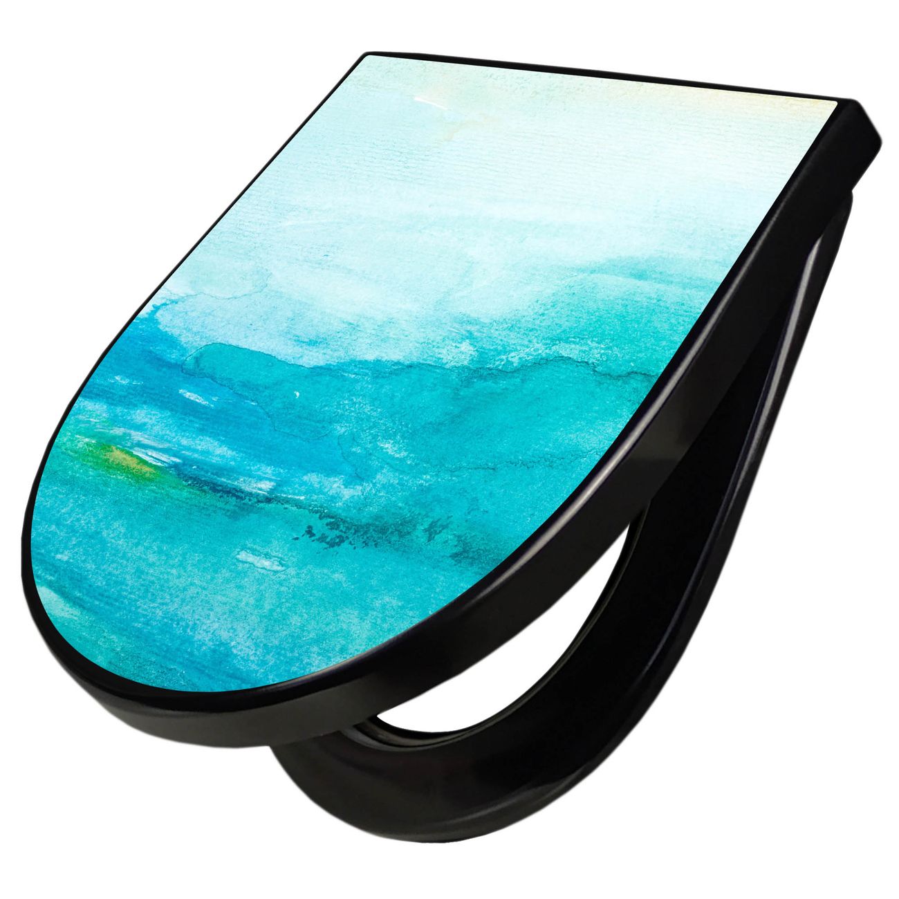 WC Sitz D-Form Schwarz mit Absenkautomatik Motiv Aquarell Blau