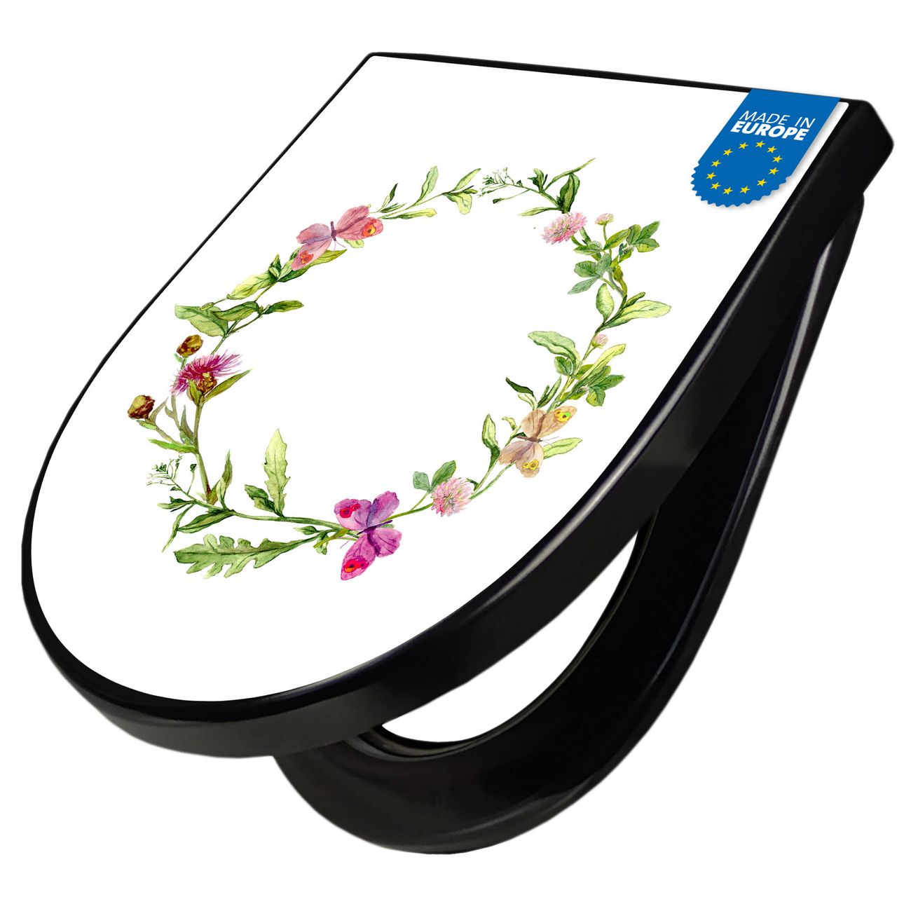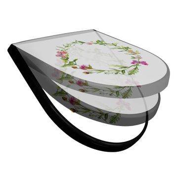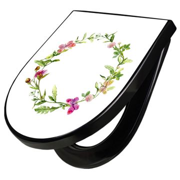 WC Sitz D-Form Schwarz mit Absenkautomatik Motiv Aquarell Blumenring