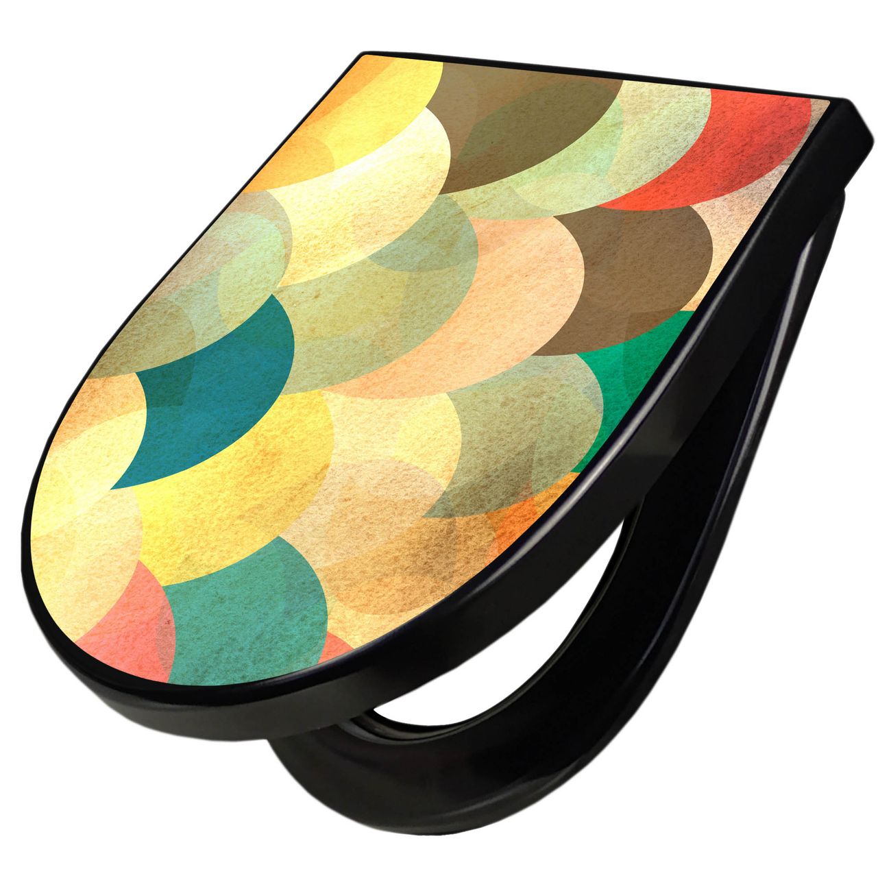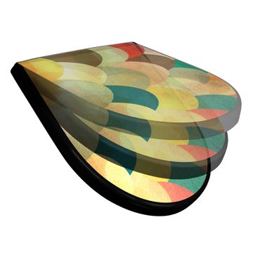 WC Sitz D-Form Schwarz mit Absenkautomatik Motiv Aquarell Schuppen