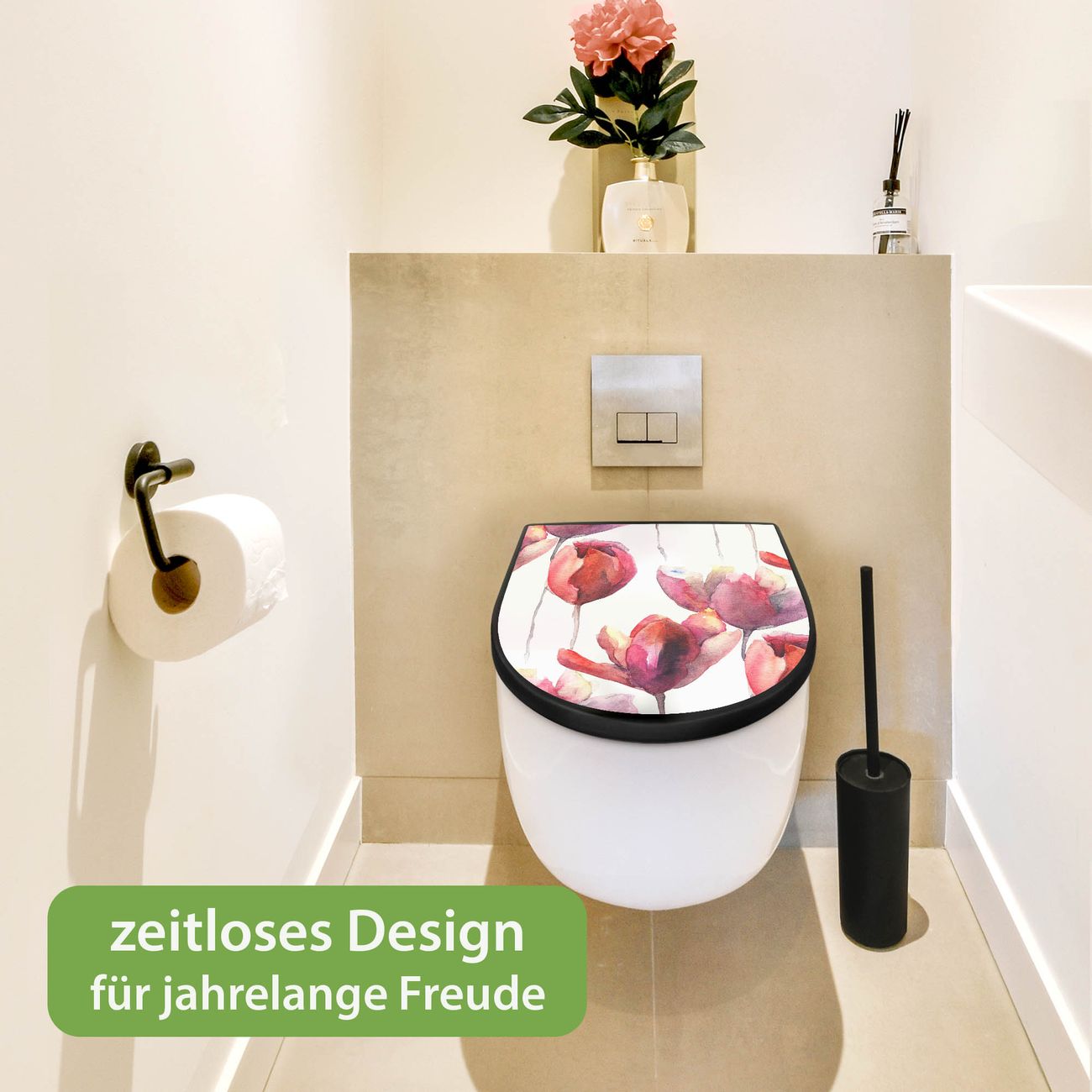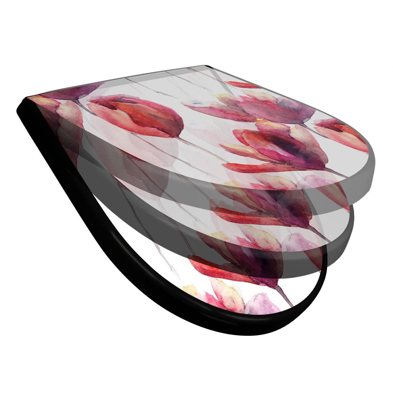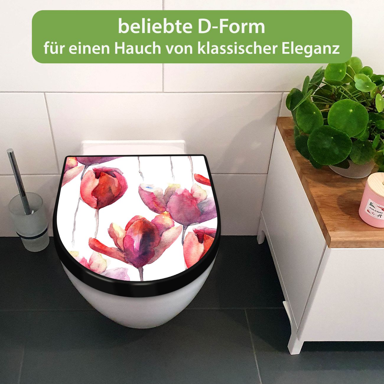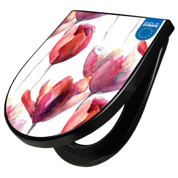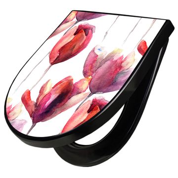 WC Sitz D-Form Schwarz mit Absenkautomatik Motiv Aquarell Tulpen