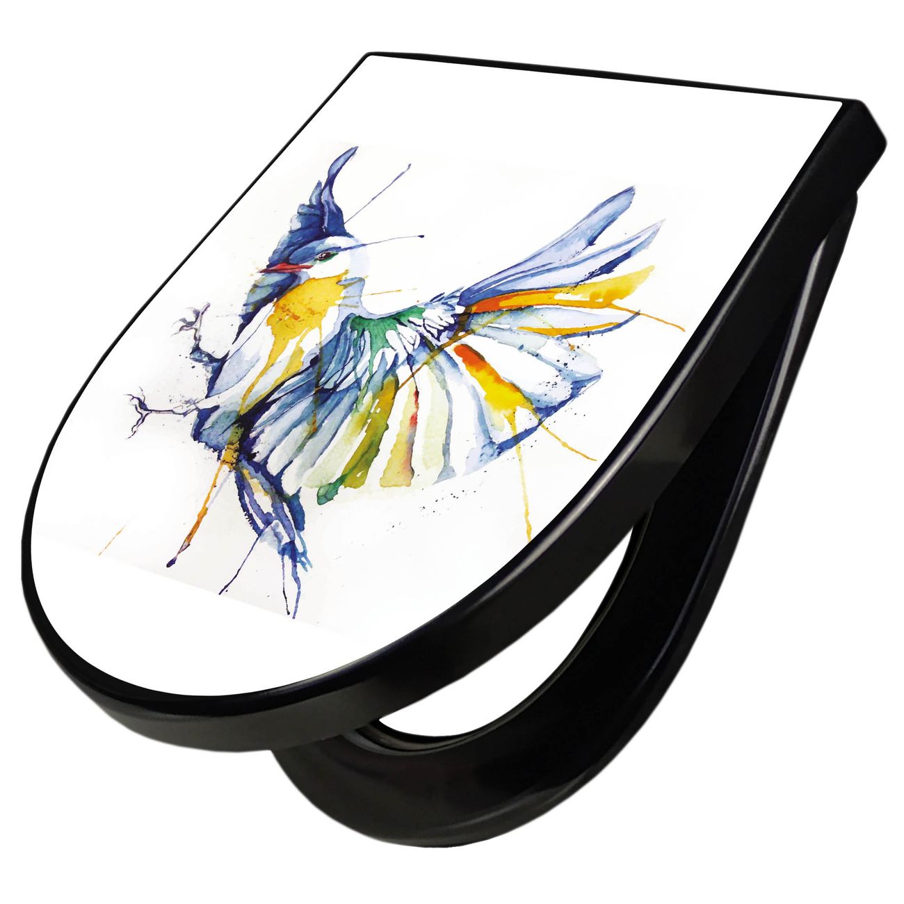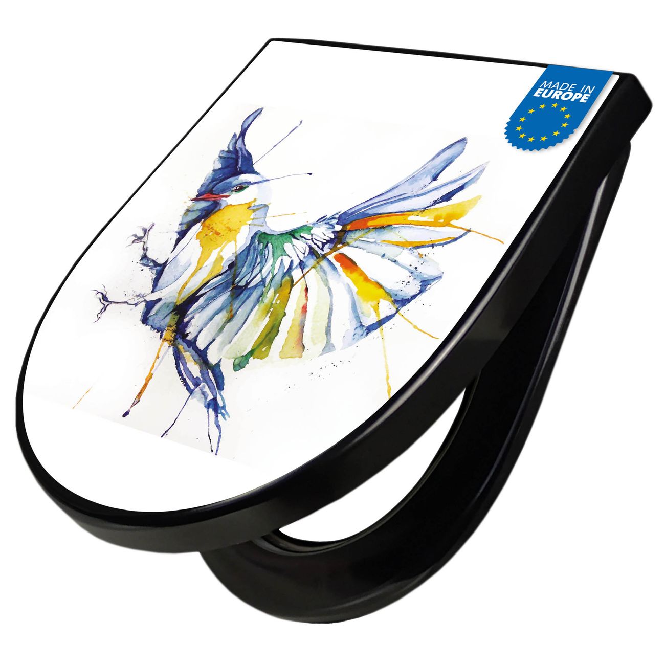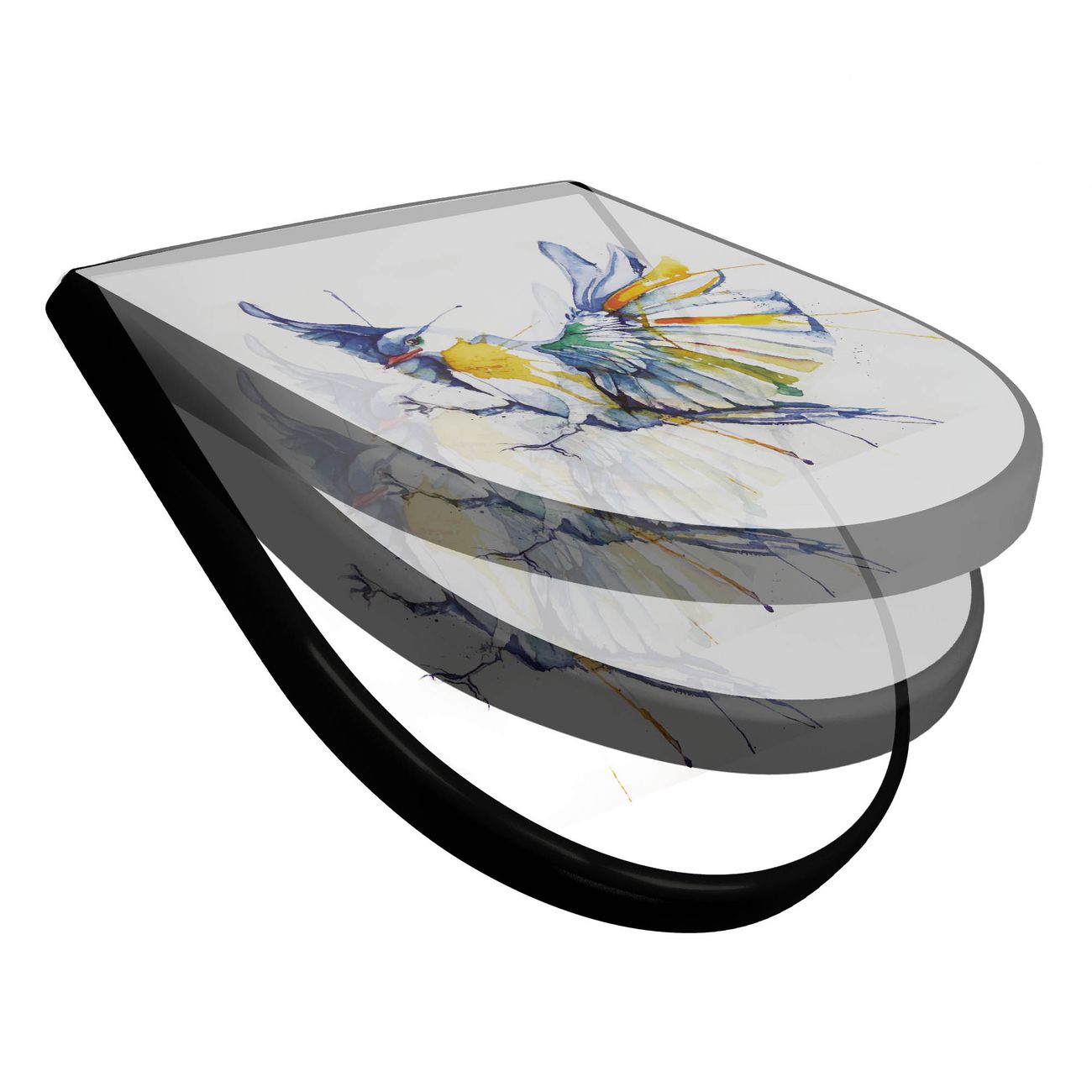 WC Sitz D-Form Schwarz mit Absenkautomatik Motiv Aquarell Vogel