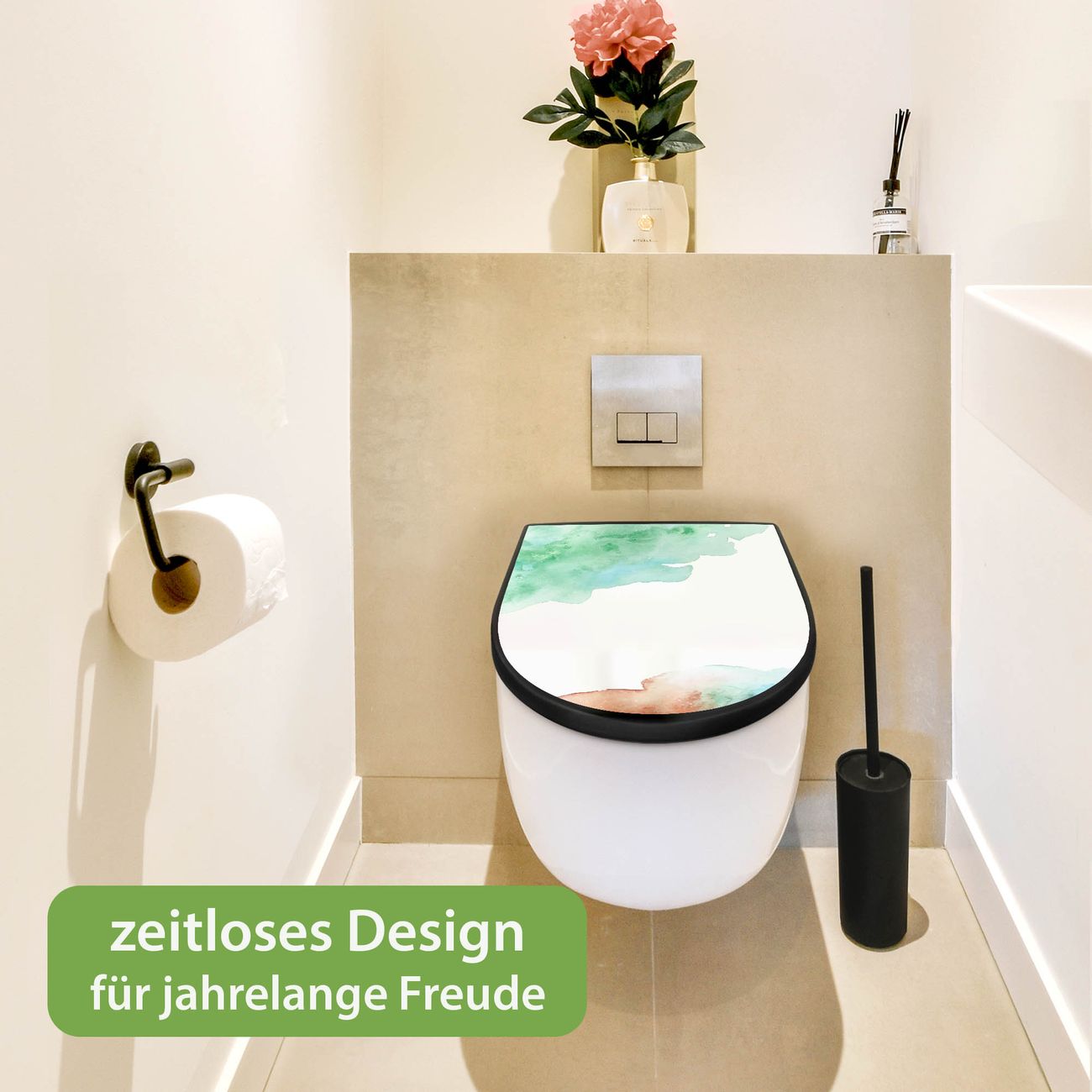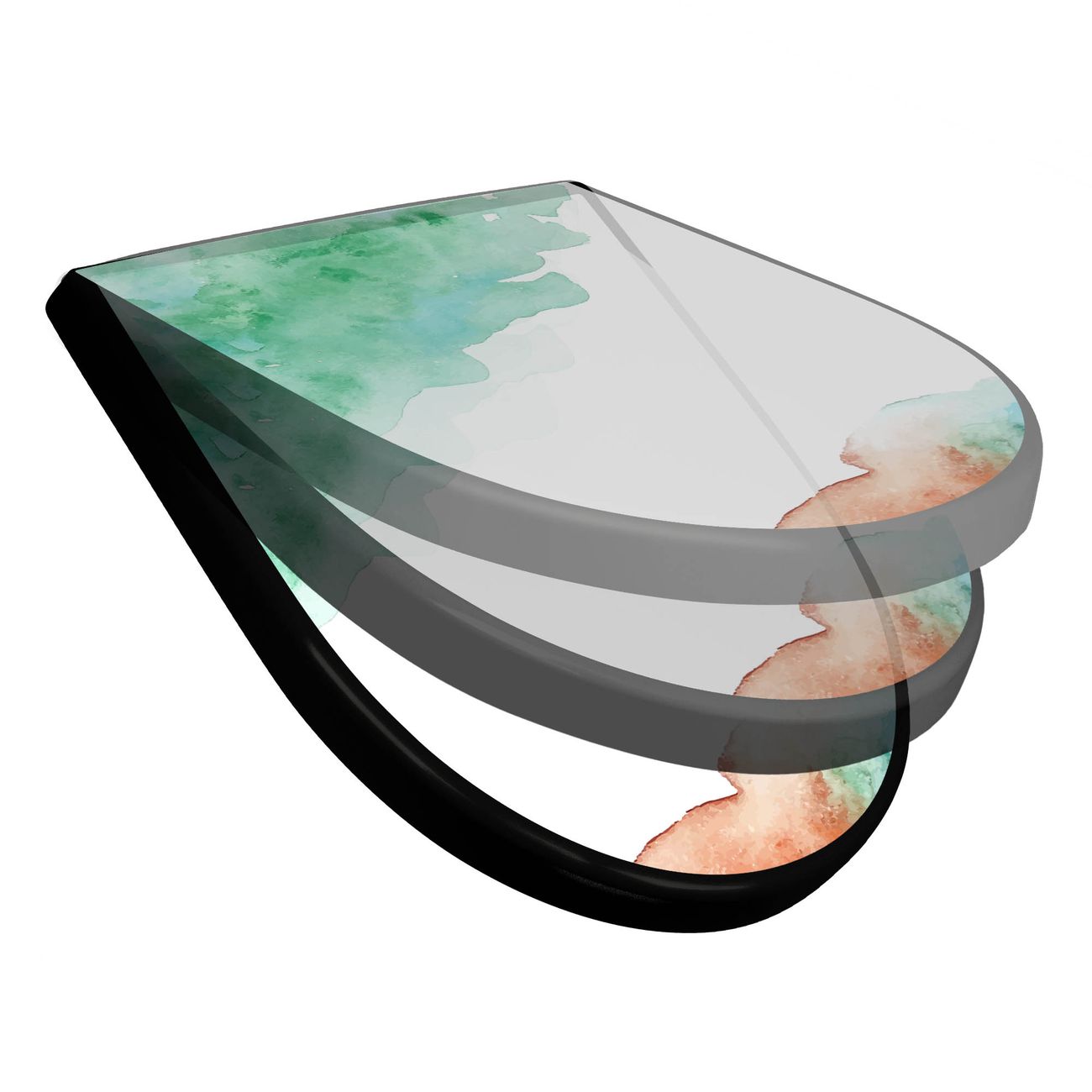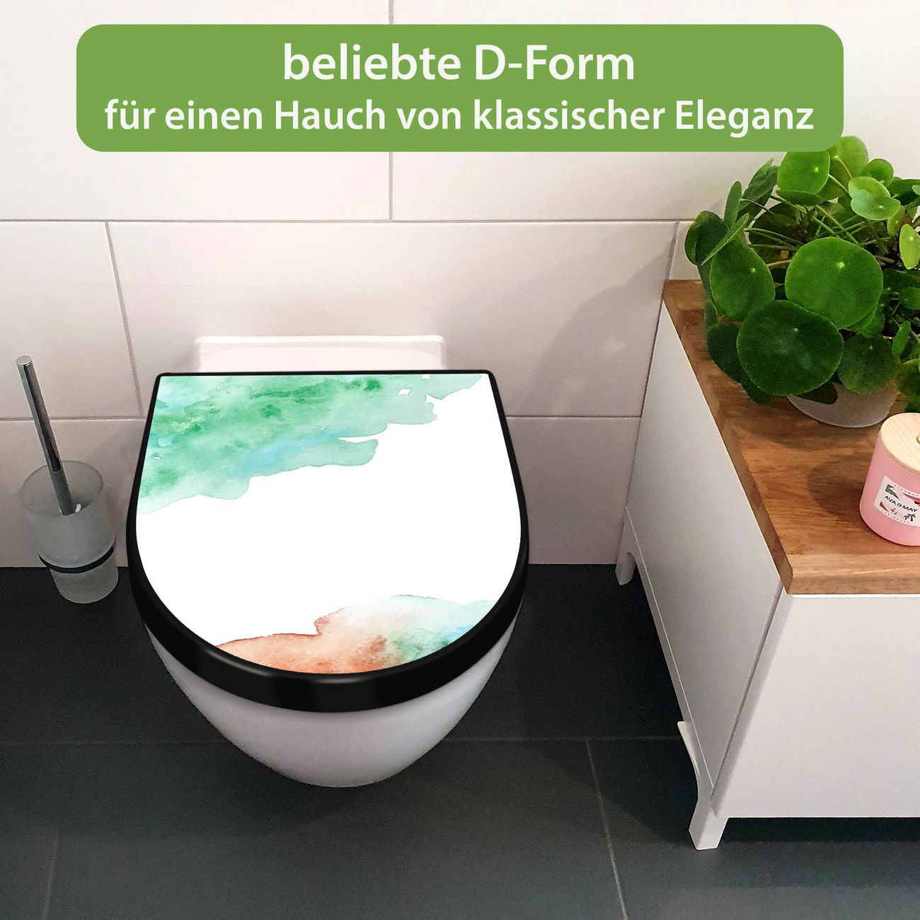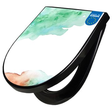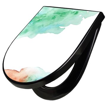 WC Sitz D-Form Schwarz mit Absenkautomatik Motiv Aquarellzauber