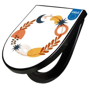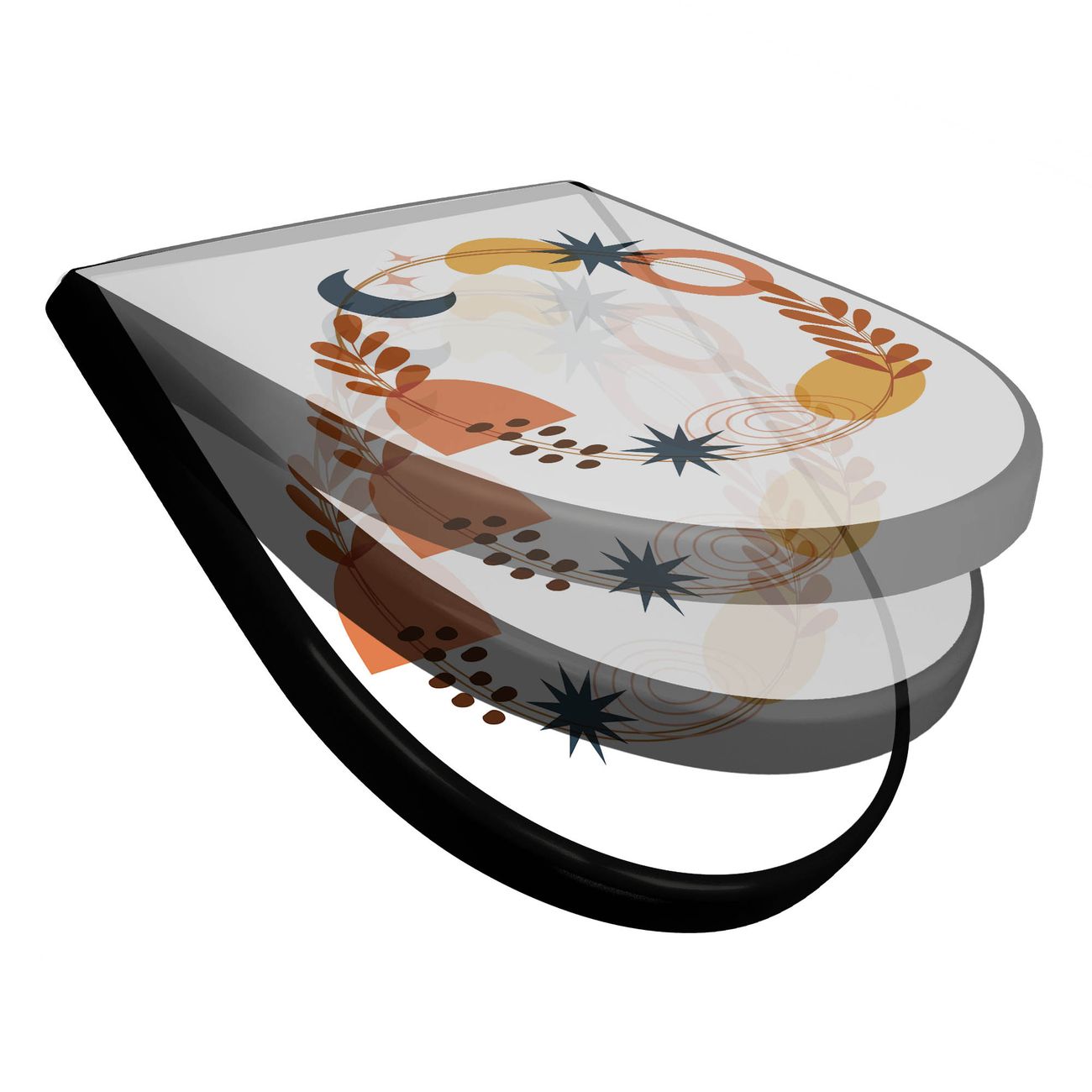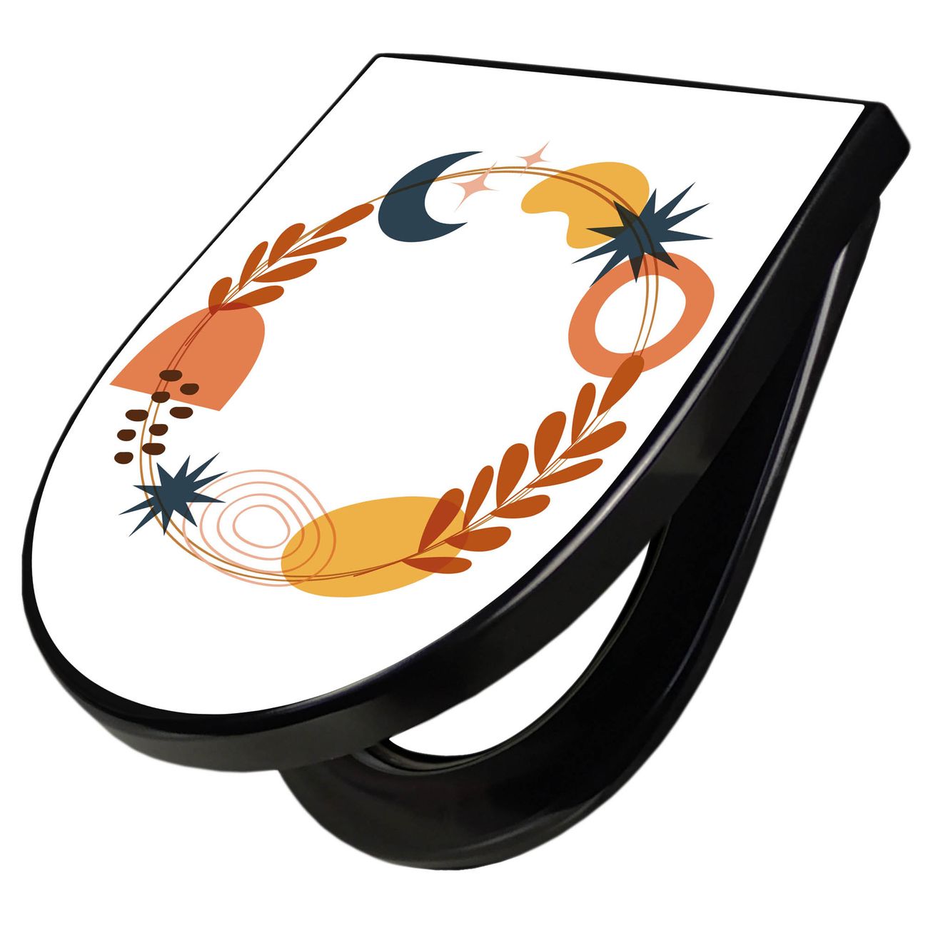 WC Sitz D-Form Schwarz mit Absenkautomatik Motiv Astro-Herbstkranz