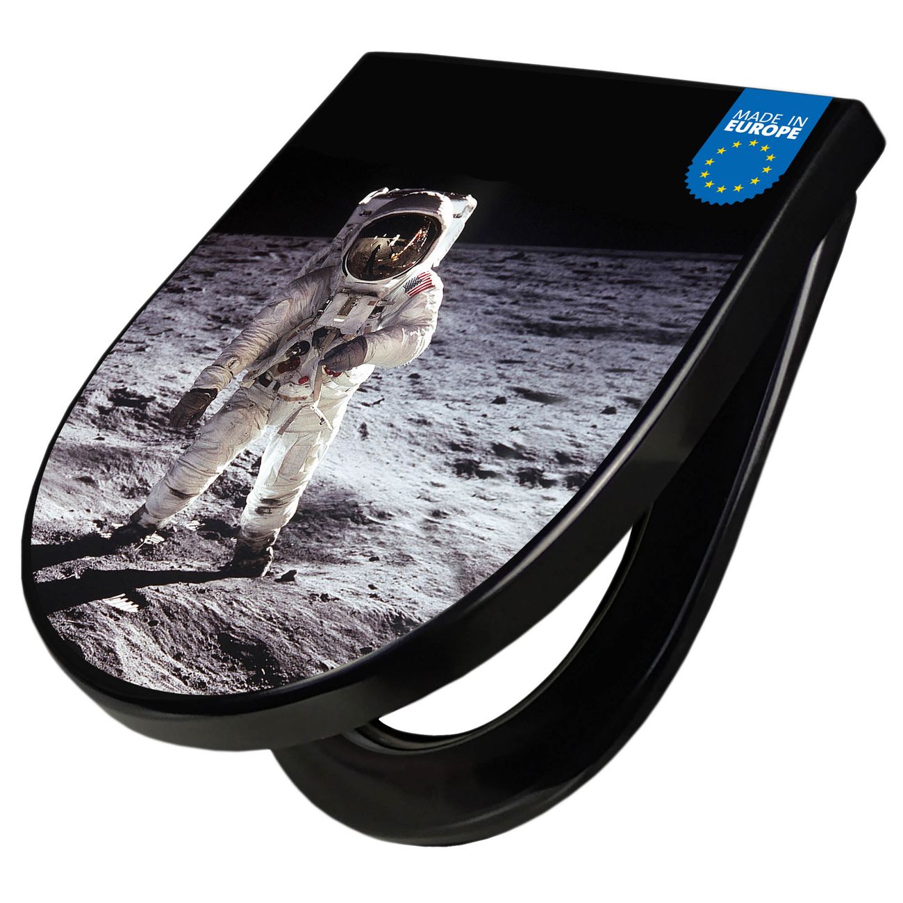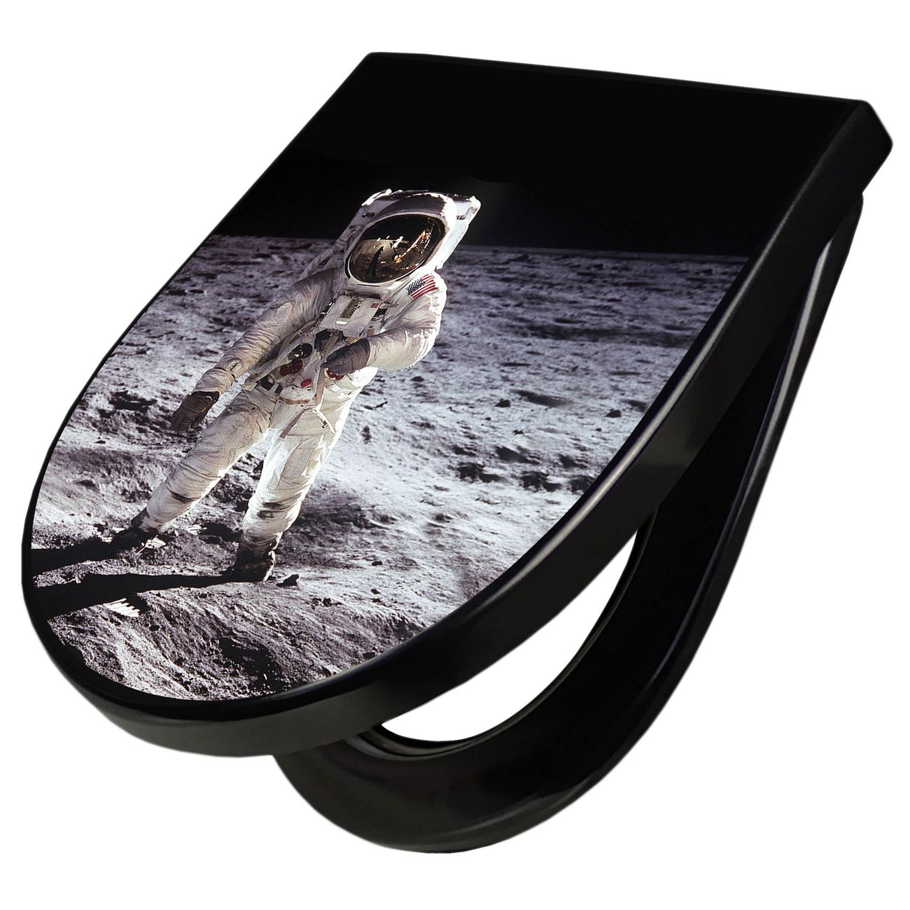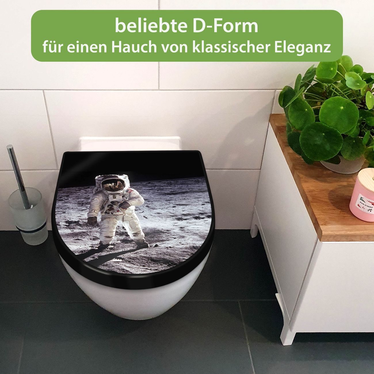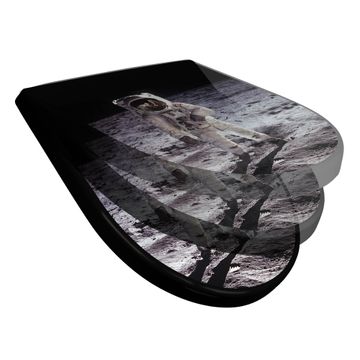 WC Sitz D-Form Schwarz mit Absenkautomatik Motiv Astronaut