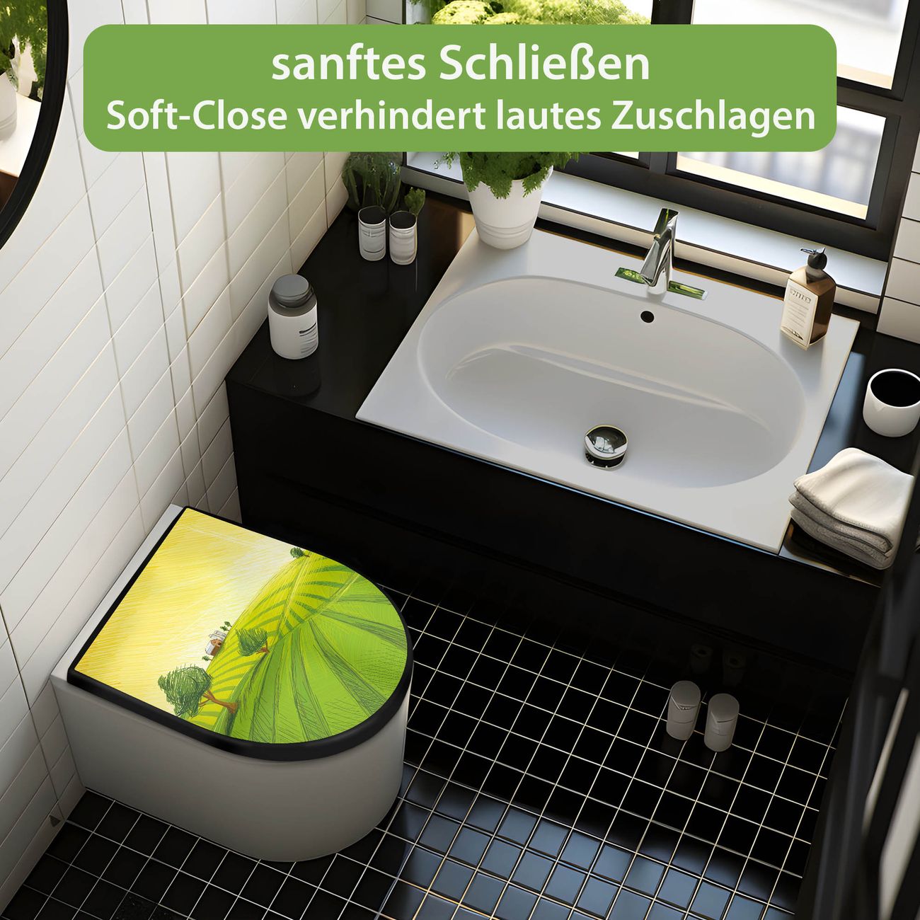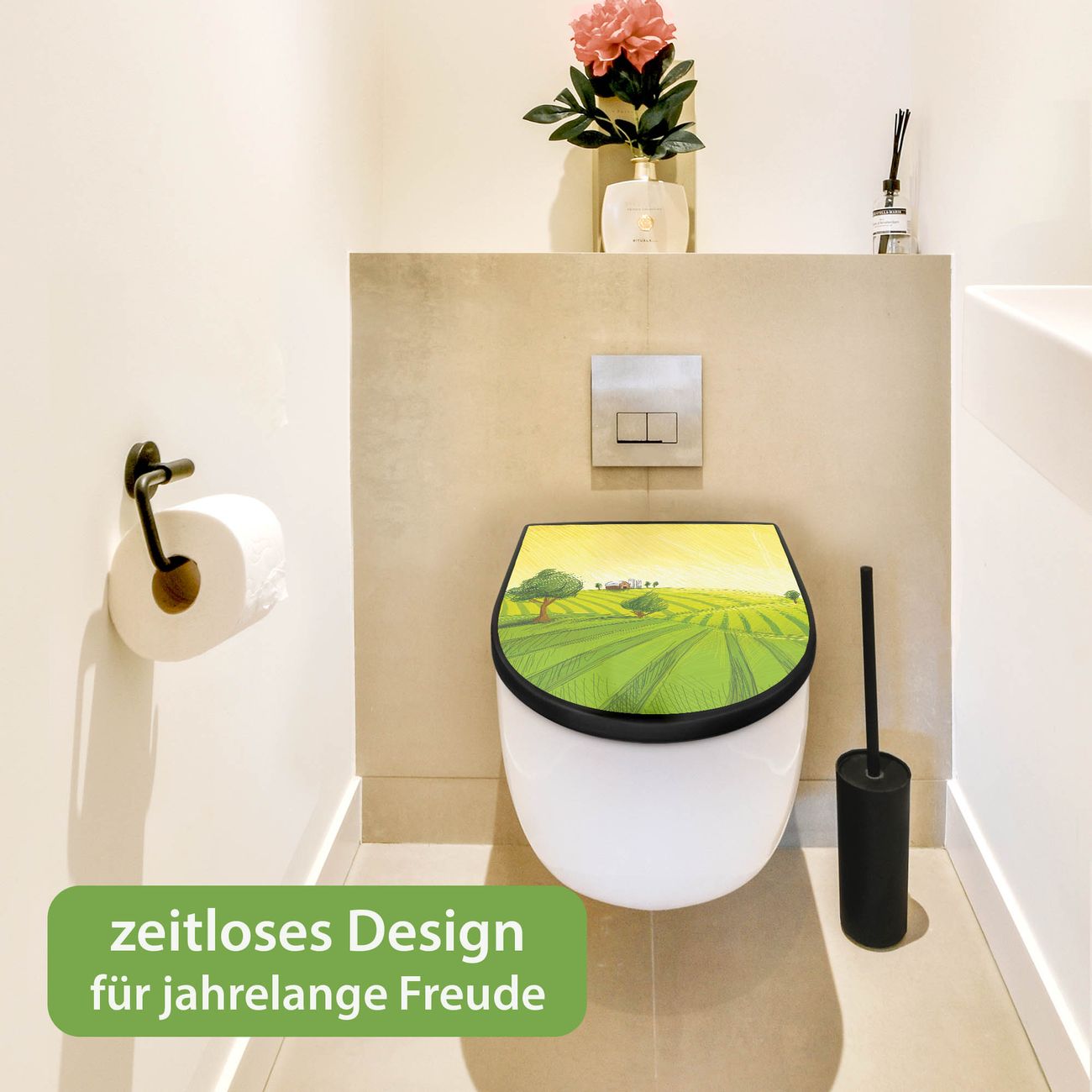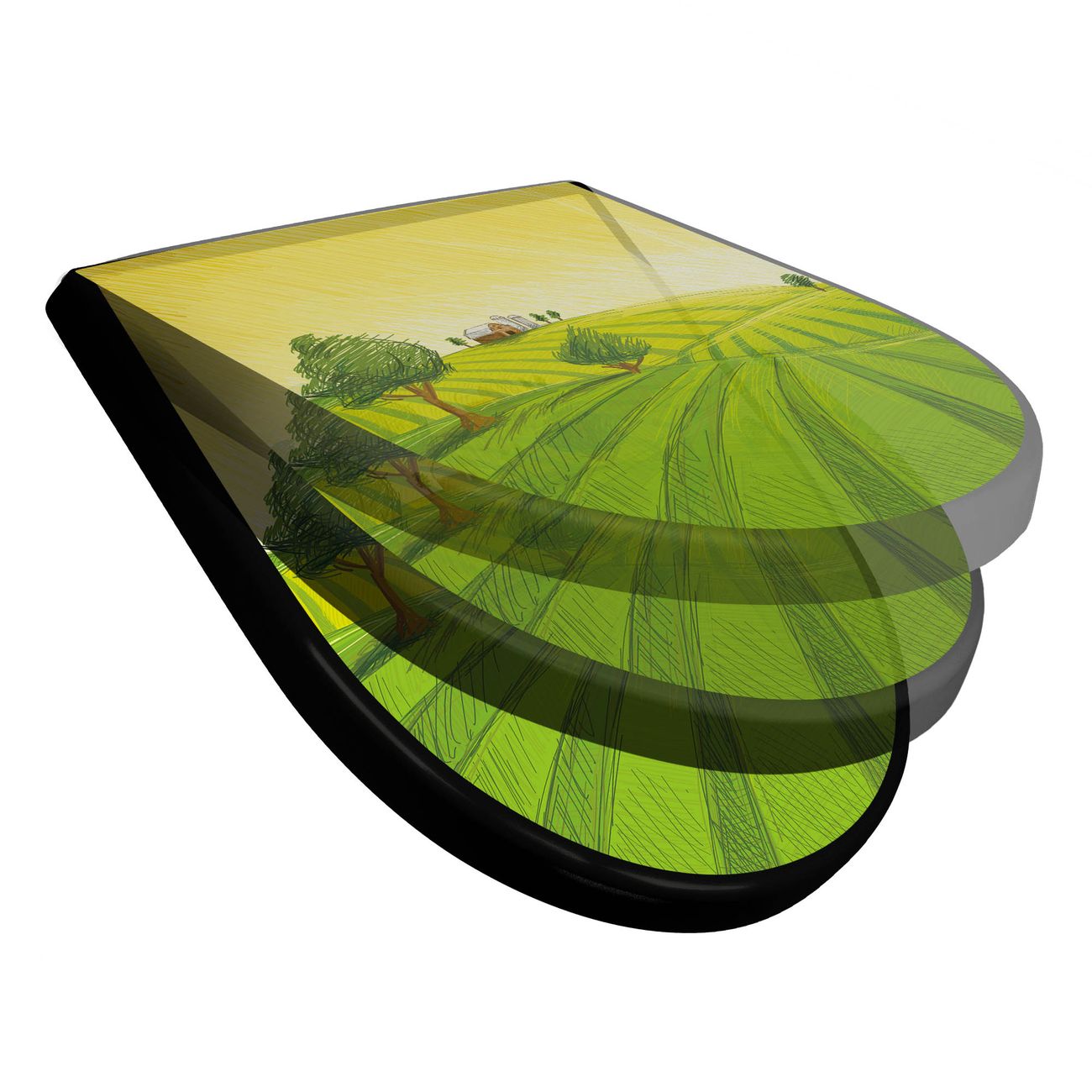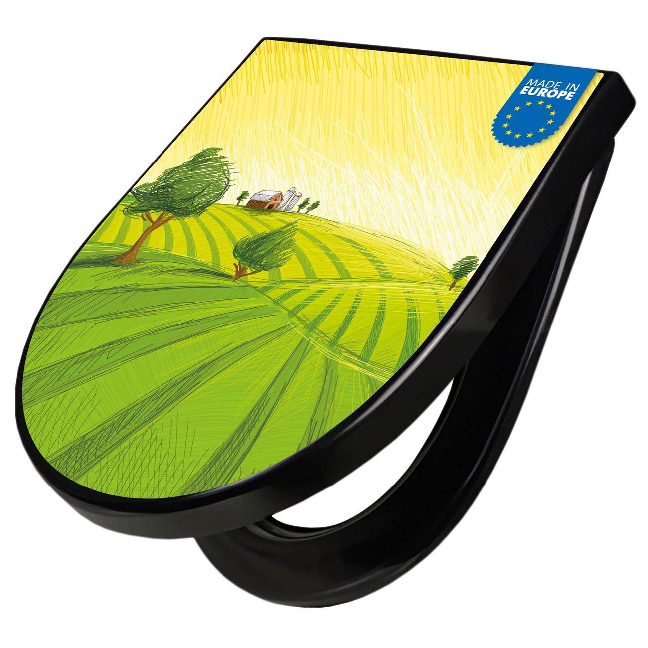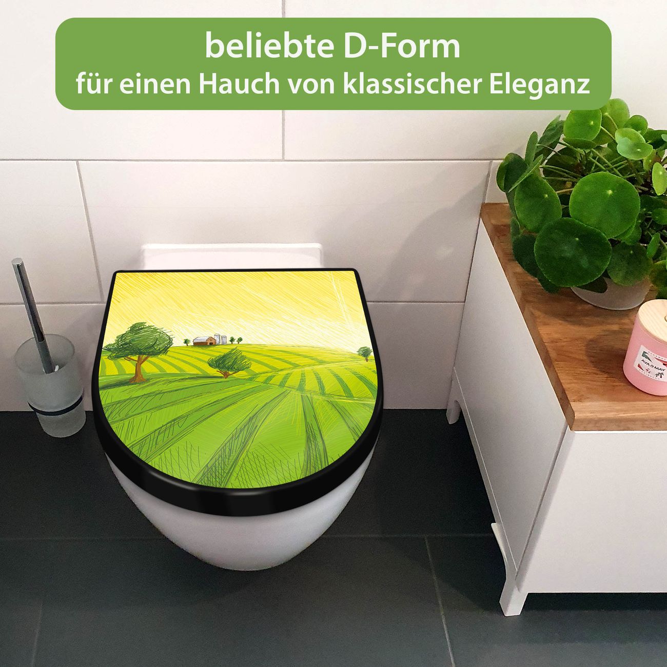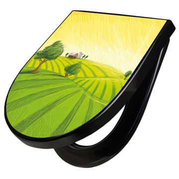 WC Sitz D-Form Schwarz mit Absenkautomatik Motiv Auf dem Land