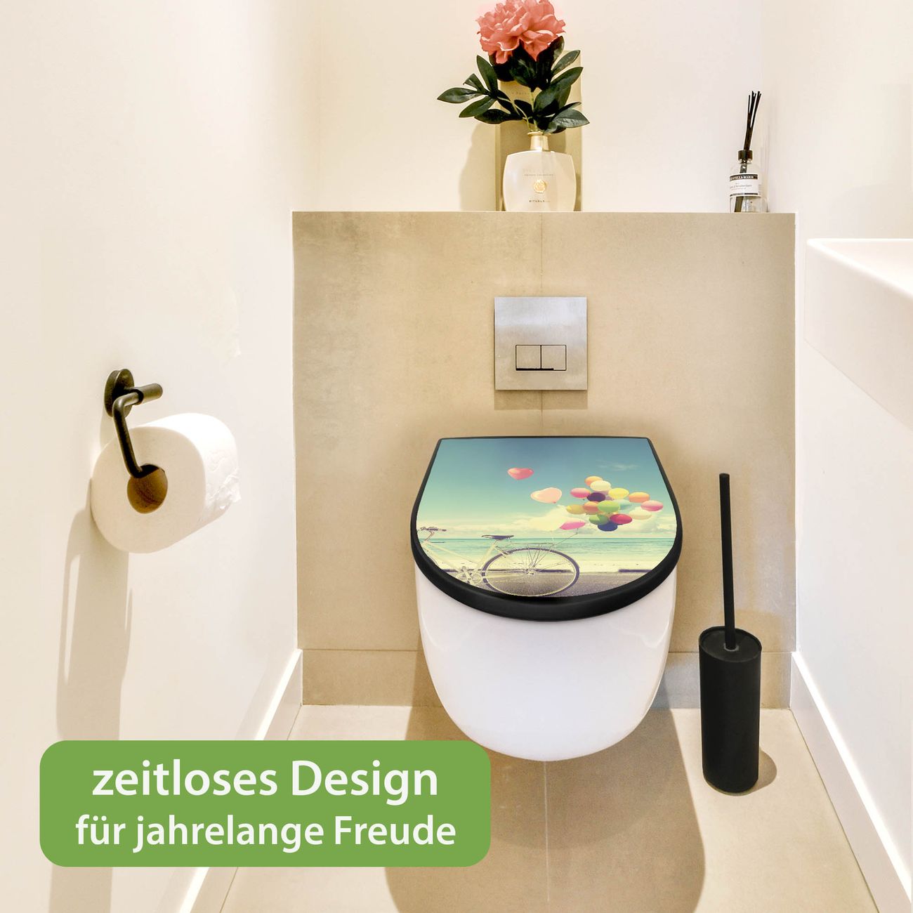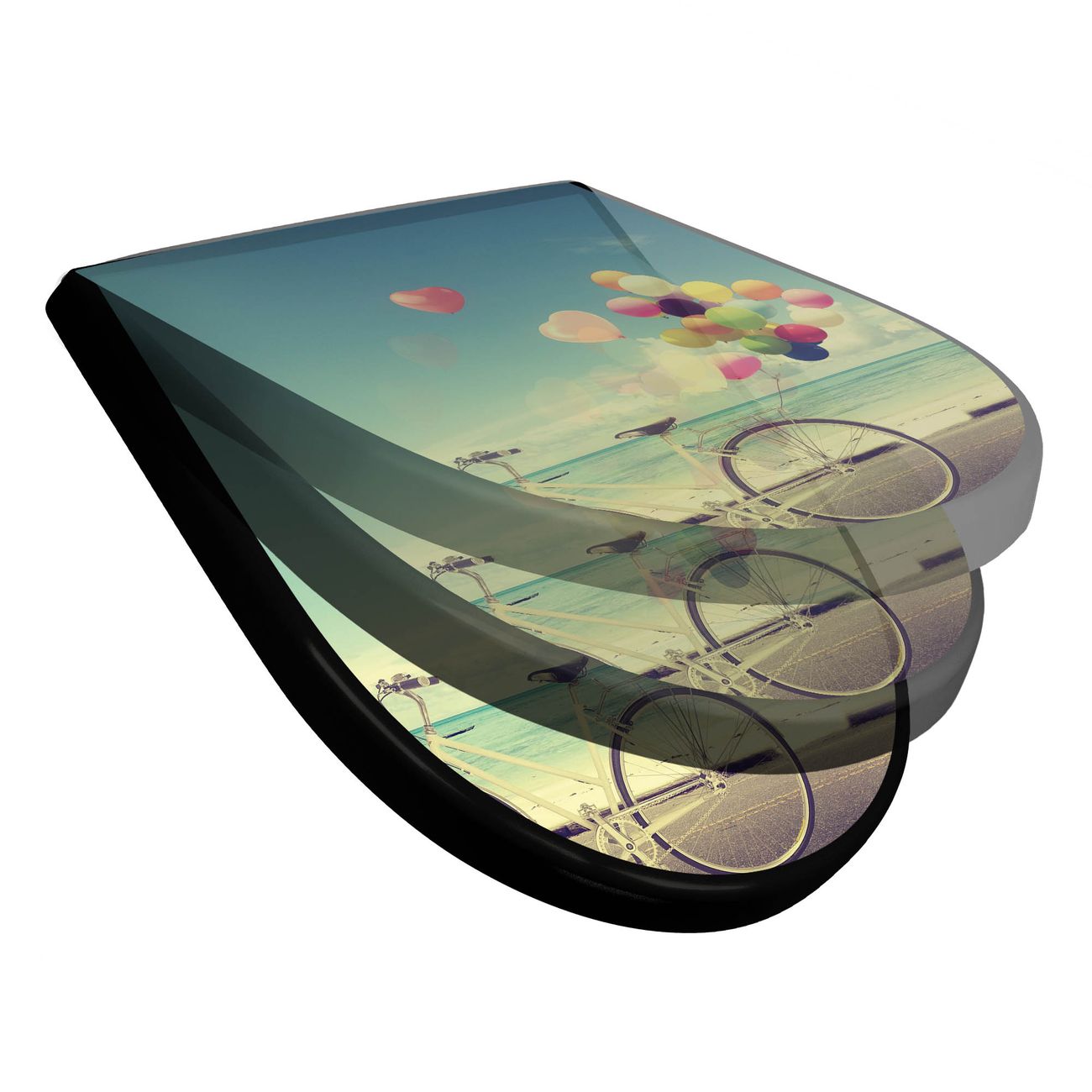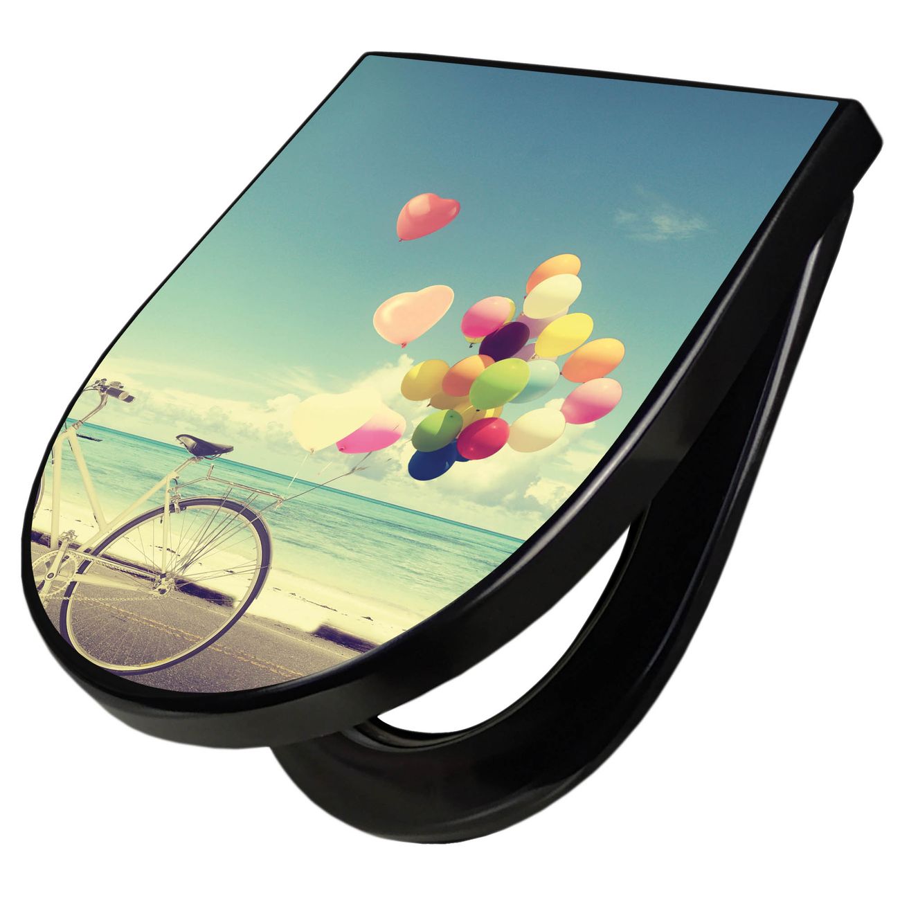WC Sitz D-Form Schwarz mit Absenkautomatik Motiv Auf Und Davon