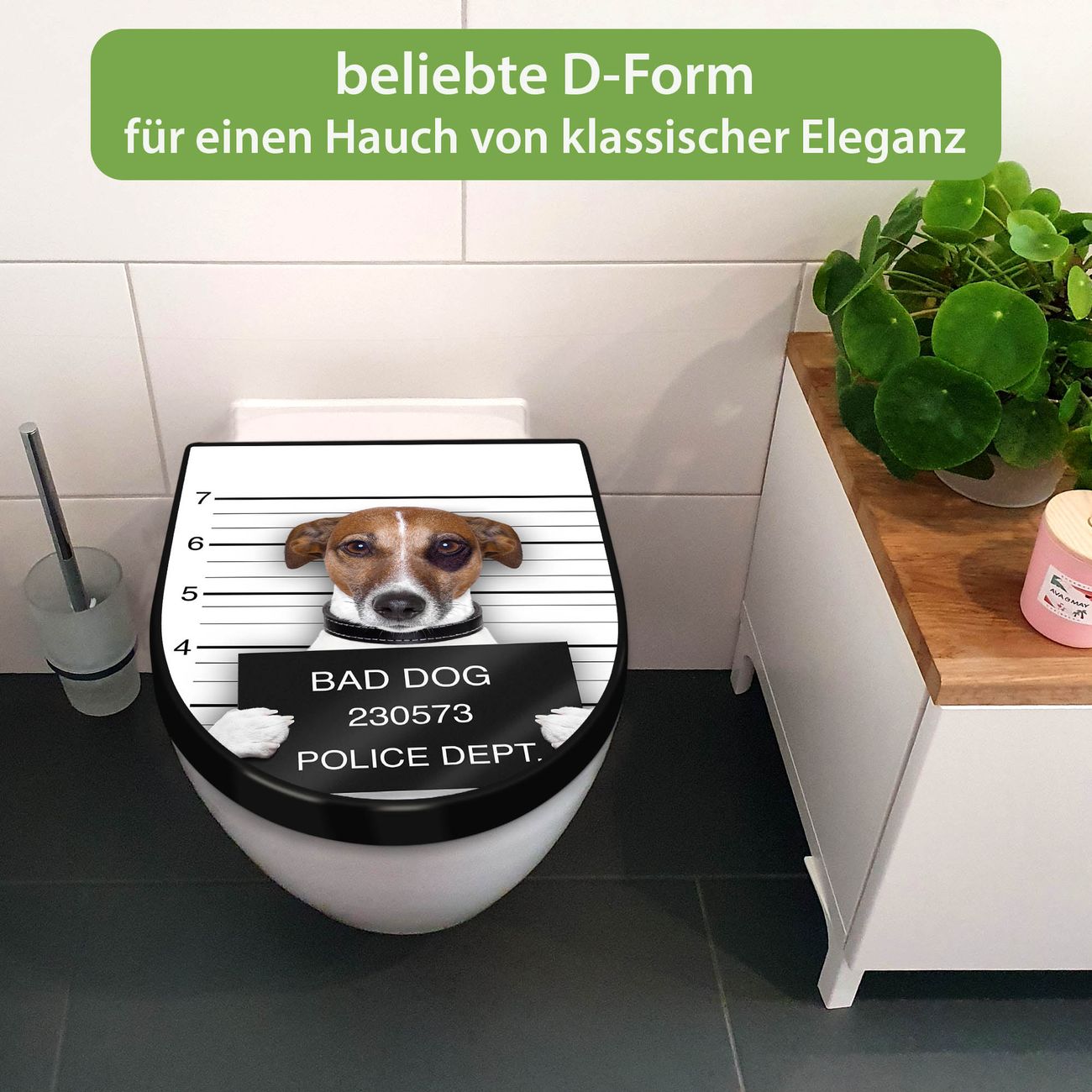 WC Sitz D-Form Schwarz mit Absenkautomatik Motiv Bad Dog Jack Russel