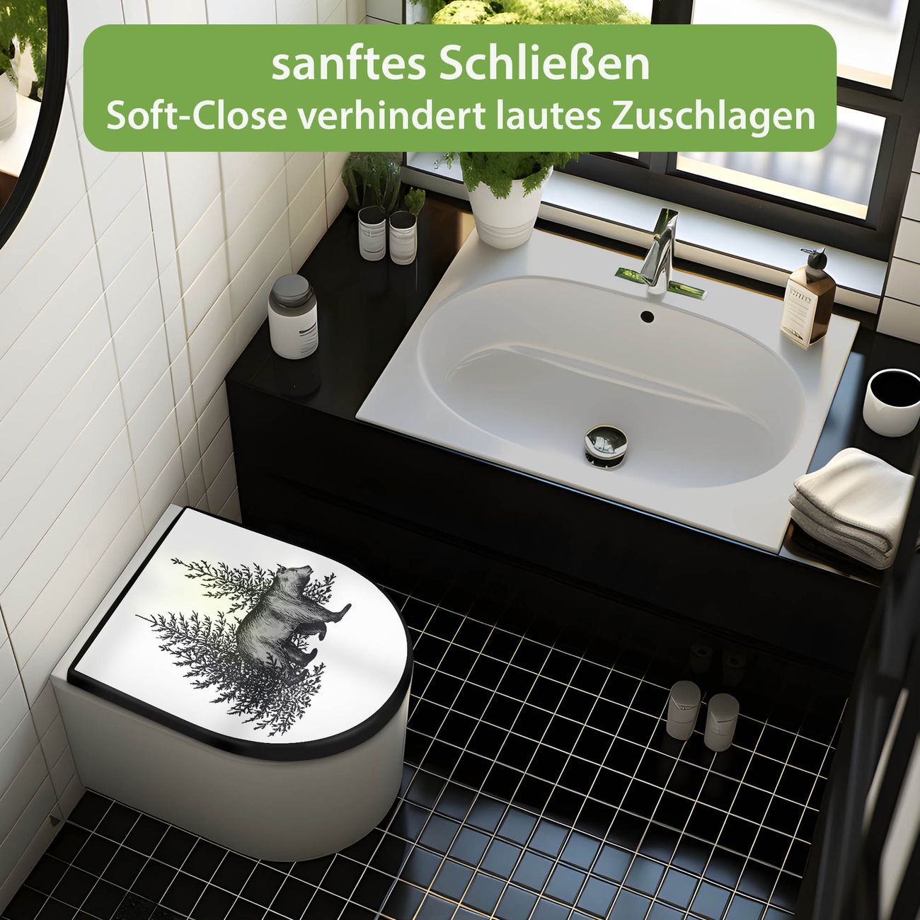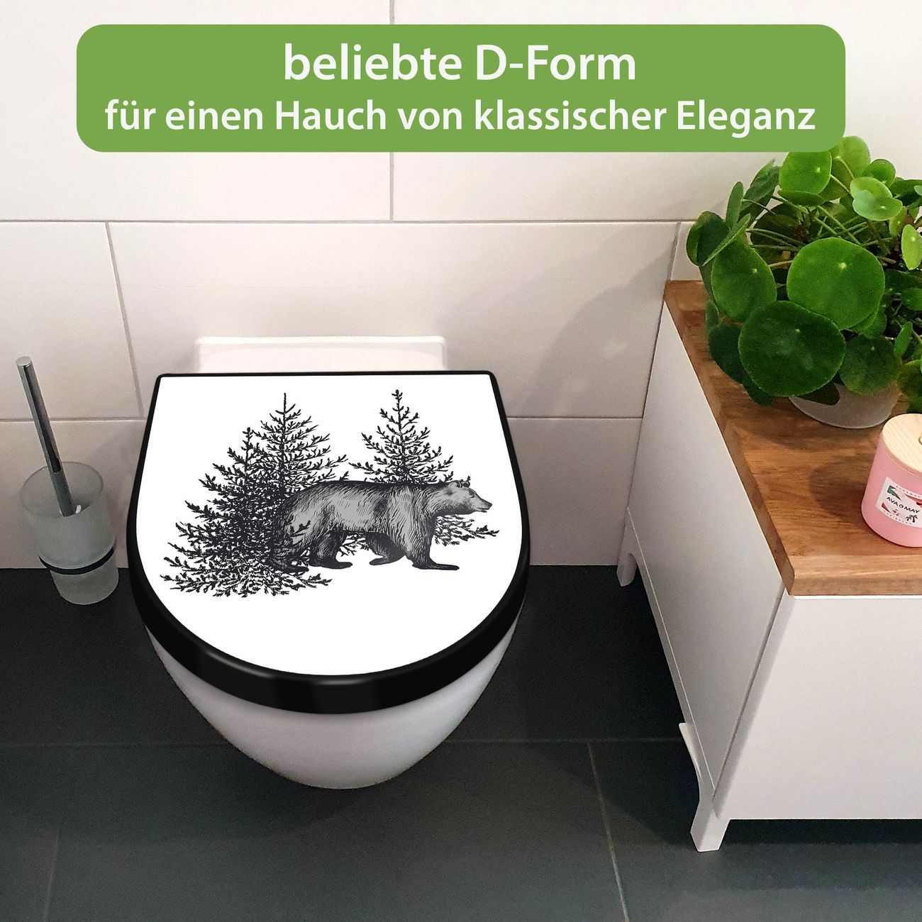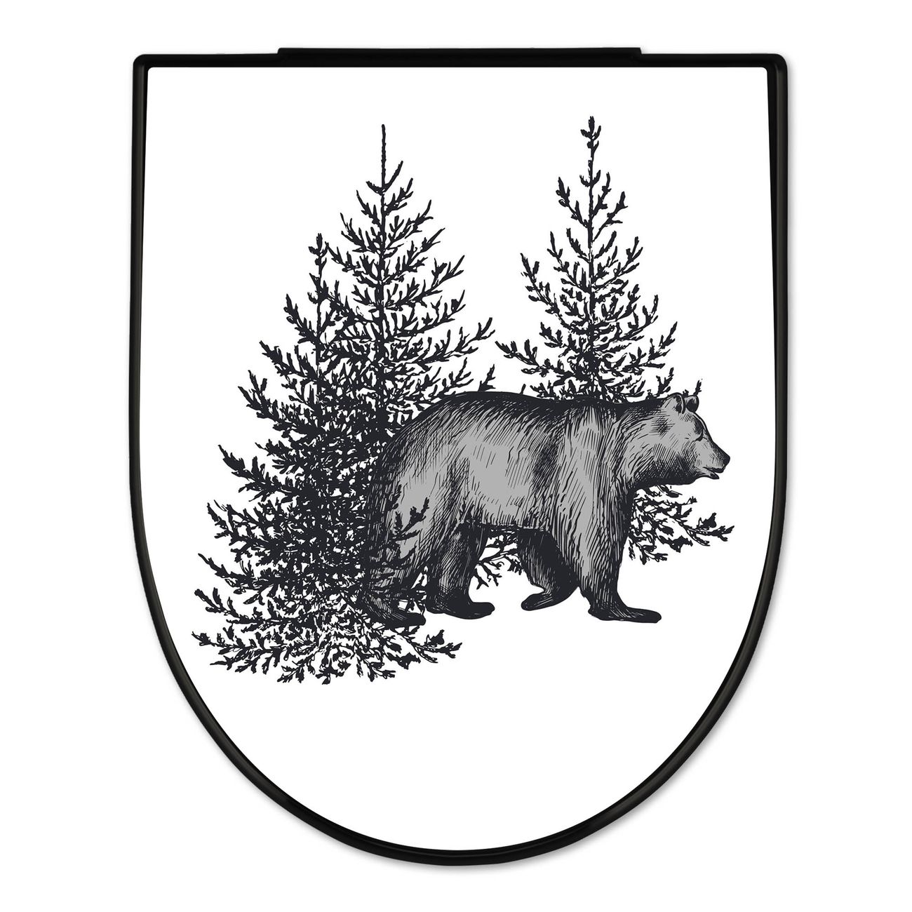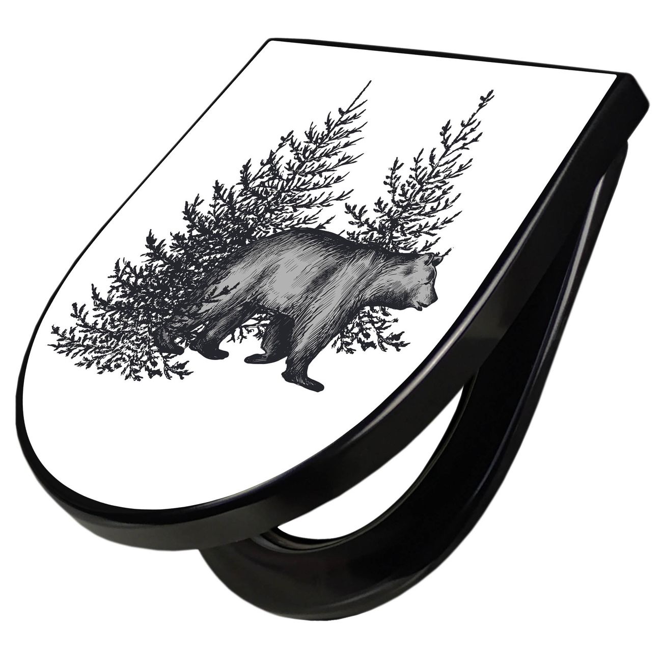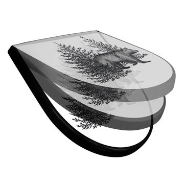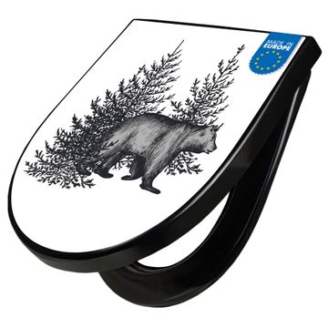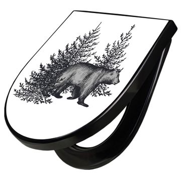 WC Sitz D-Form Schwarz mit Absenkautomatik Motiv Bär in Schwarz-Weiß