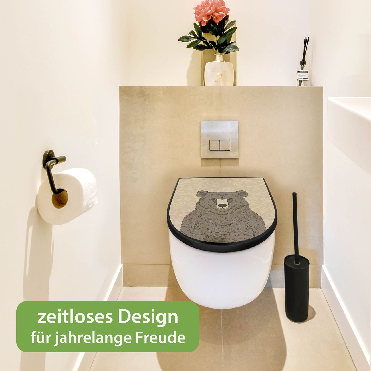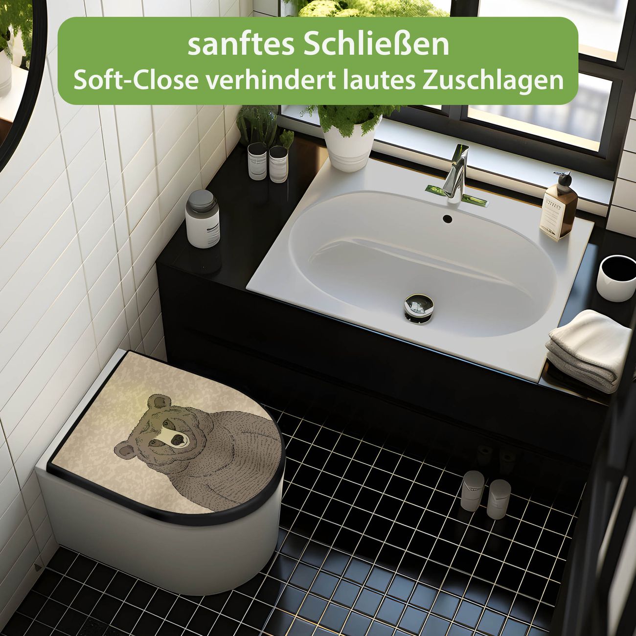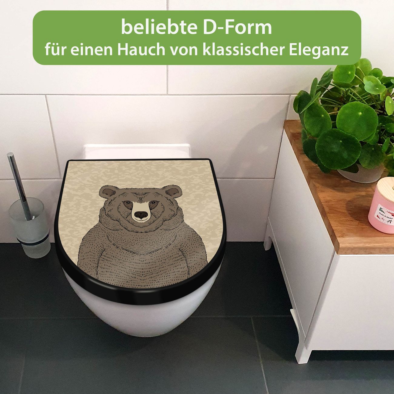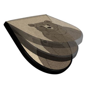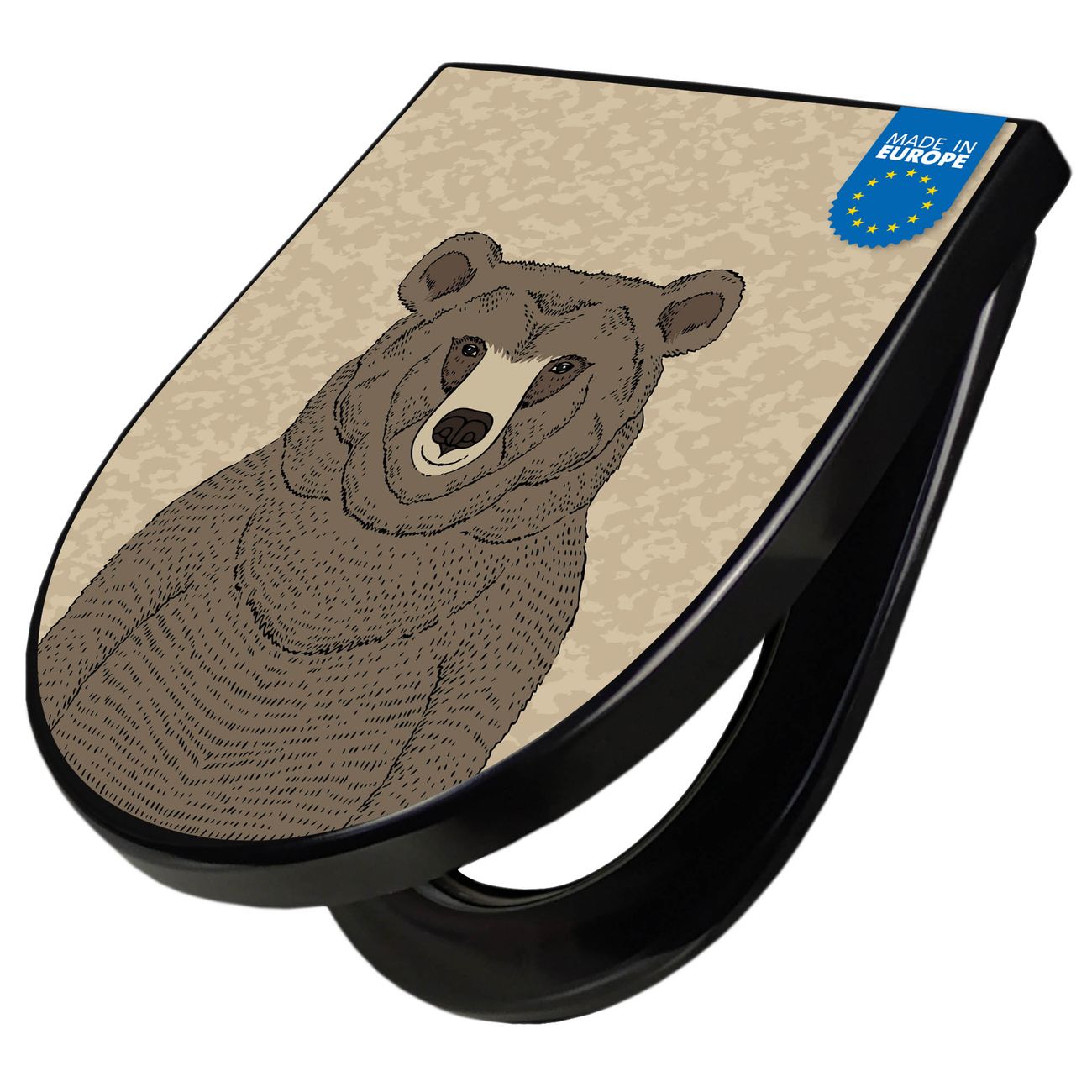 WC Sitz D-Form Schwarz mit Absenkautomatik Motiv Bär Ohne Brille