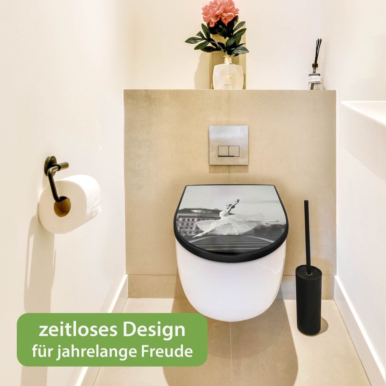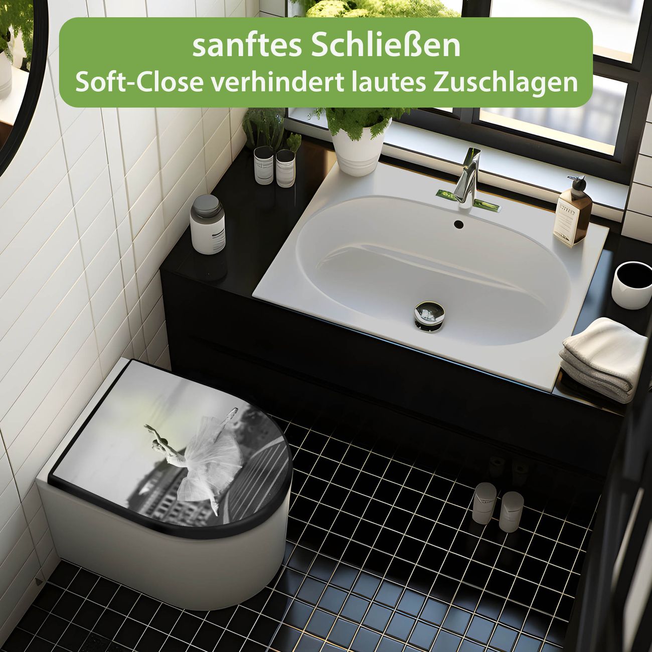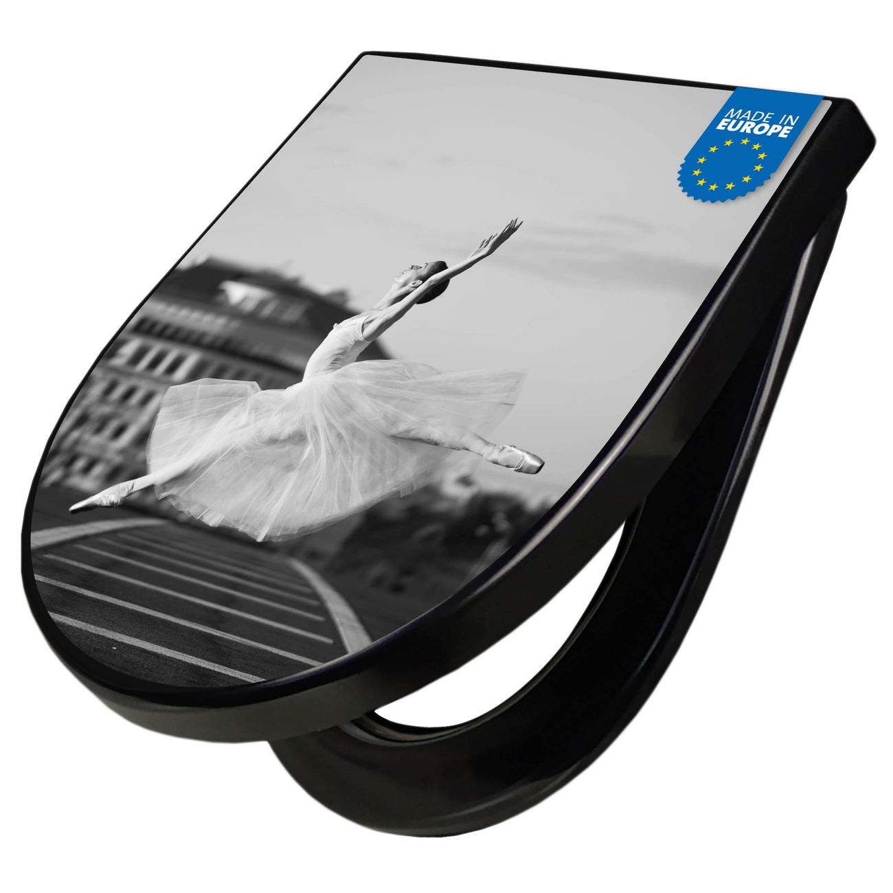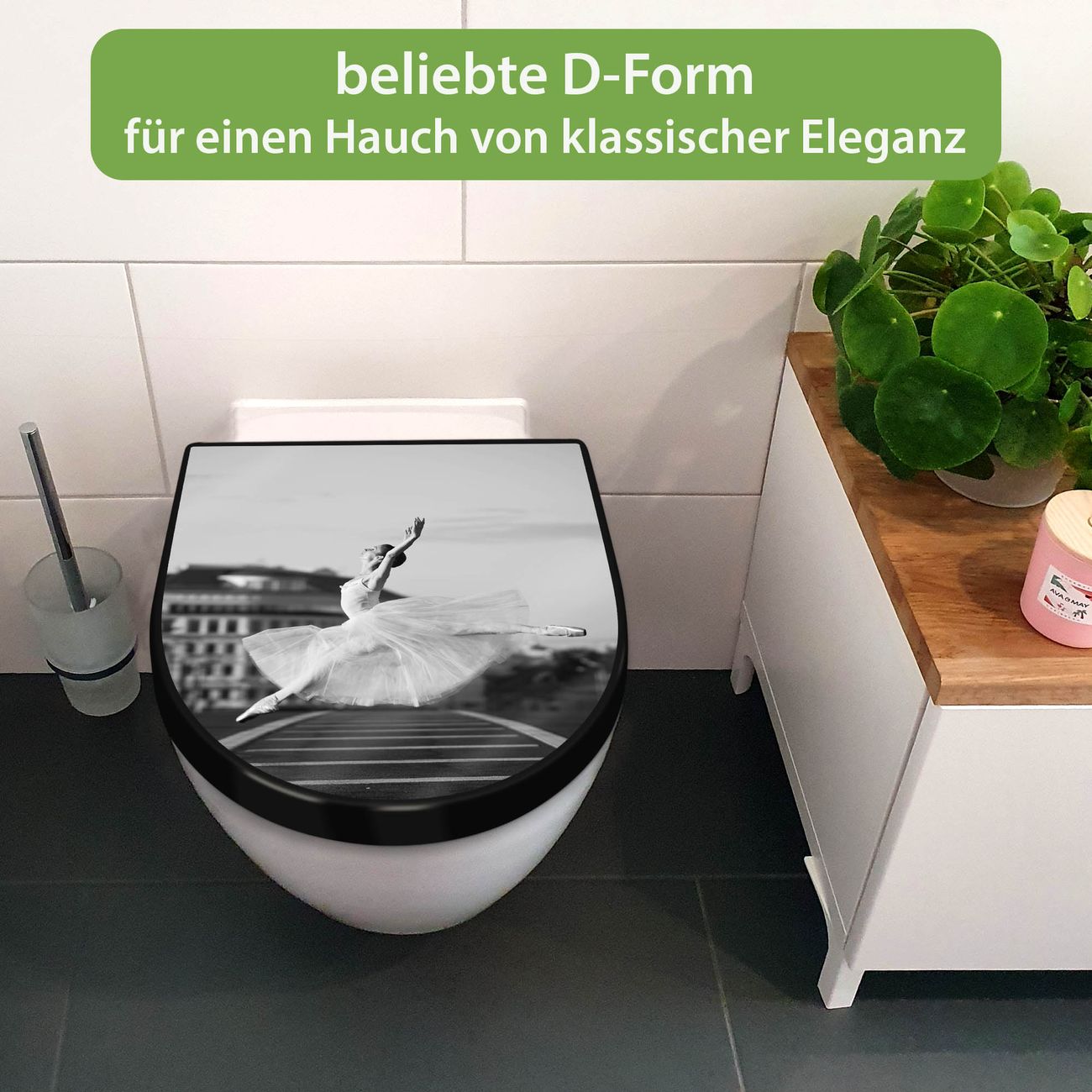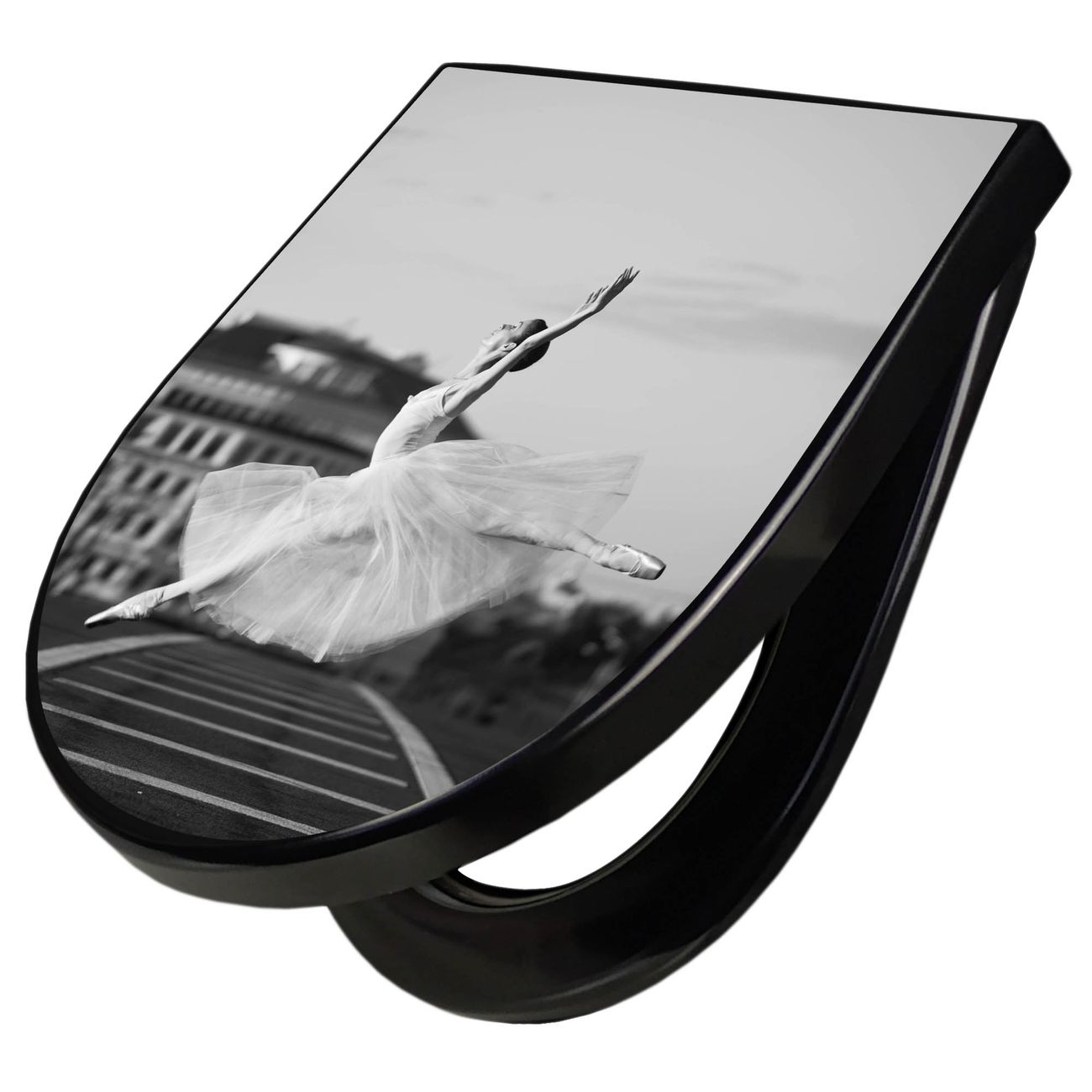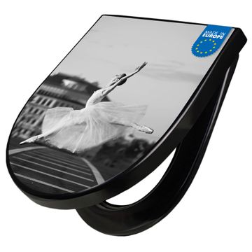 WC Sitz D-Form Schwarz mit Absenkautomatik Motiv Ballerina In Moskau