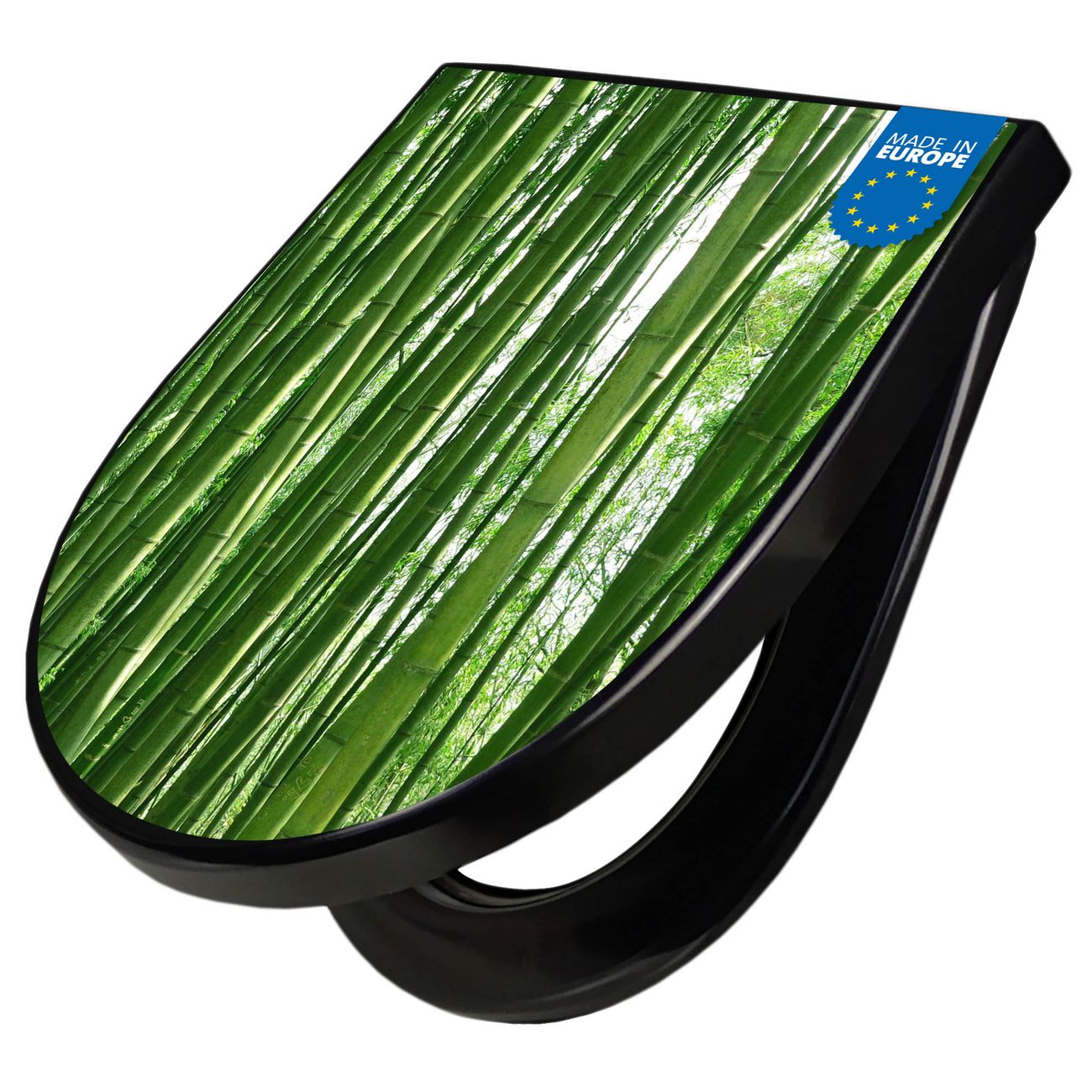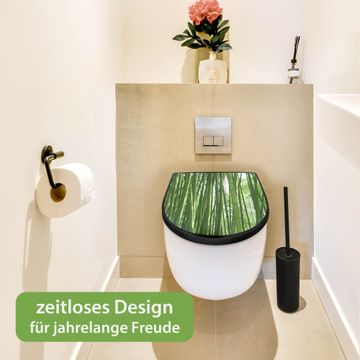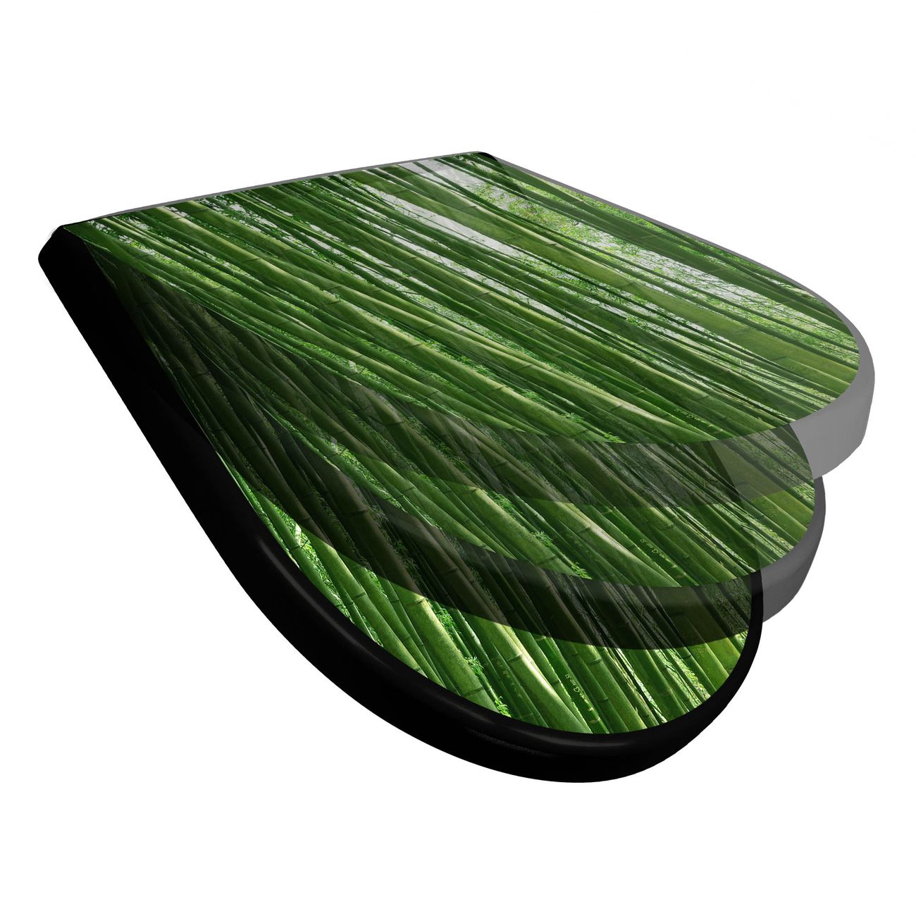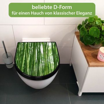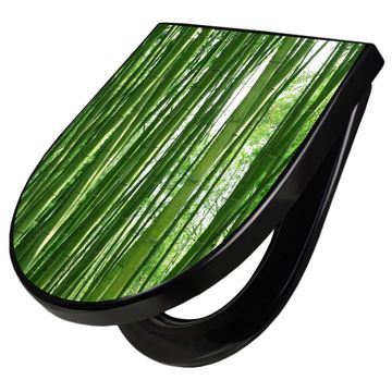 WC Sitz D-Form Schwarz mit Absenkautomatik Motiv Bambus