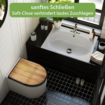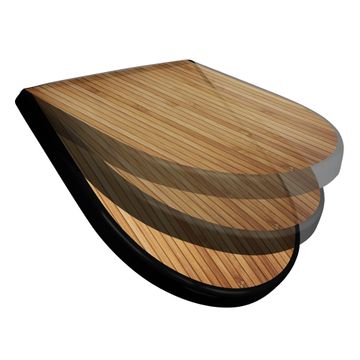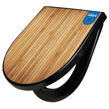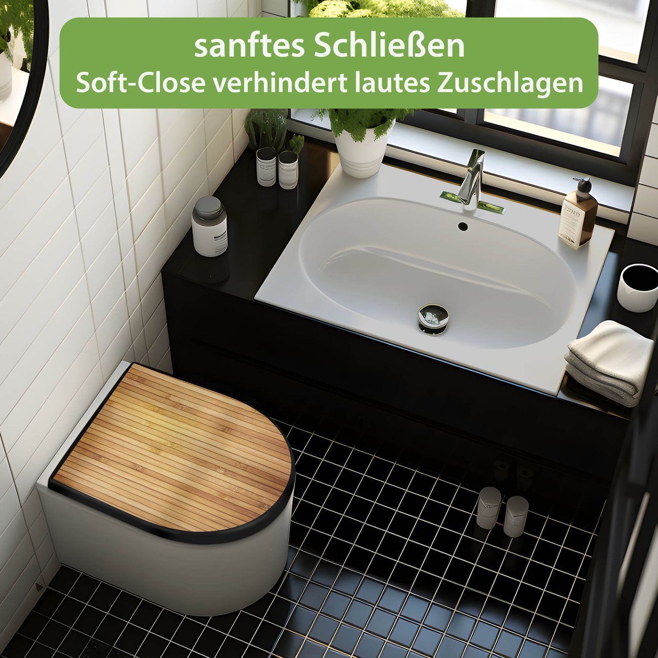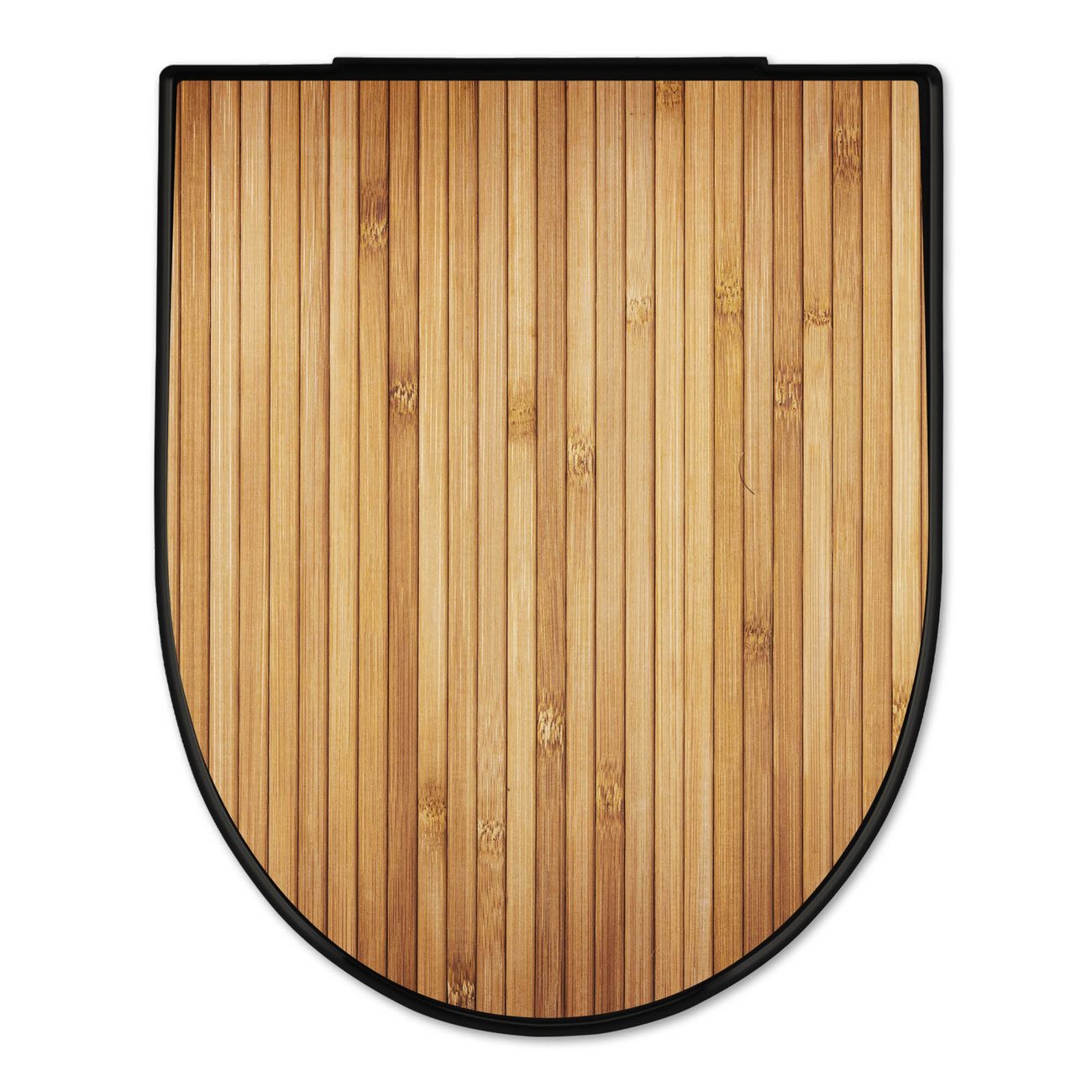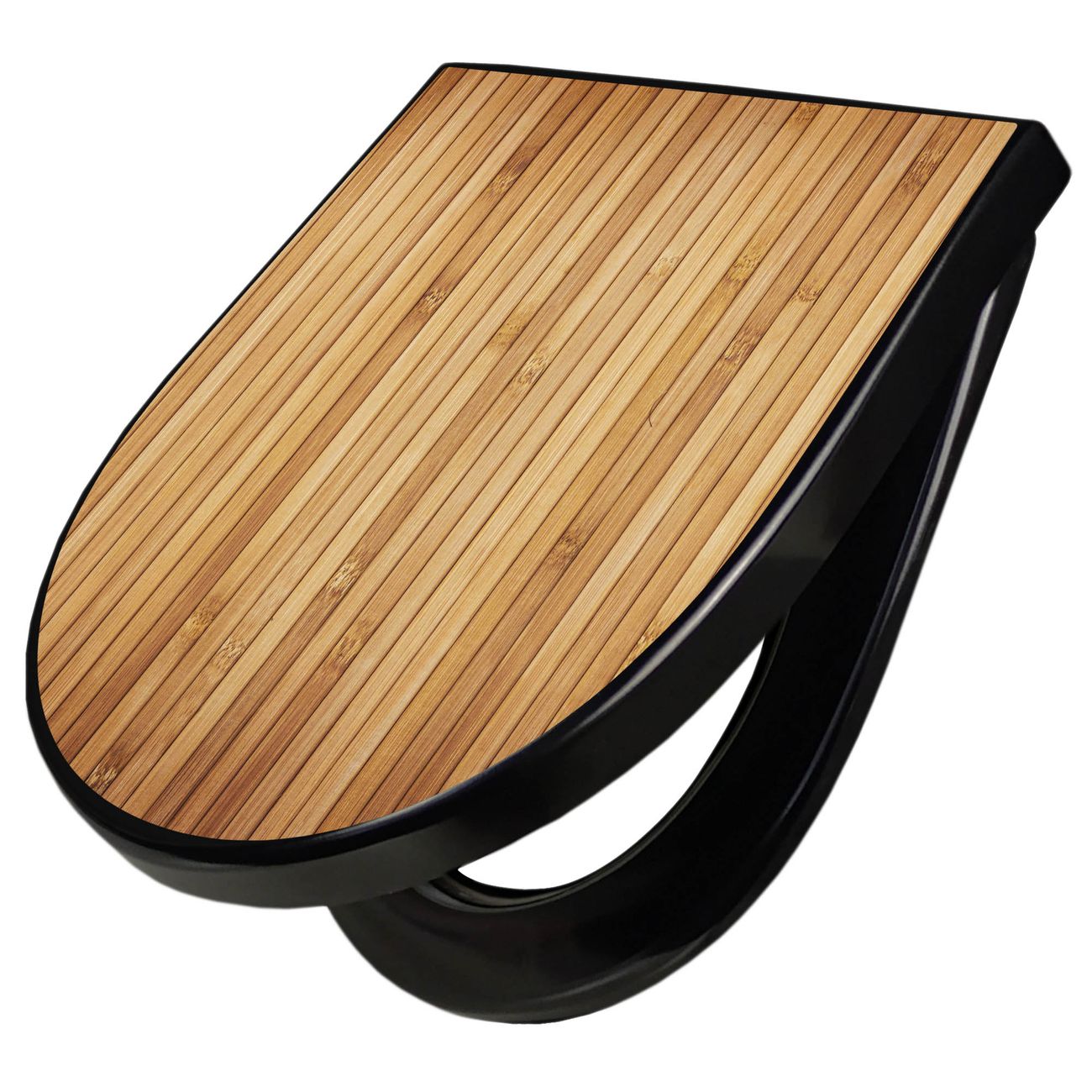 WC Sitz D-Form Schwarz mit Absenkautomatik Motiv Bambusholz