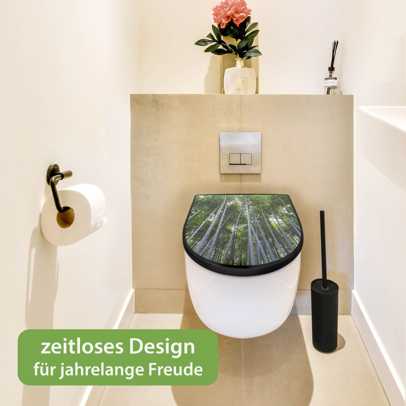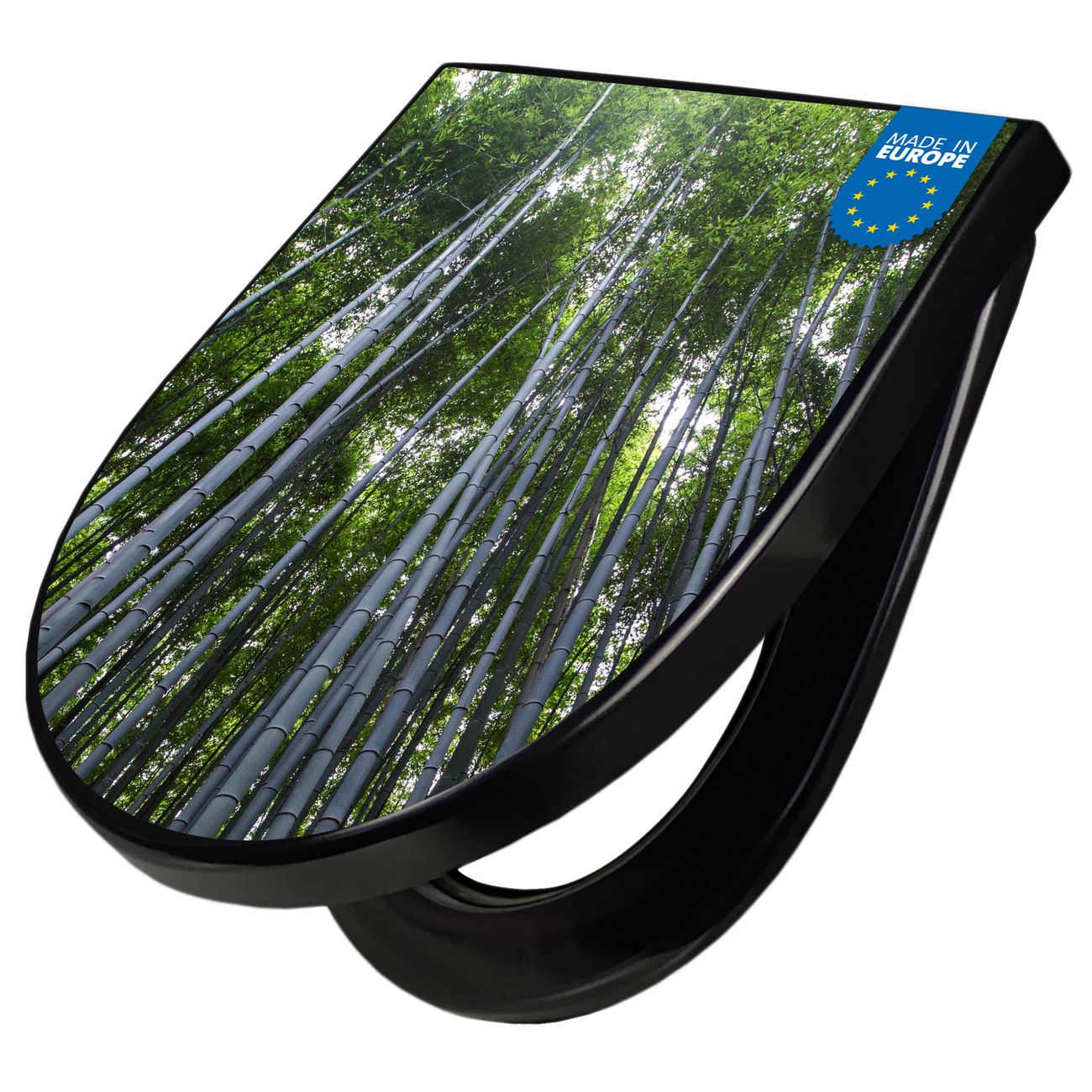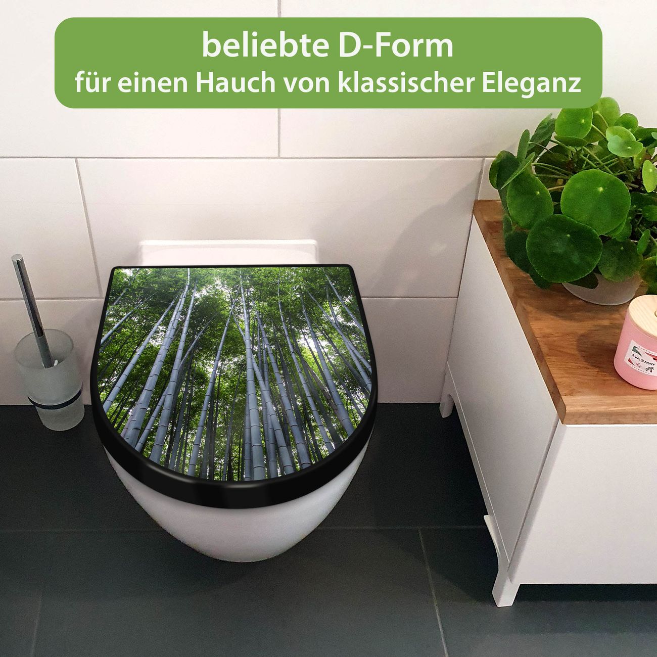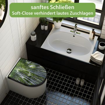 WC Sitz D-Form Schwarz mit Absenkautomatik Motiv Bambuswald