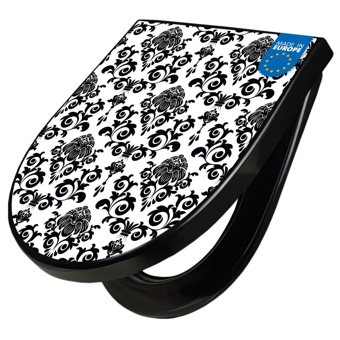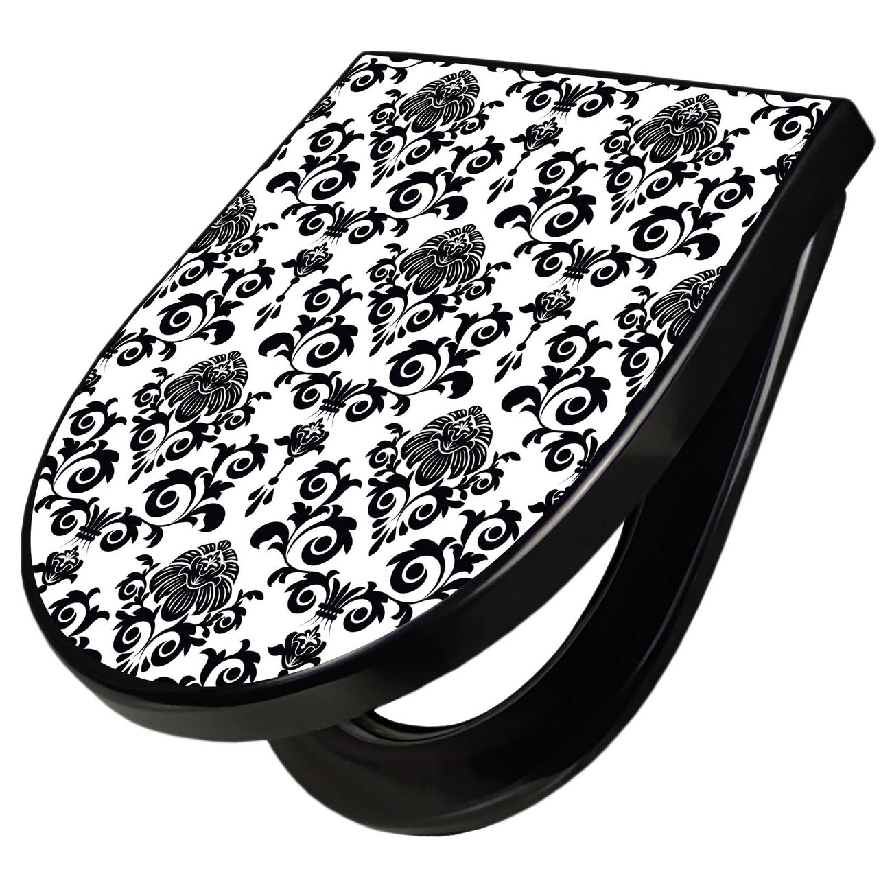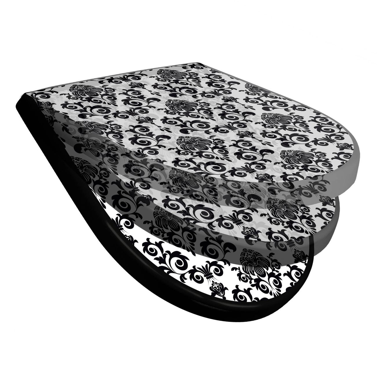 WC Sitz D-Form Schwarz mit Absenkautomatik Motiv Barock