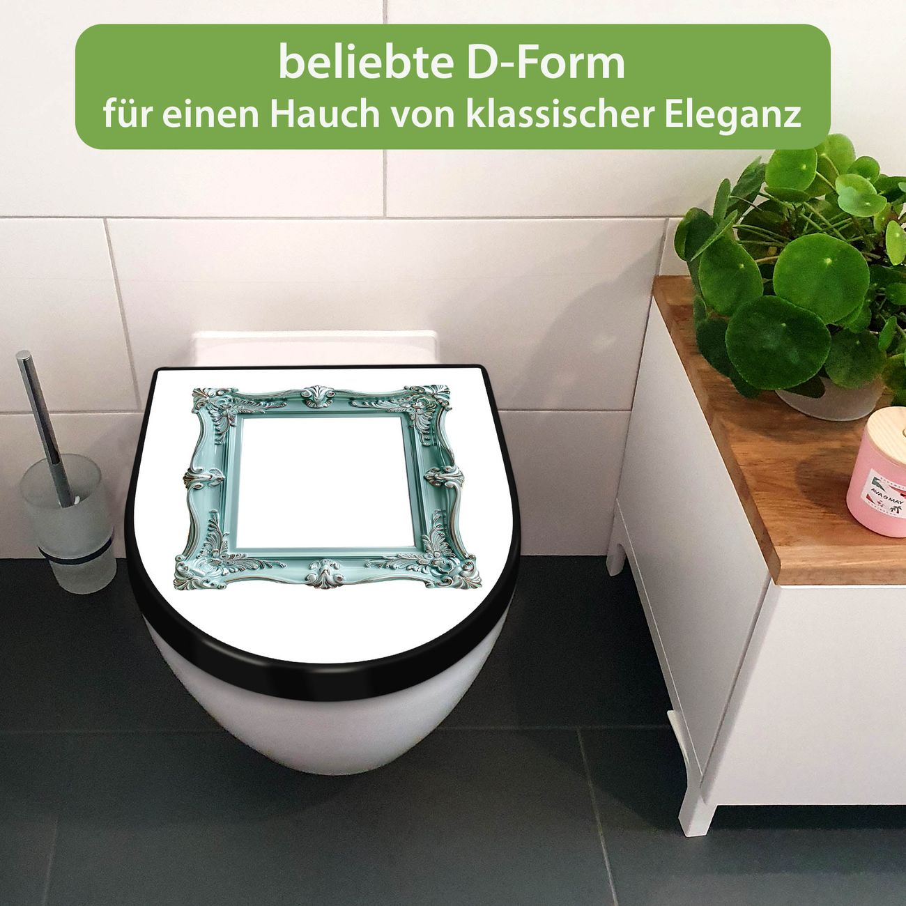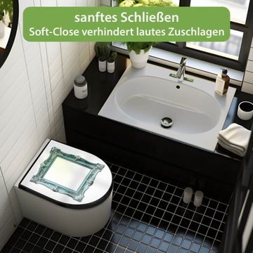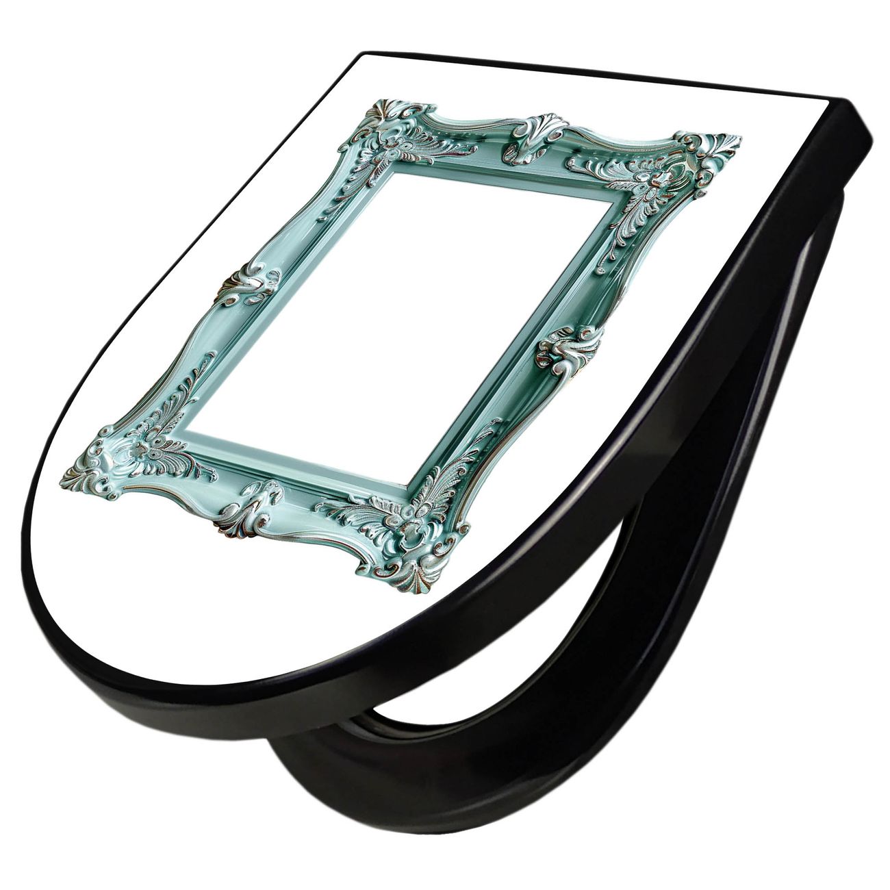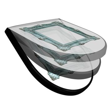 WC Sitz D-Form Schwarz mit Absenkautomatik Motiv Barockrahmen in Türkis