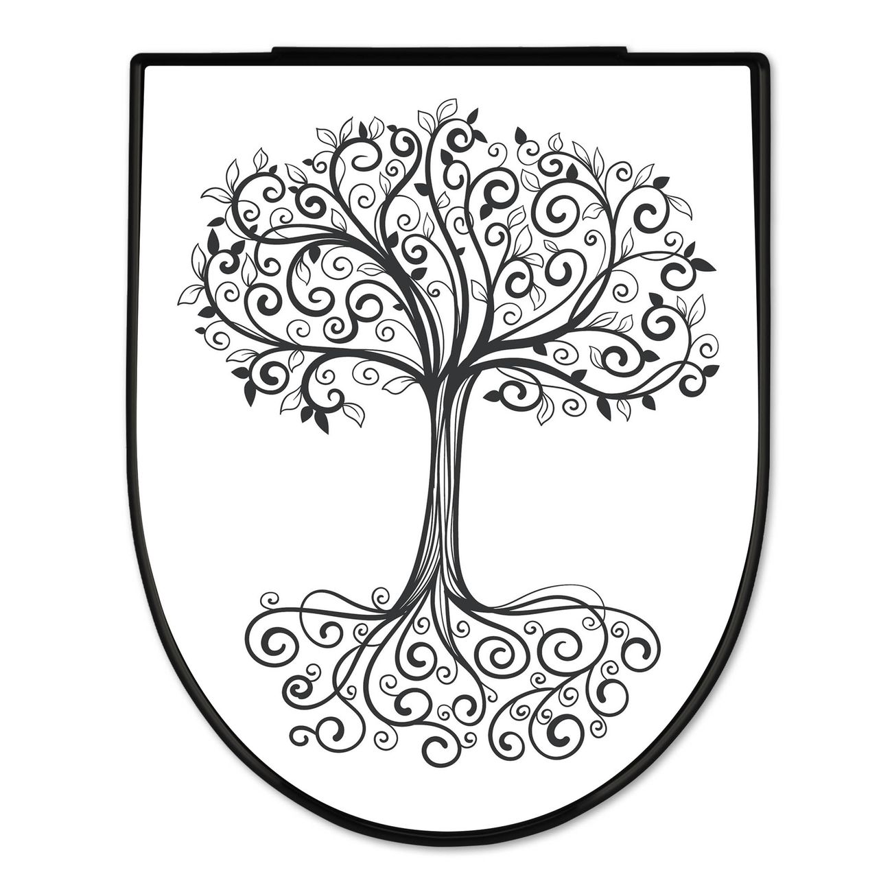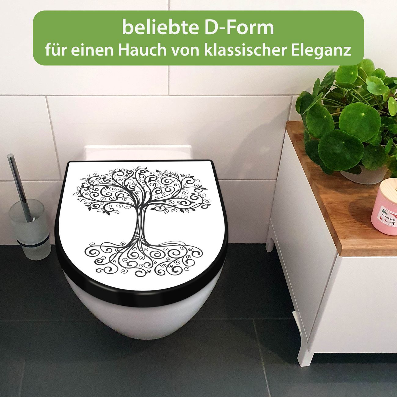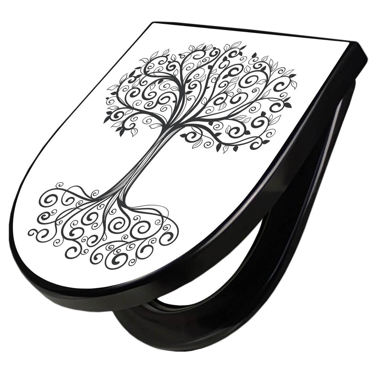 WC Sitz D-Form Schwarz mit Absenkautomatik Motiv Baum des Lebens