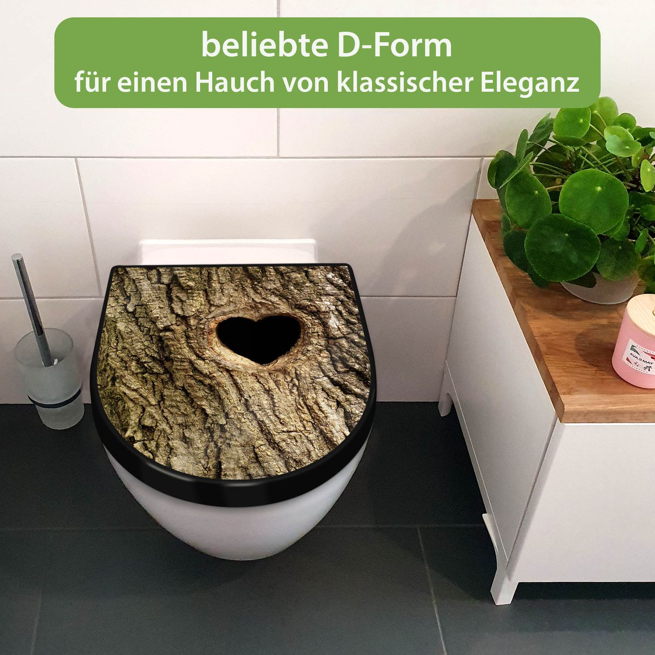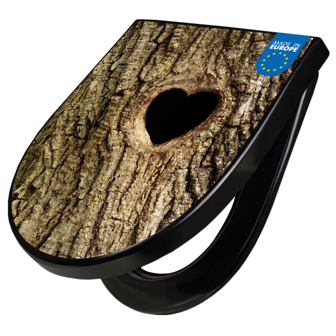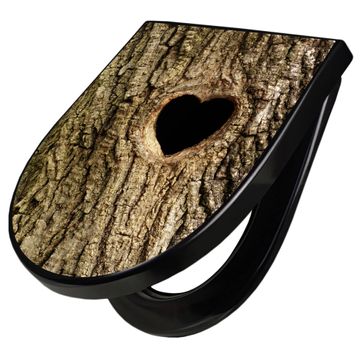 WC Sitz D-Form Schwarz mit Absenkautomatik Motiv Baumherz