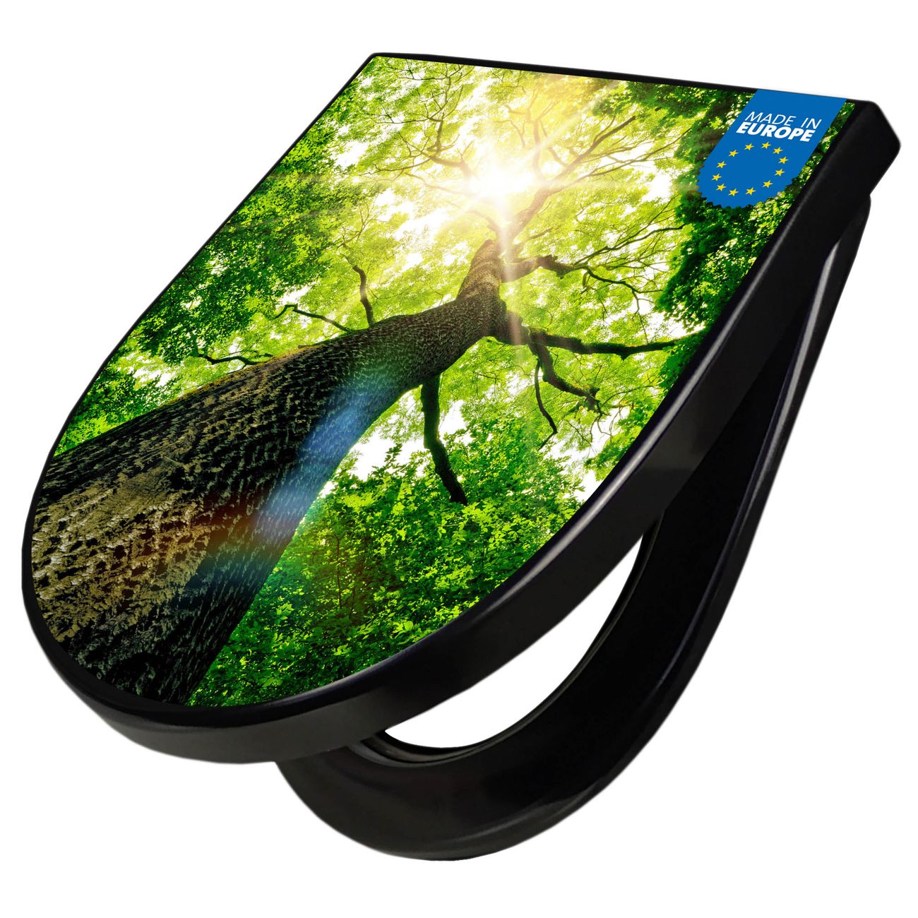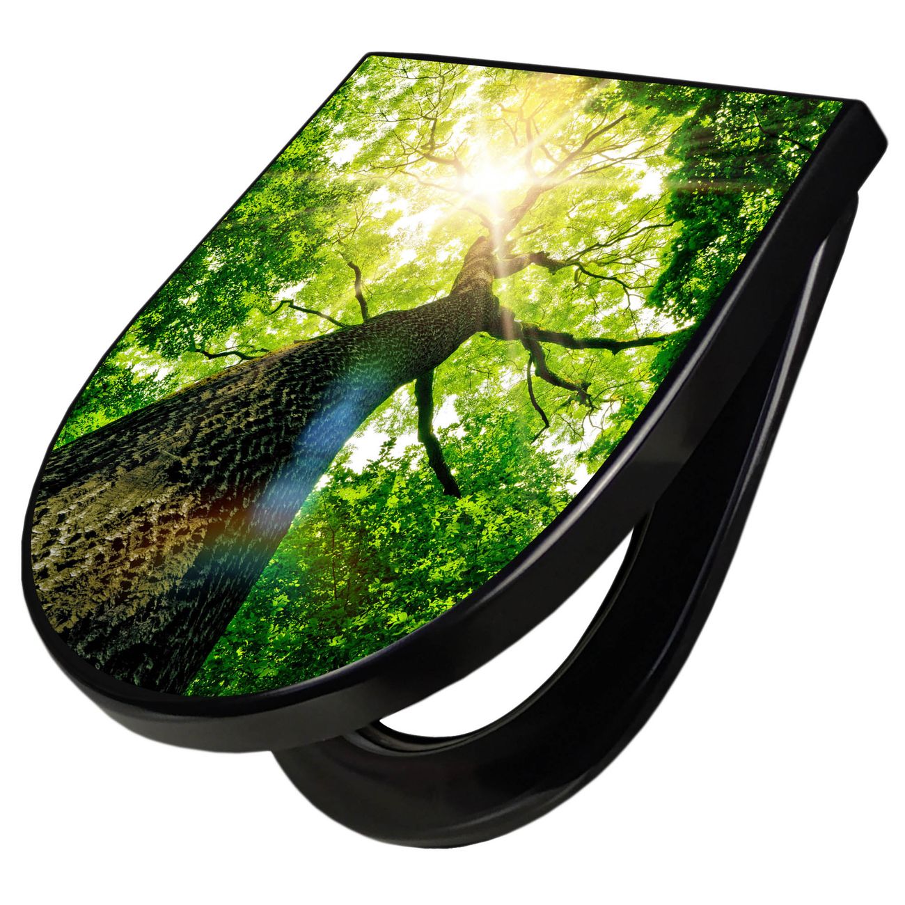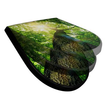 WC Sitz D-Form Schwarz mit Absenkautomatik Motiv Baumkrone