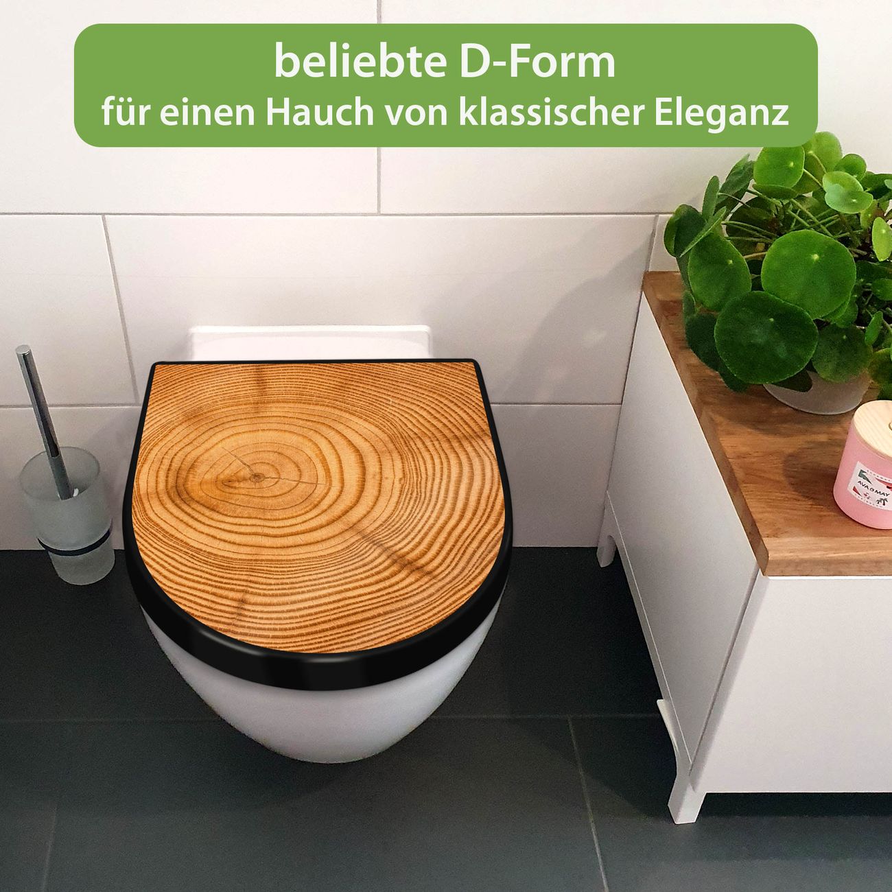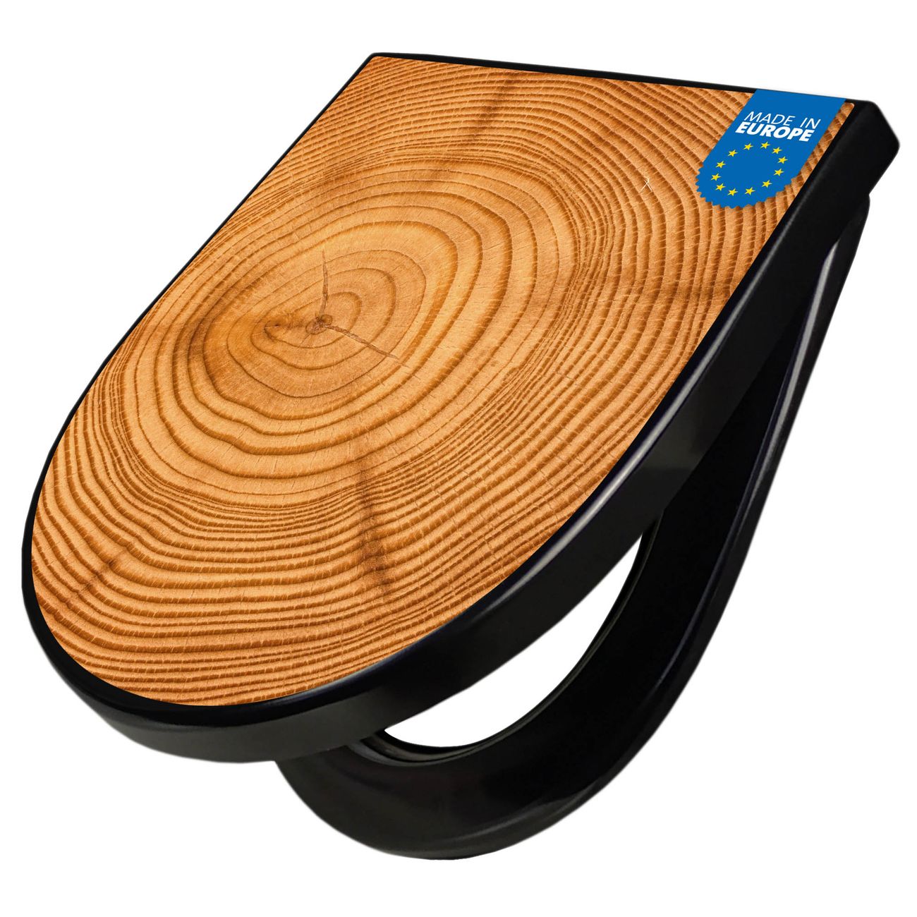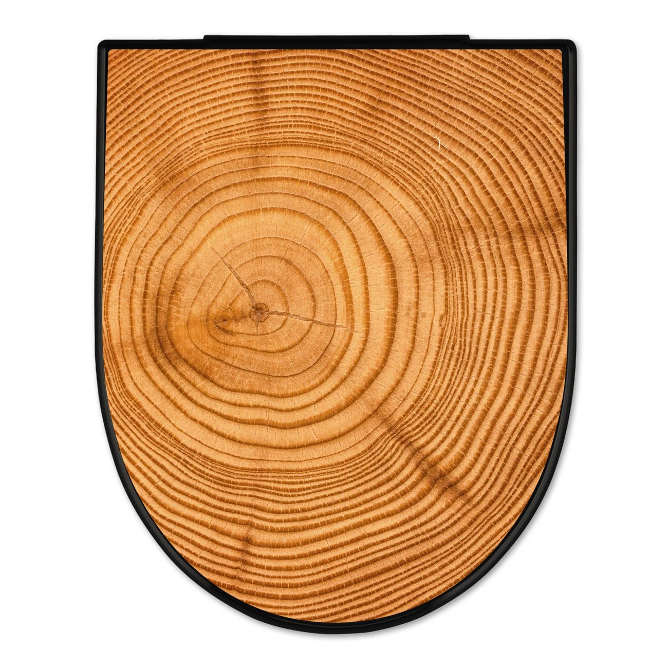 WC Sitz D-Form Schwarz mit Absenkautomatik Motiv Baumstamm