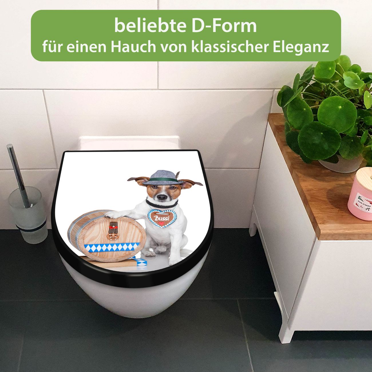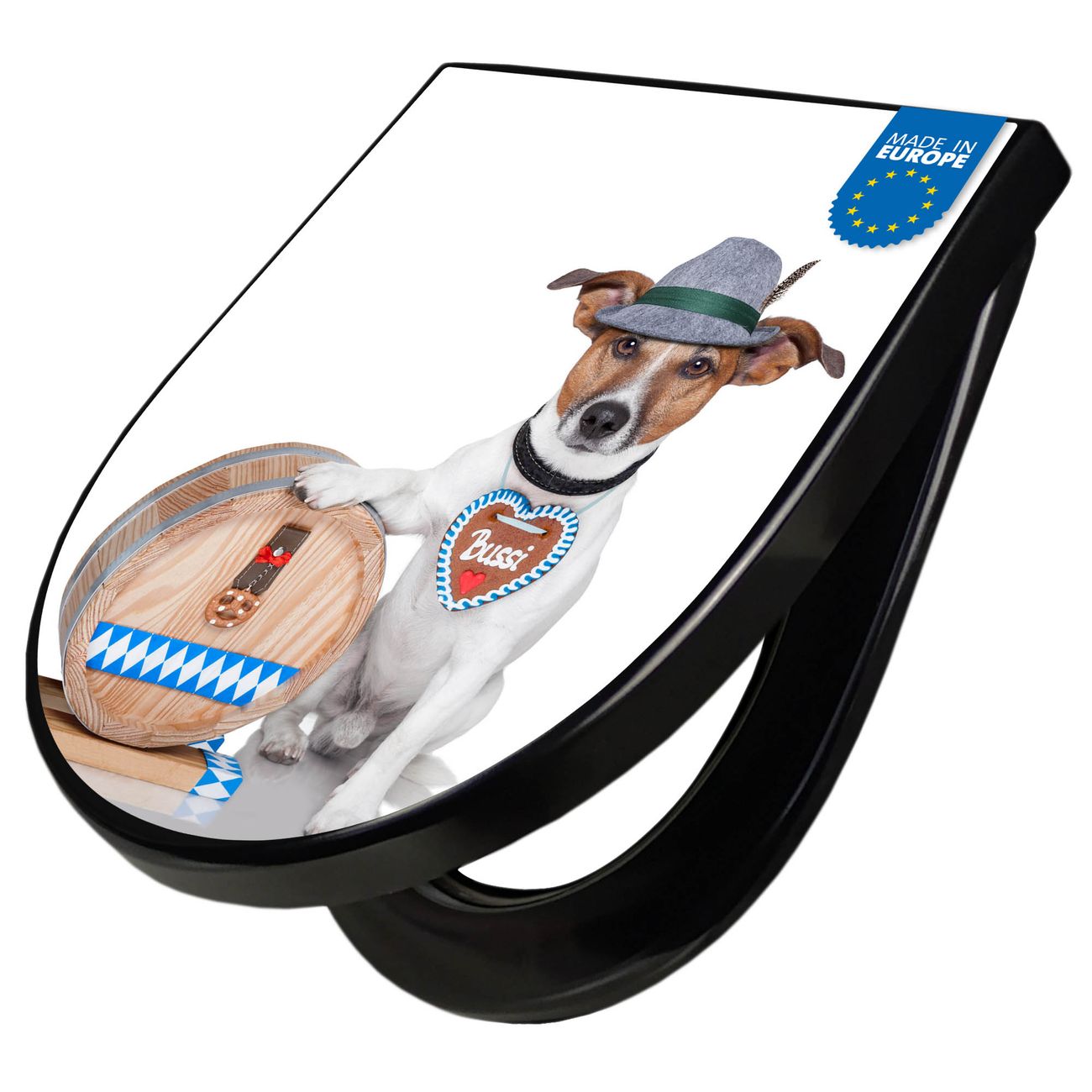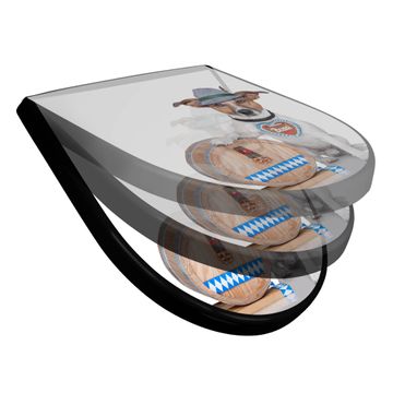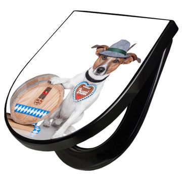 WC Sitz D-Form Schwarz mit Absenkautomatik Motiv Bayer Jack Russel