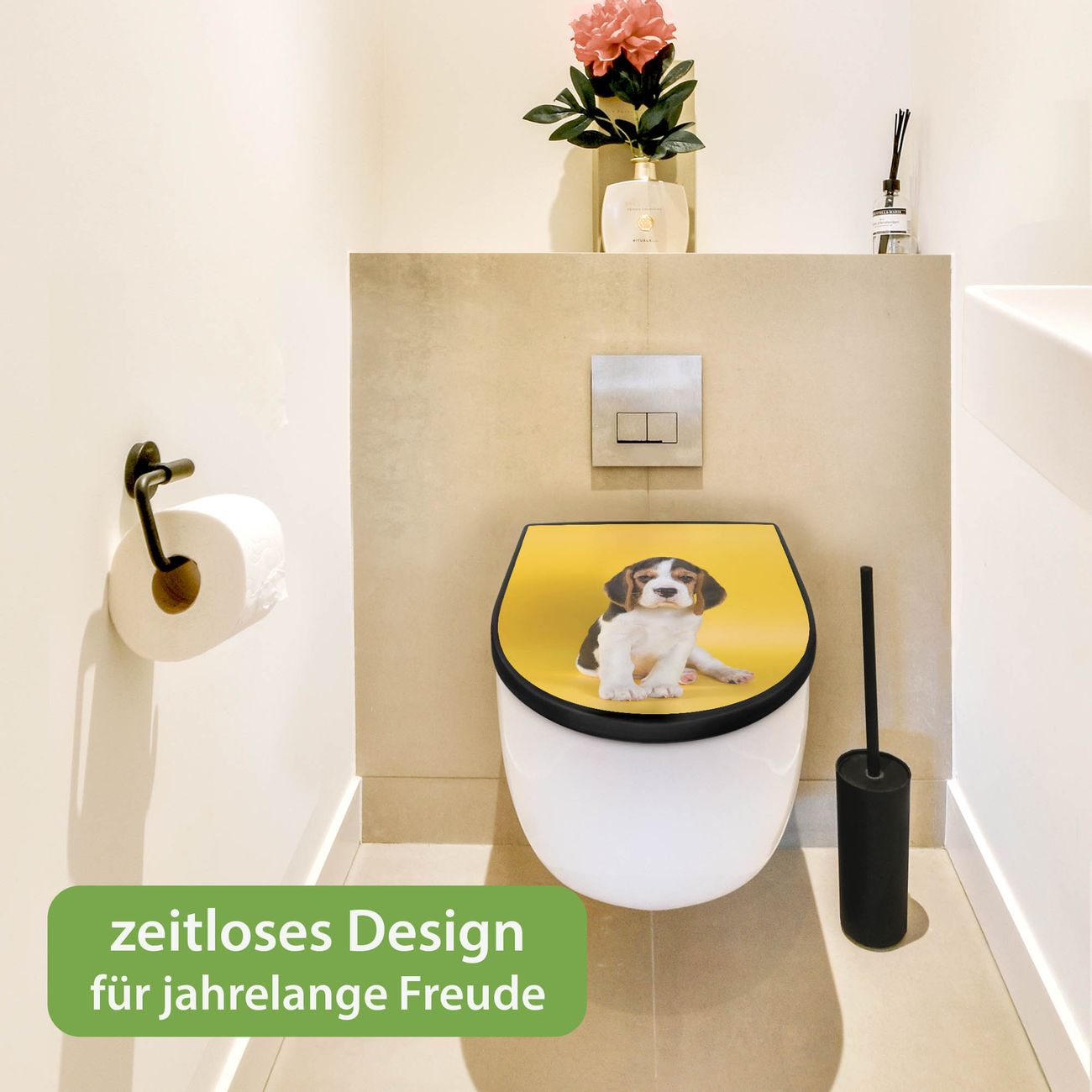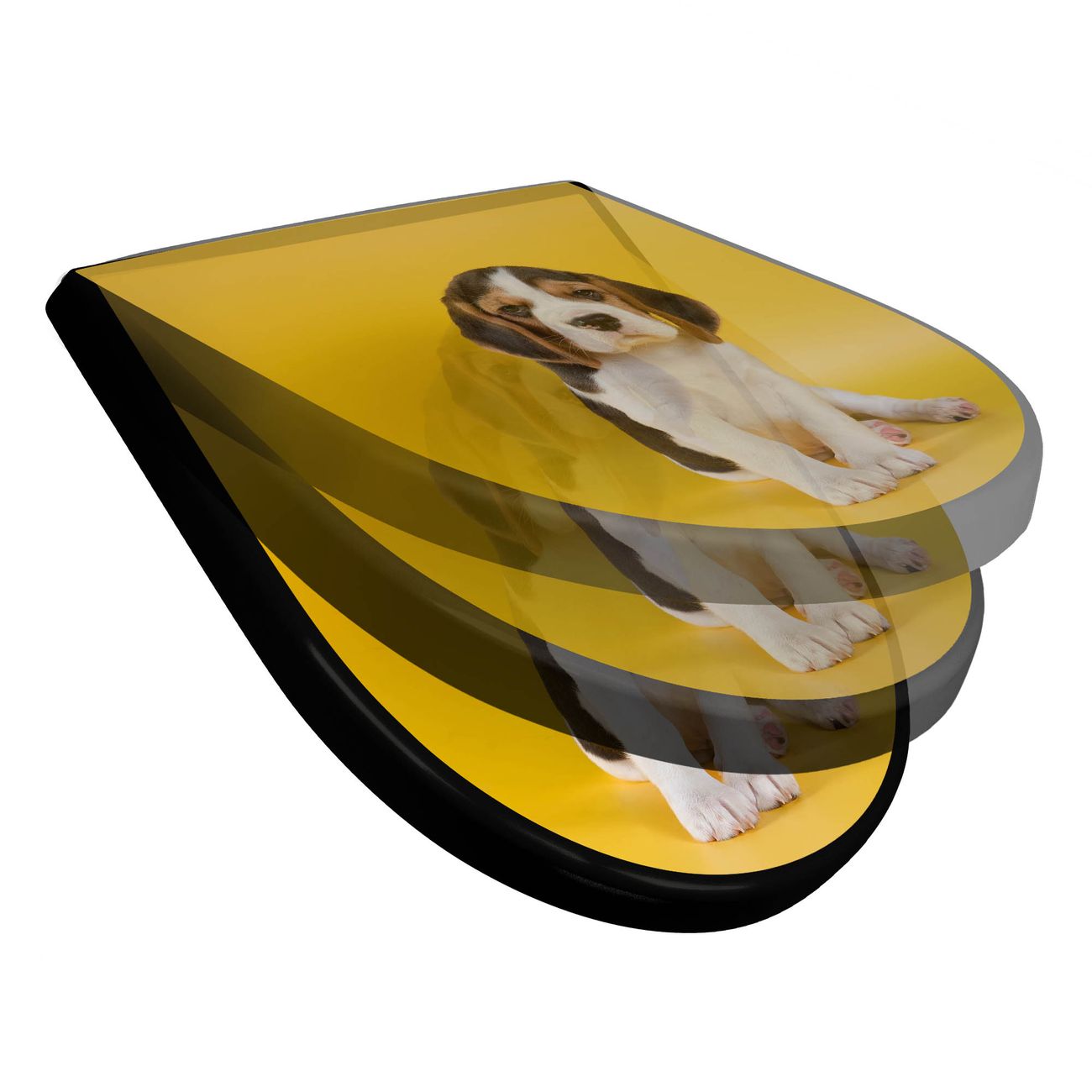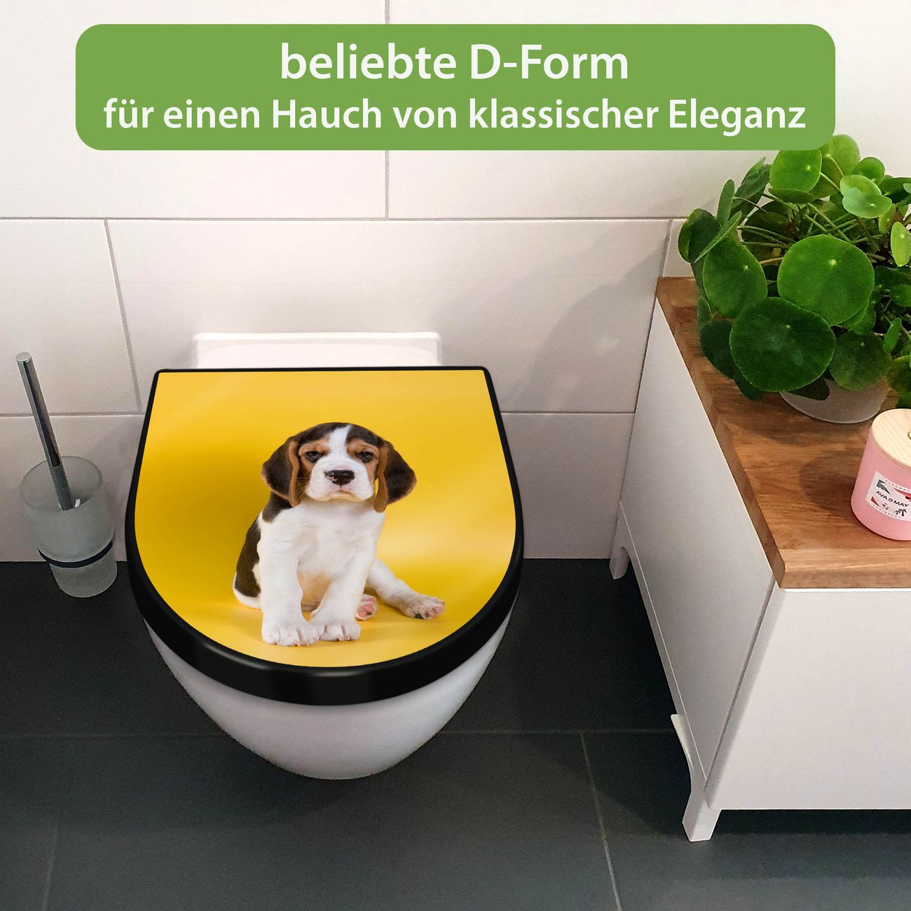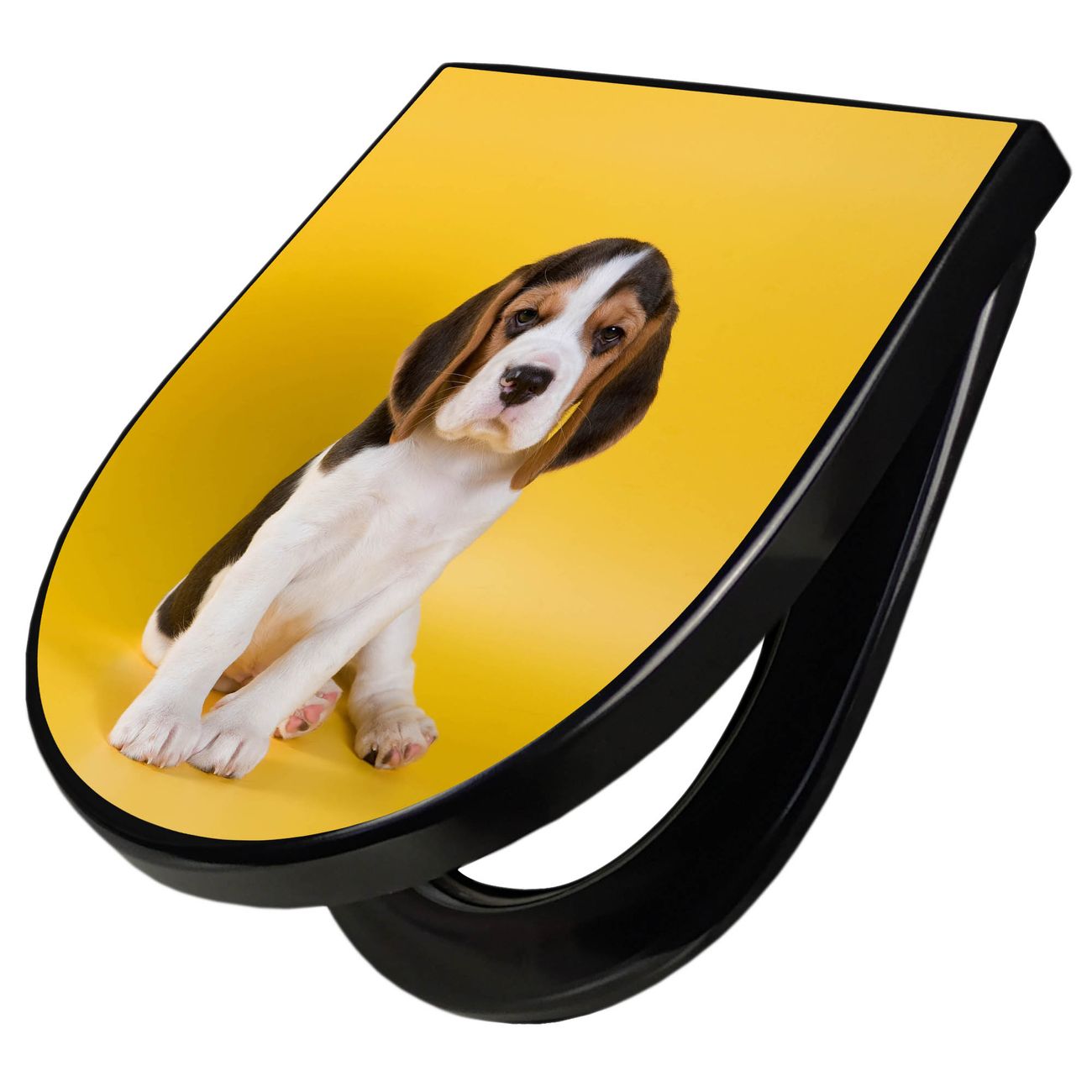 WC Sitz D-Form Schwarz mit Absenkautomatik Motiv Beagle