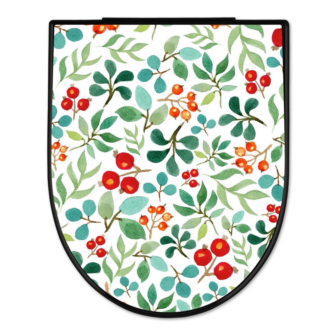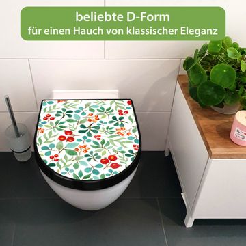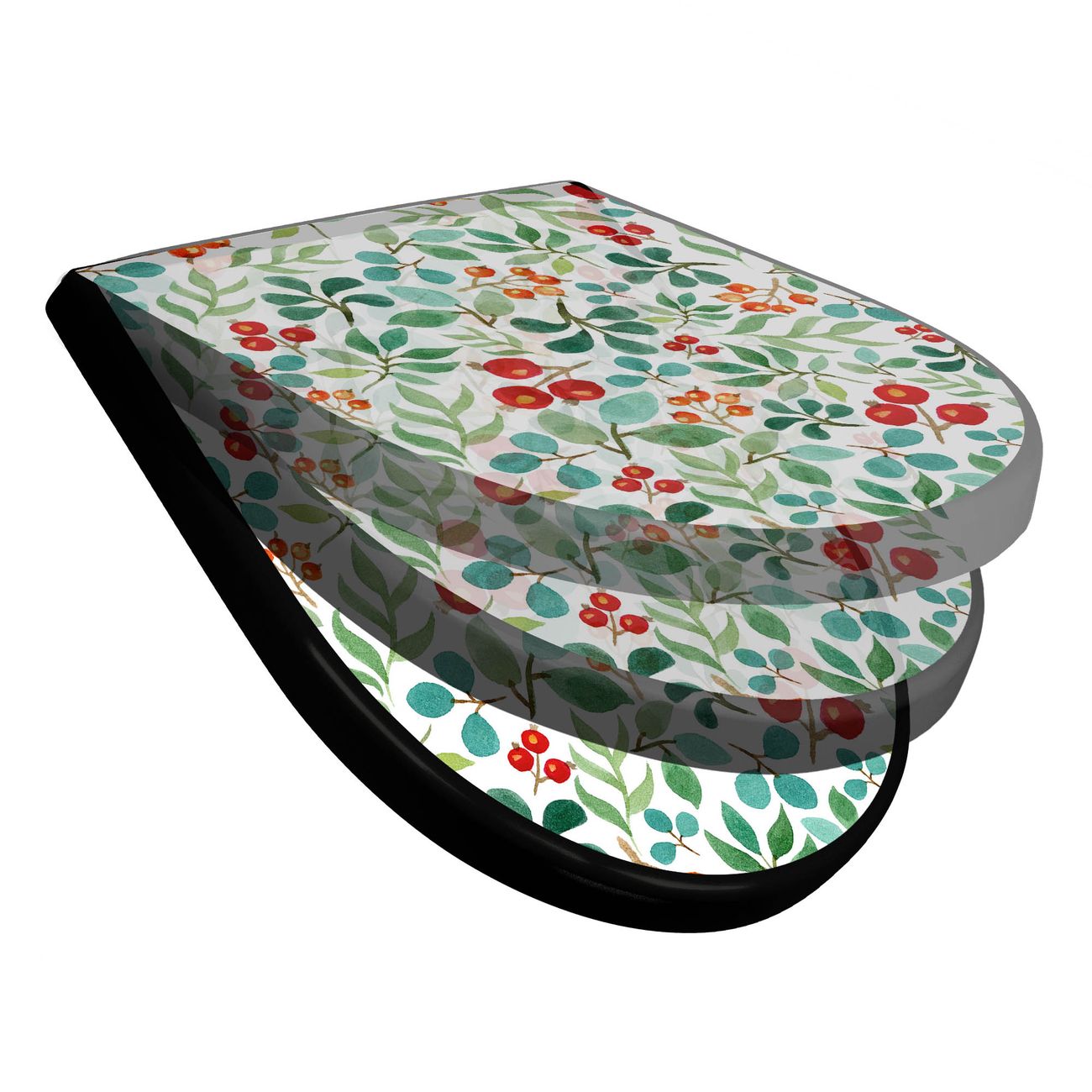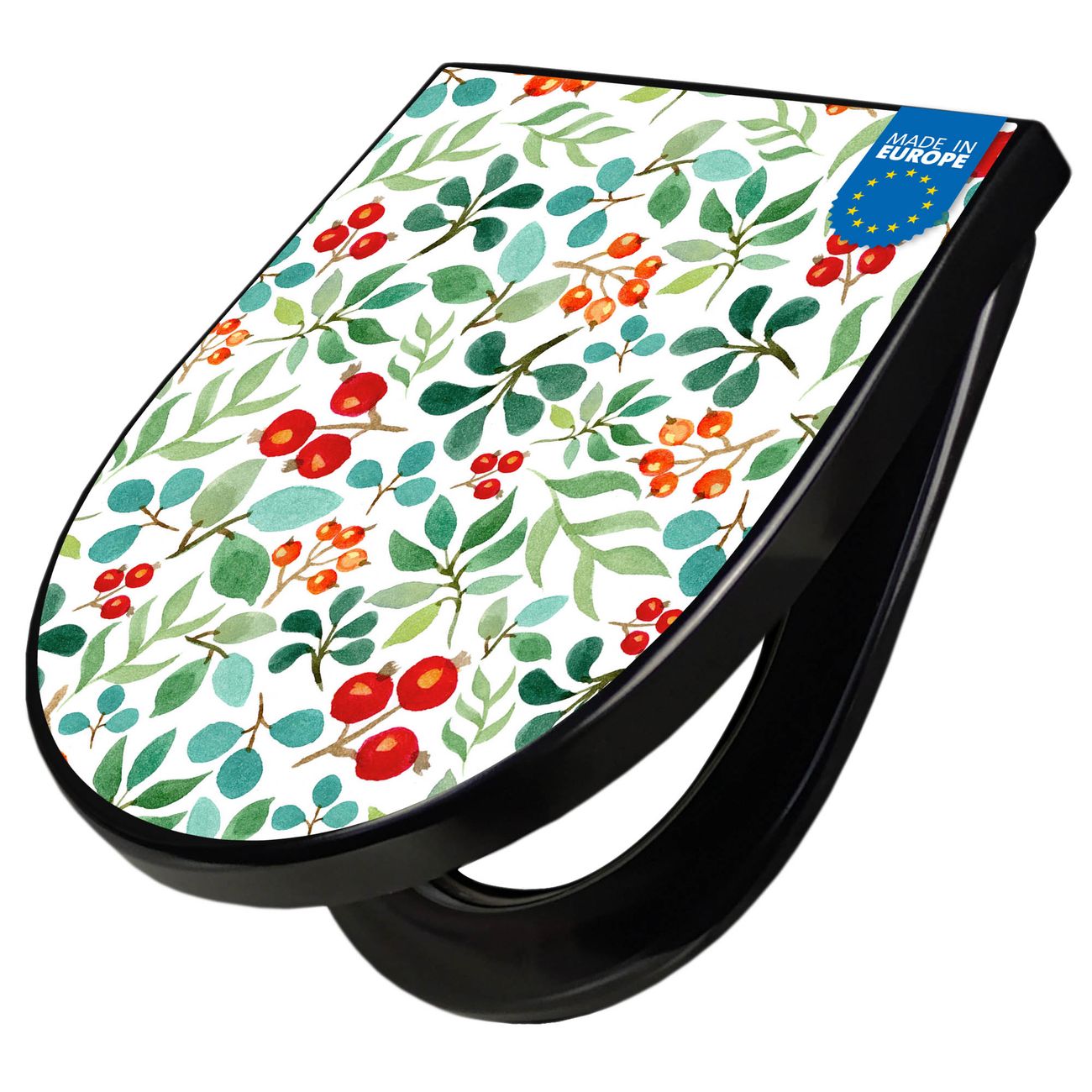 WC Sitz D-Form Schwarz mit Absenkautomatik Motiv Beeren und Blätter