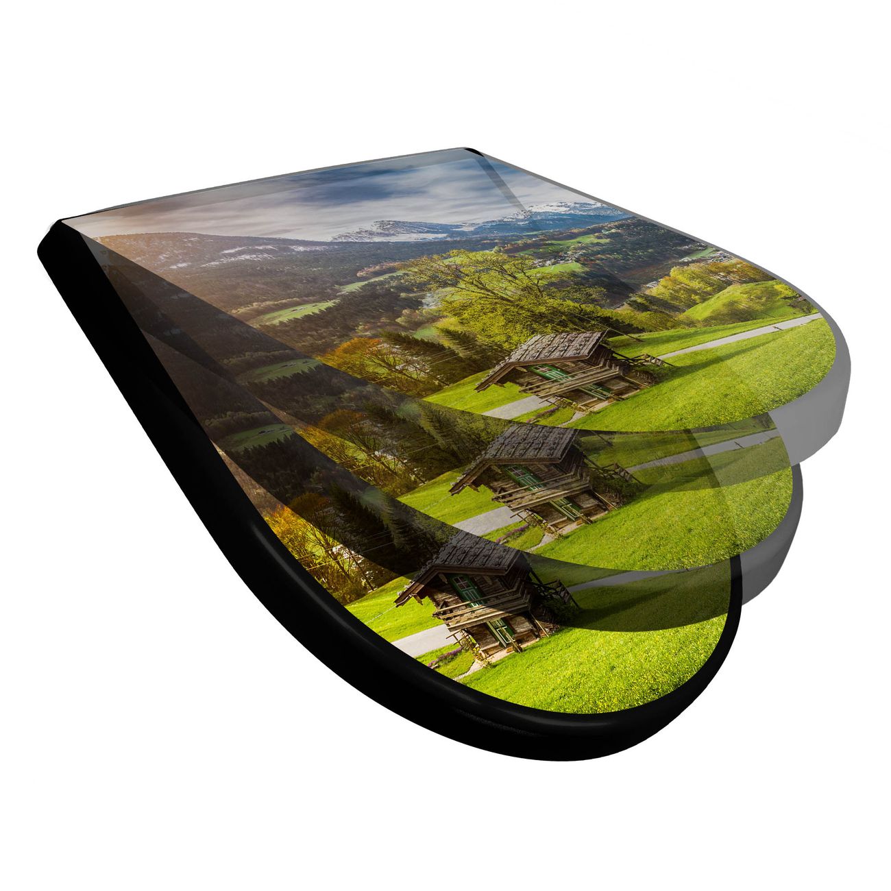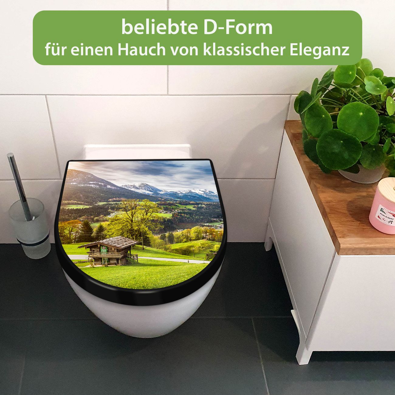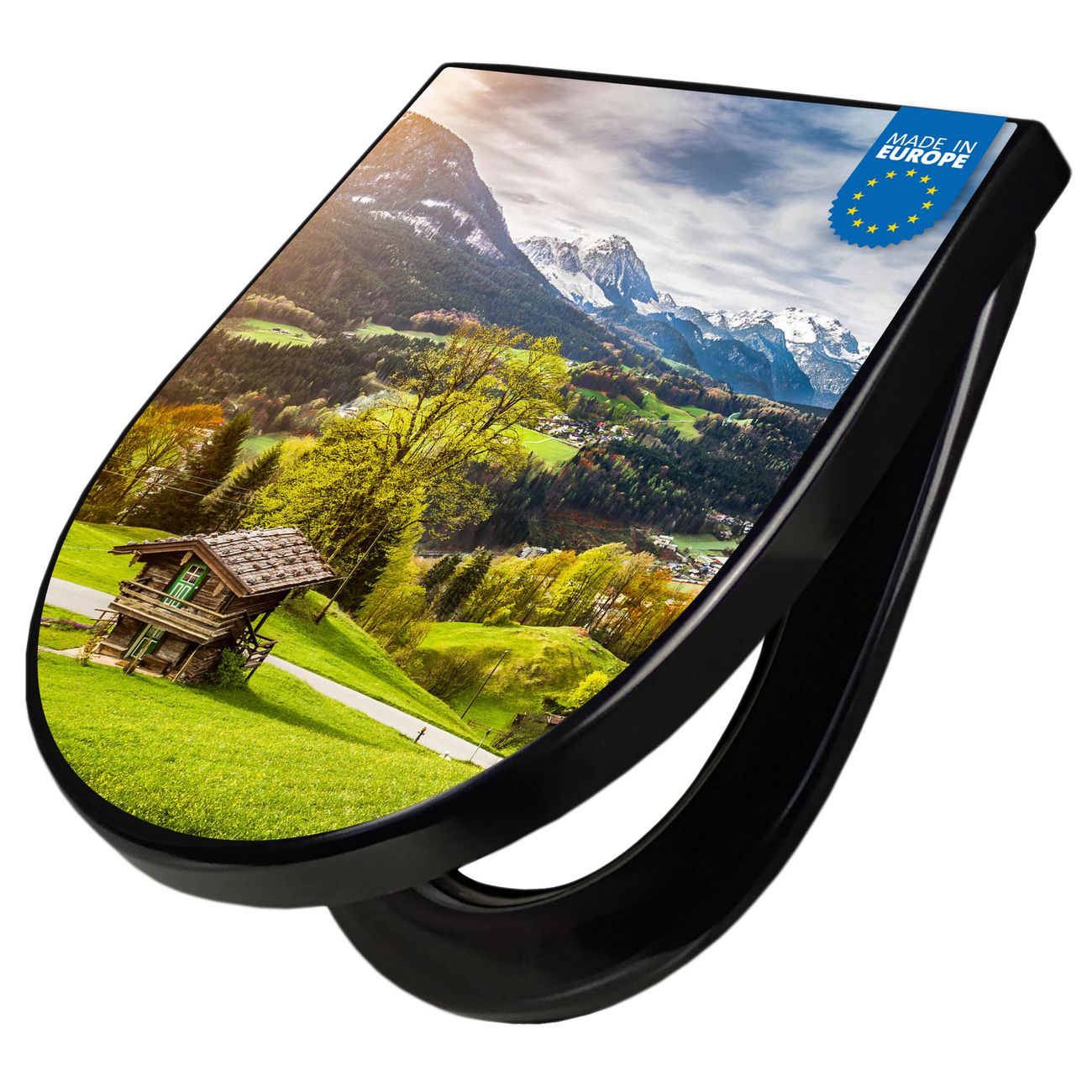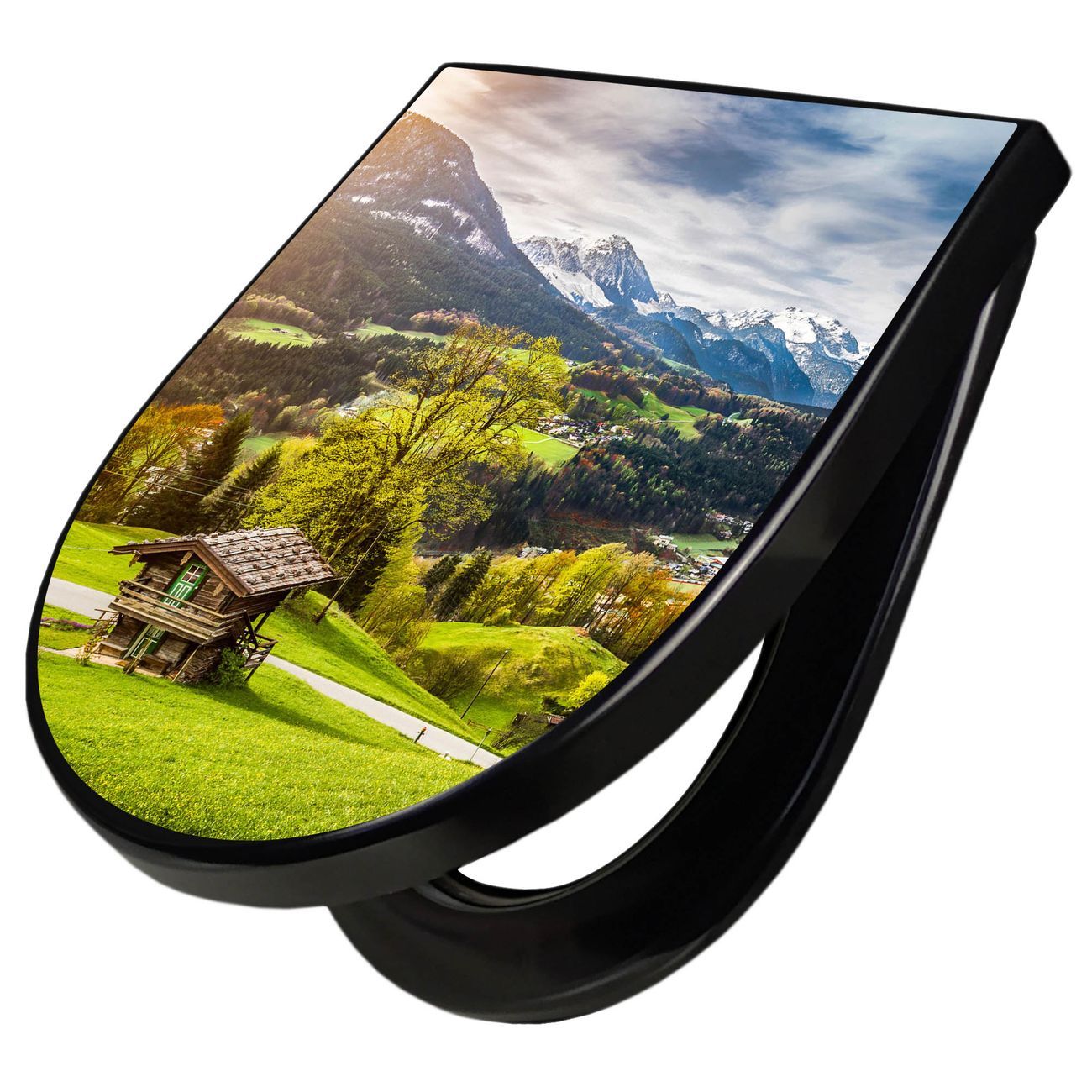 WC Sitz D-Form Schwarz mit Absenkautomatik Motiv Berchtesgadener Land