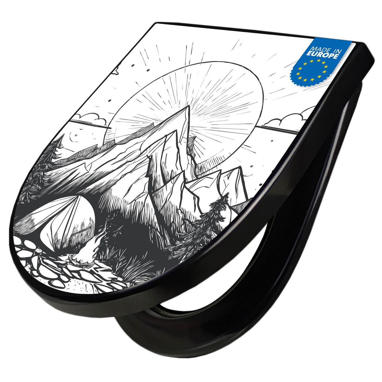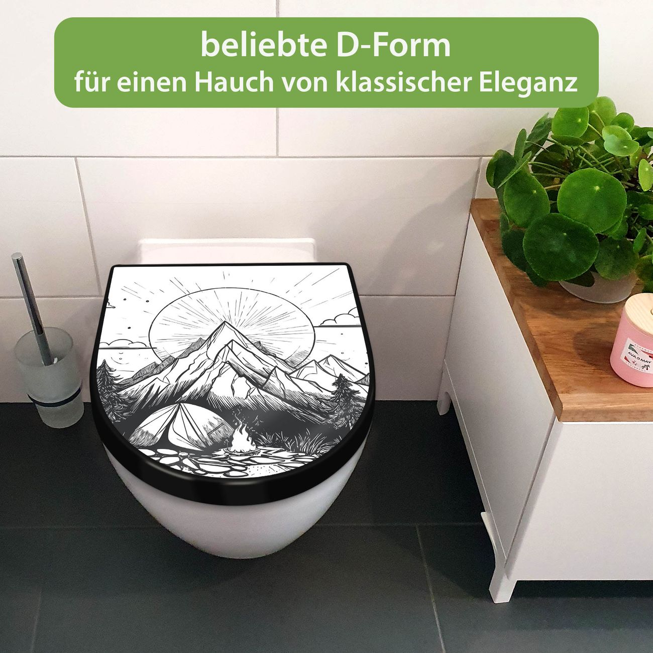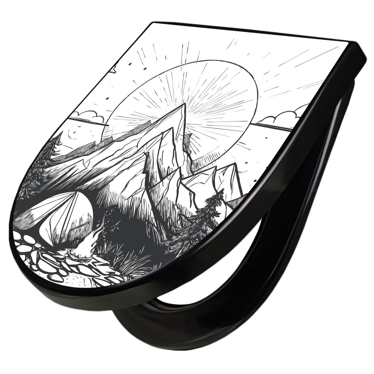 WC Sitz D-Form Schwarz mit Absenkautomatik Motiv Bergcamping Abenteuer 2