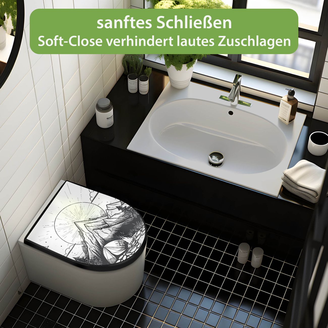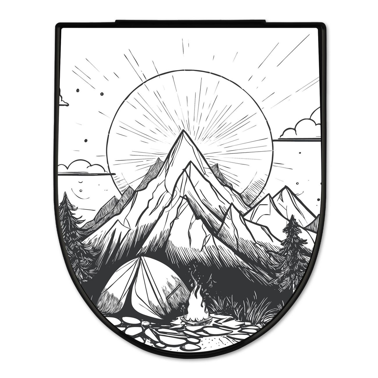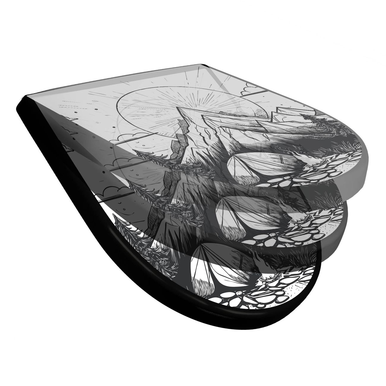 WC Sitz D-Form Schwarz mit Absenkautomatik Motiv Bergcamping Abenteuer 2