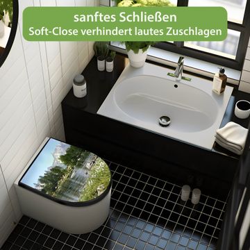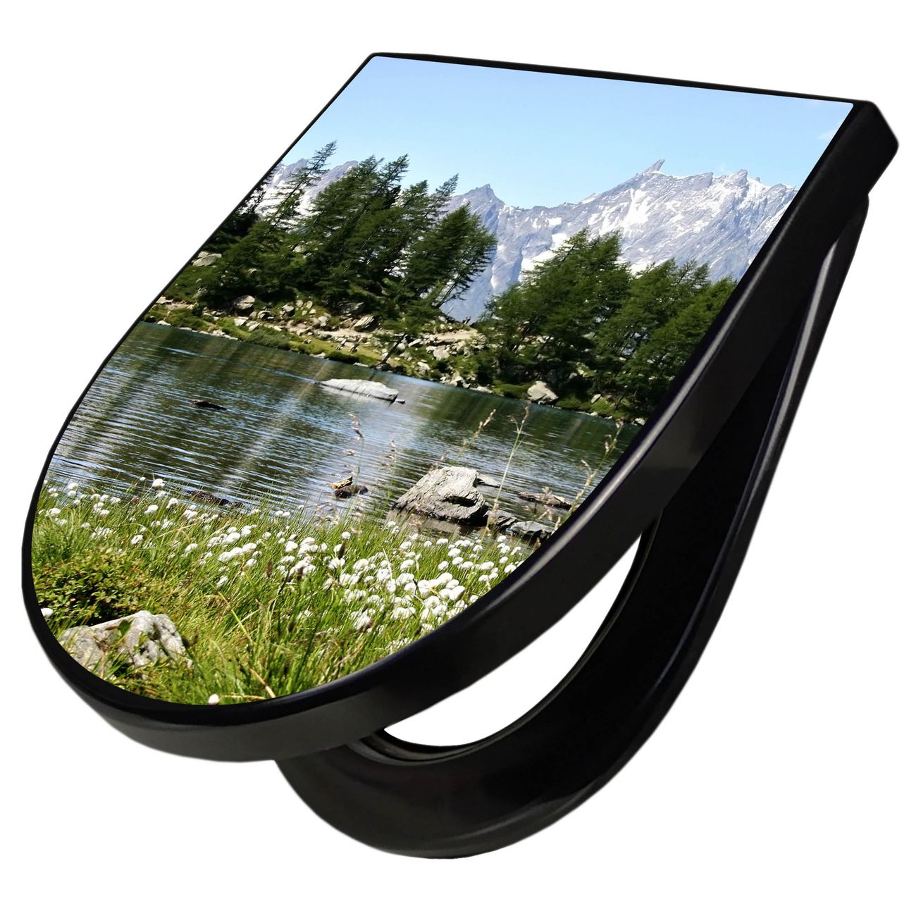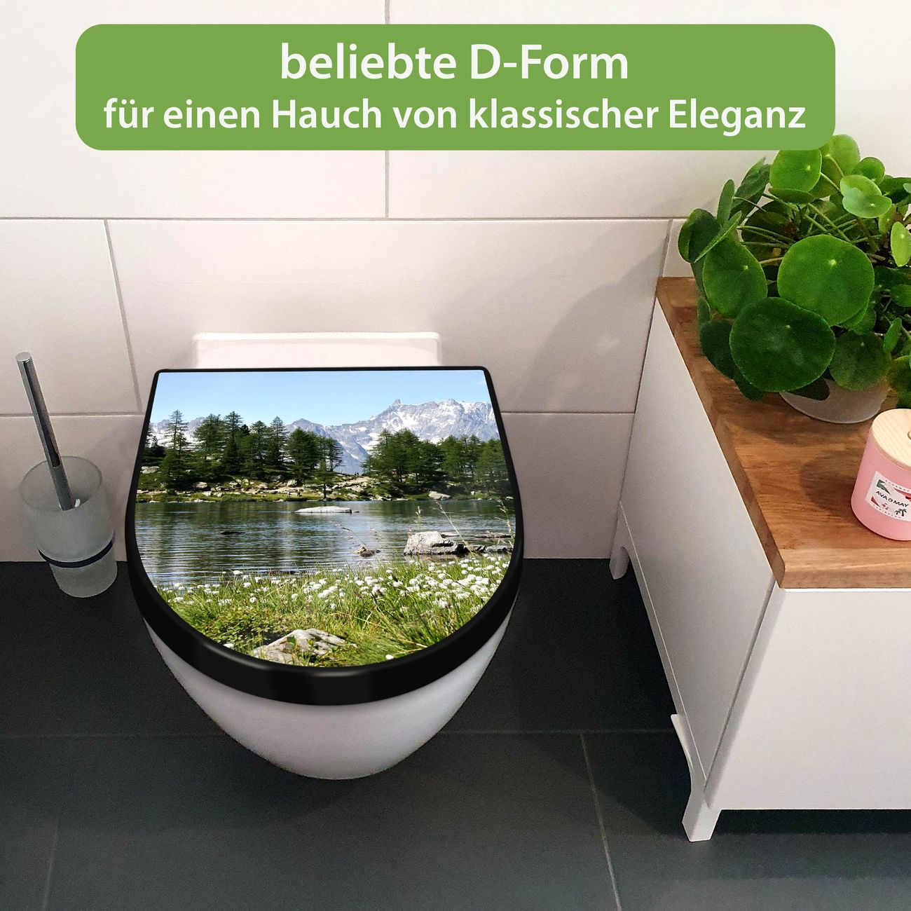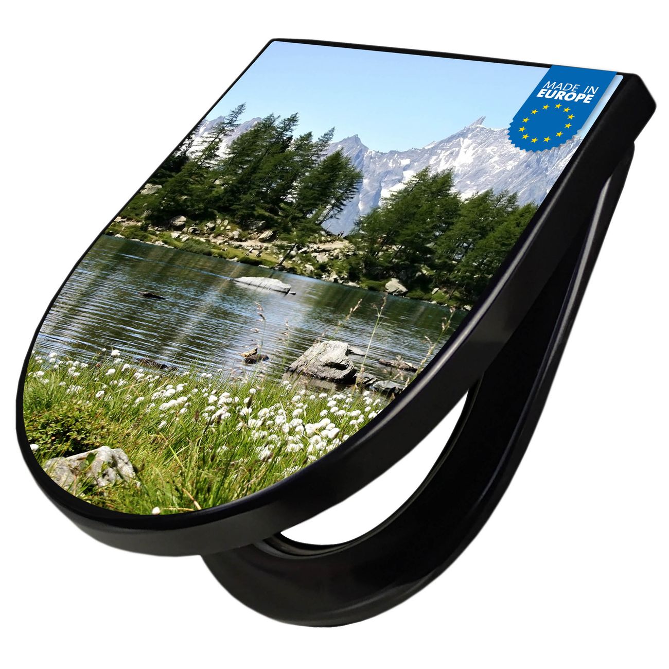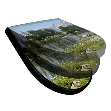 WC Sitz D-Form Schwarz mit Absenkautomatik Motiv Bergidylle