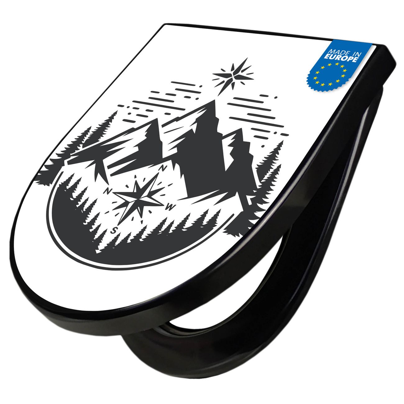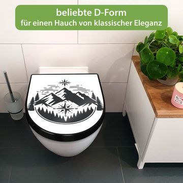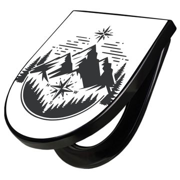 WC Sitz D-Form Schwarz mit Absenkautomatik Motiv Bergkompass