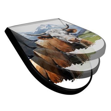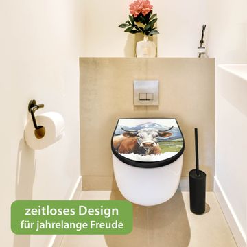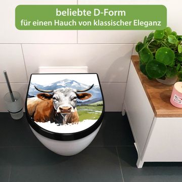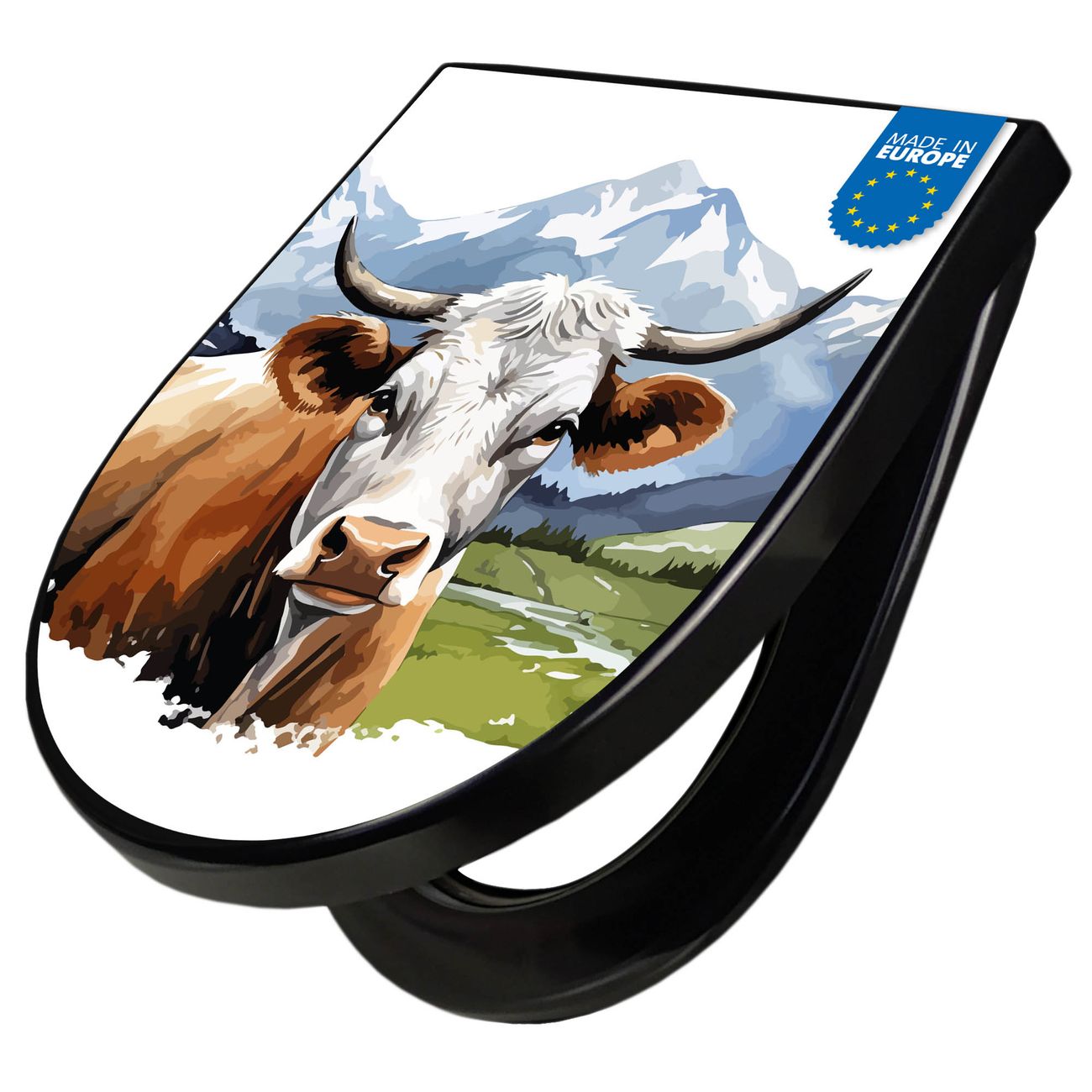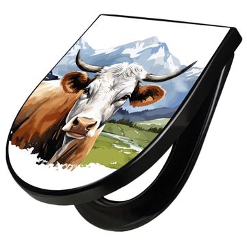 WC Sitz D-Form Schwarz mit Absenkautomatik Motiv Bergkuh in der Landschaft
