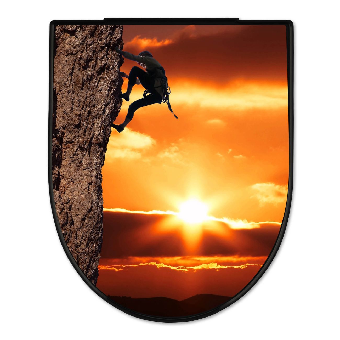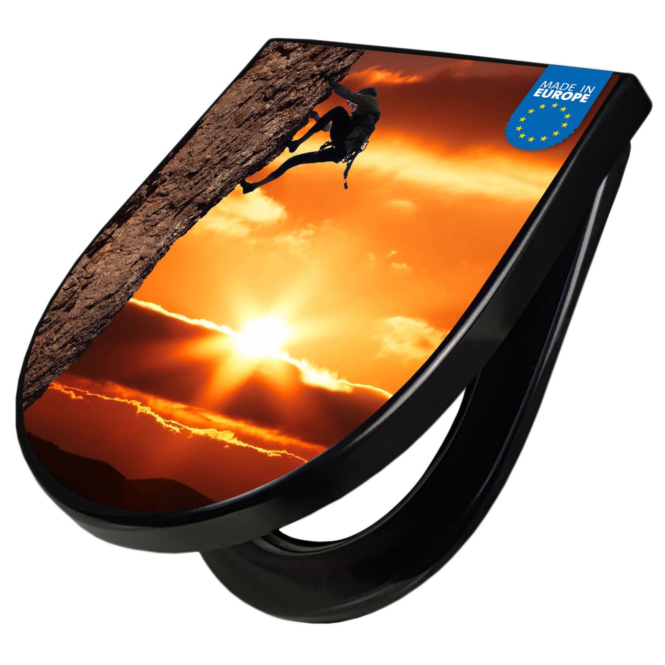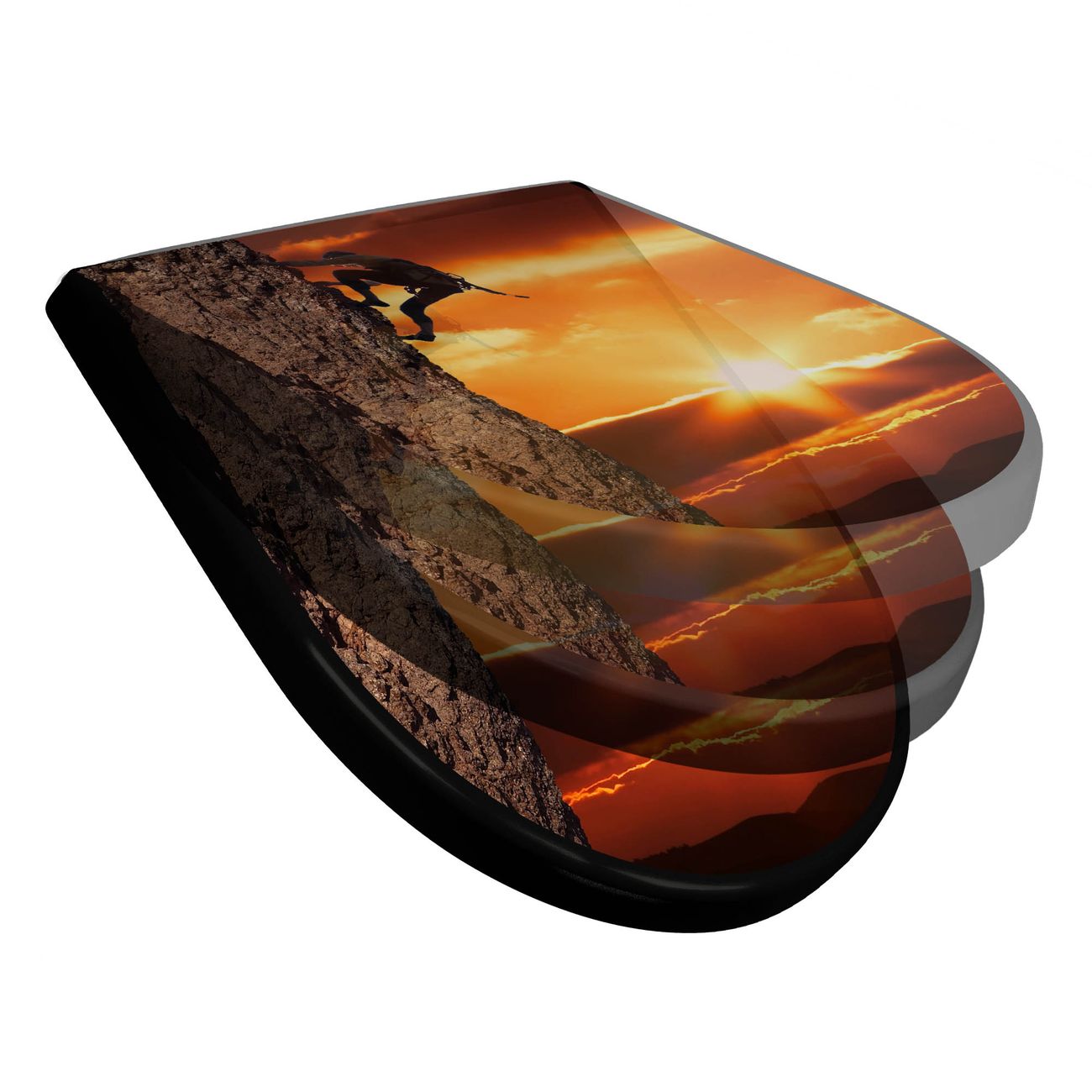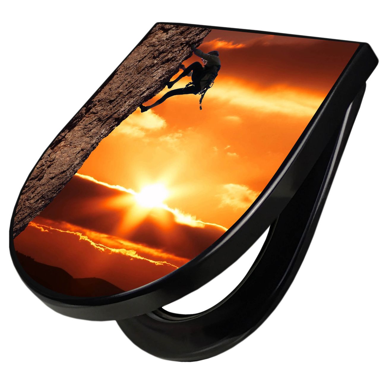 WC Sitz D-Form Schwarz mit Absenkautomatik Motiv Bergsteiger