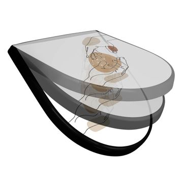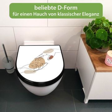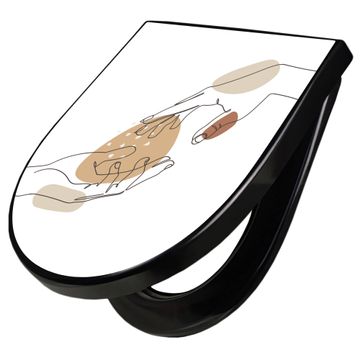 WC Sitz D-Form Schwarz mit Absenkautomatik Motiv Berührende Verbindung Lineart