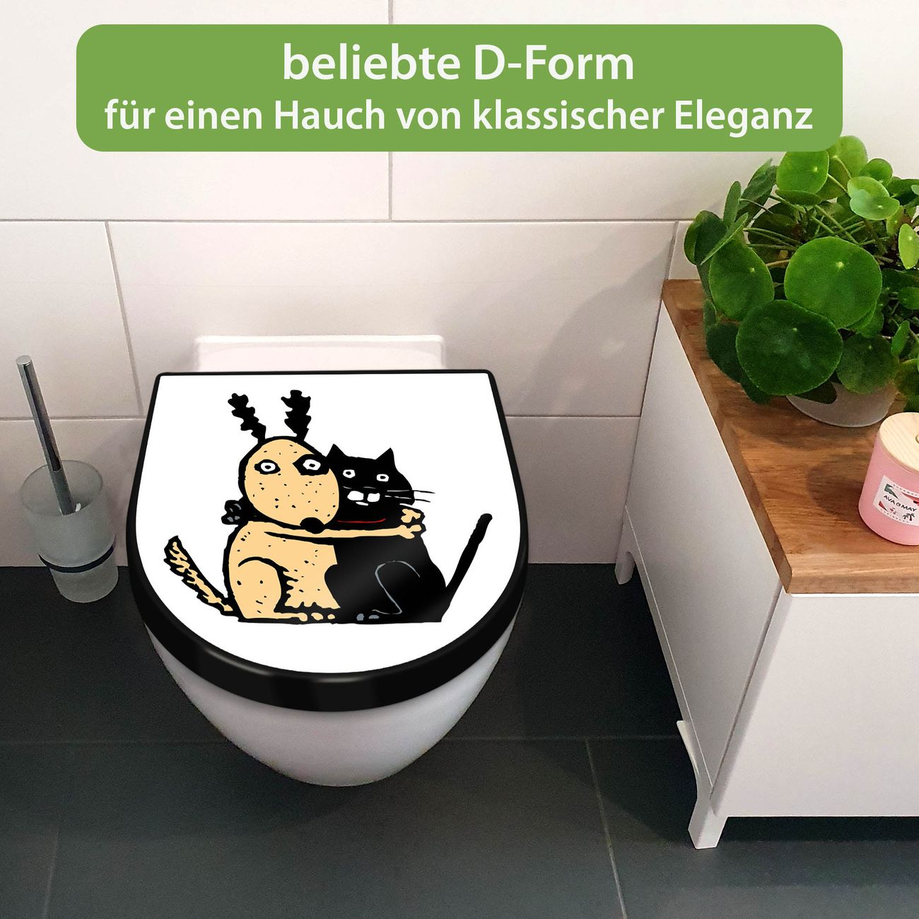 WC Sitz D-Form Schwarz mit Absenkautomatik Motiv Beste Freunde Immer