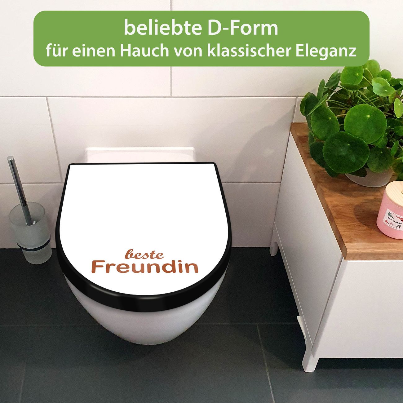 WC Sitz D-Form Schwarz mit Absenkautomatik Motiv beste Freundin 2