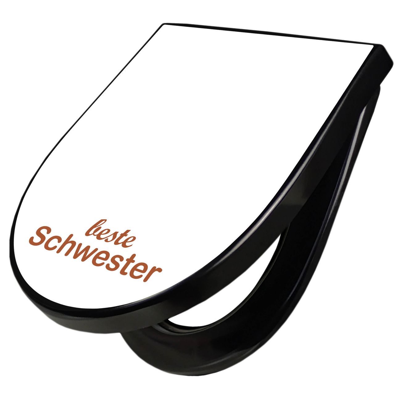 WC Sitz D-Form Schwarz mit Absenkautomatik Motiv beste Schwester 2