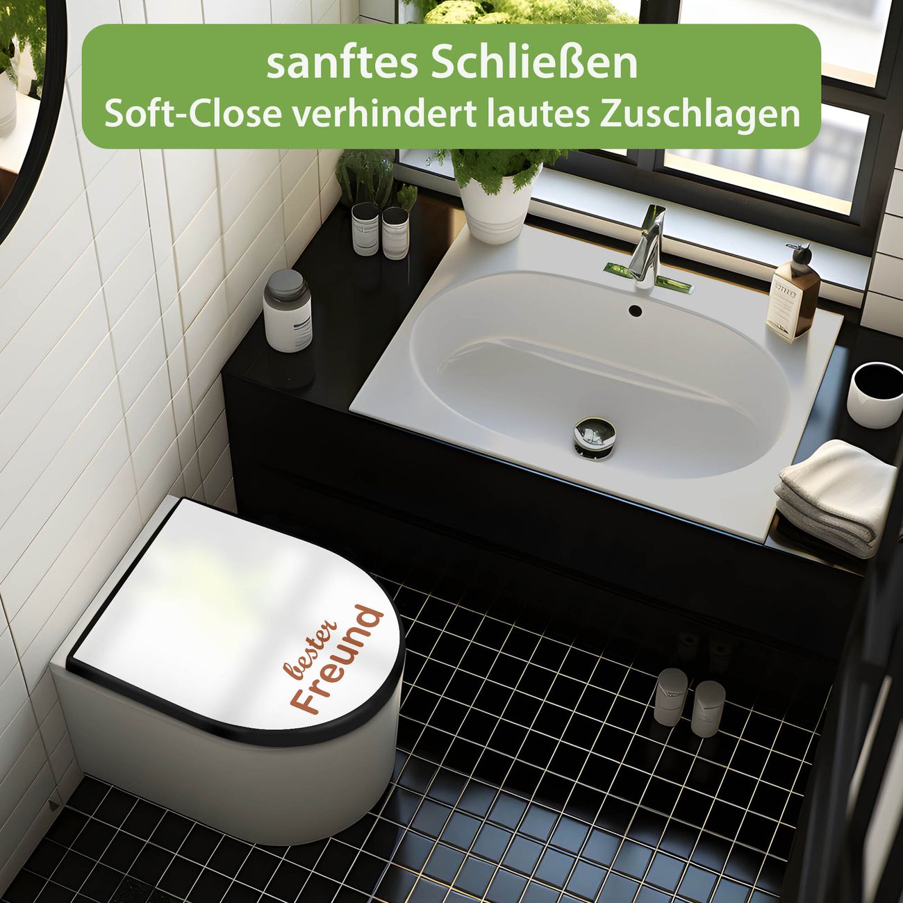 WC Sitz D-Form Schwarz mit Absenkautomatik Motiv bester Freund 2