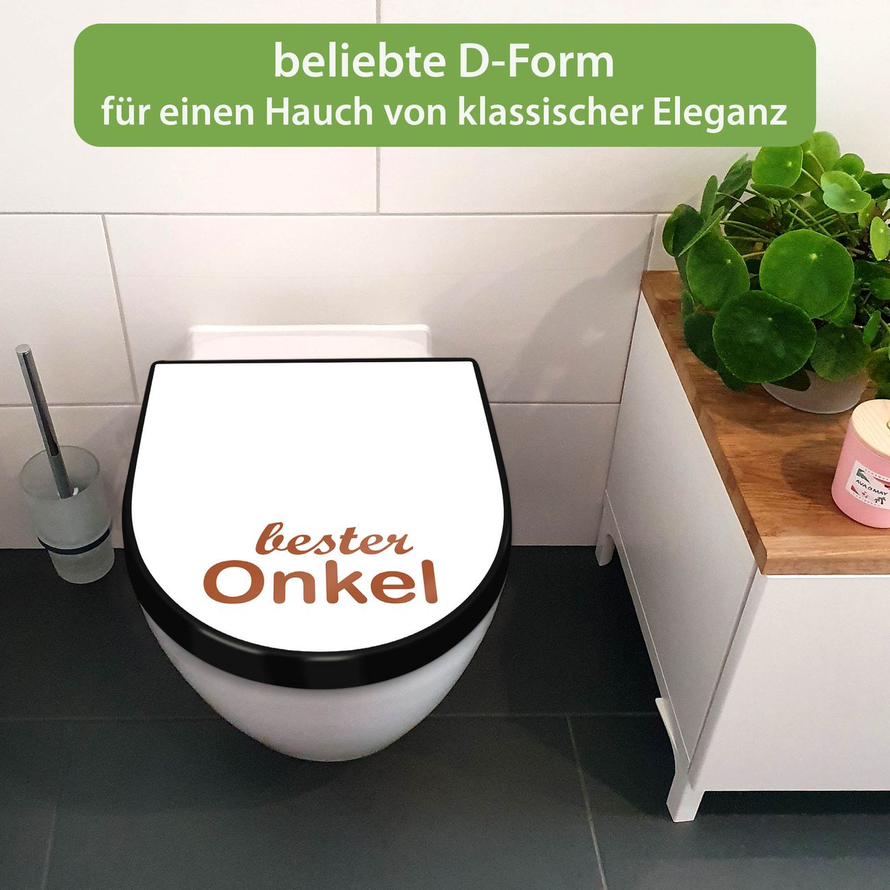 WC Sitz D-Form Schwarz mit Absenkautomatik Motiv bester Onkel 2