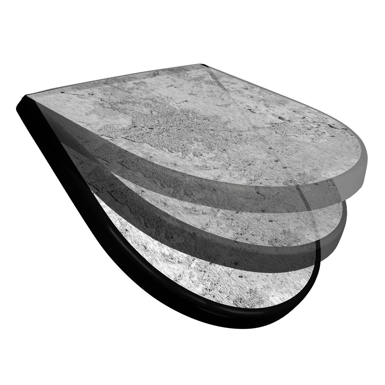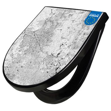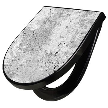 WC Sitz D-Form Schwarz mit Absenkautomatik Motiv Betontextur Grau 2