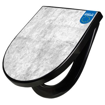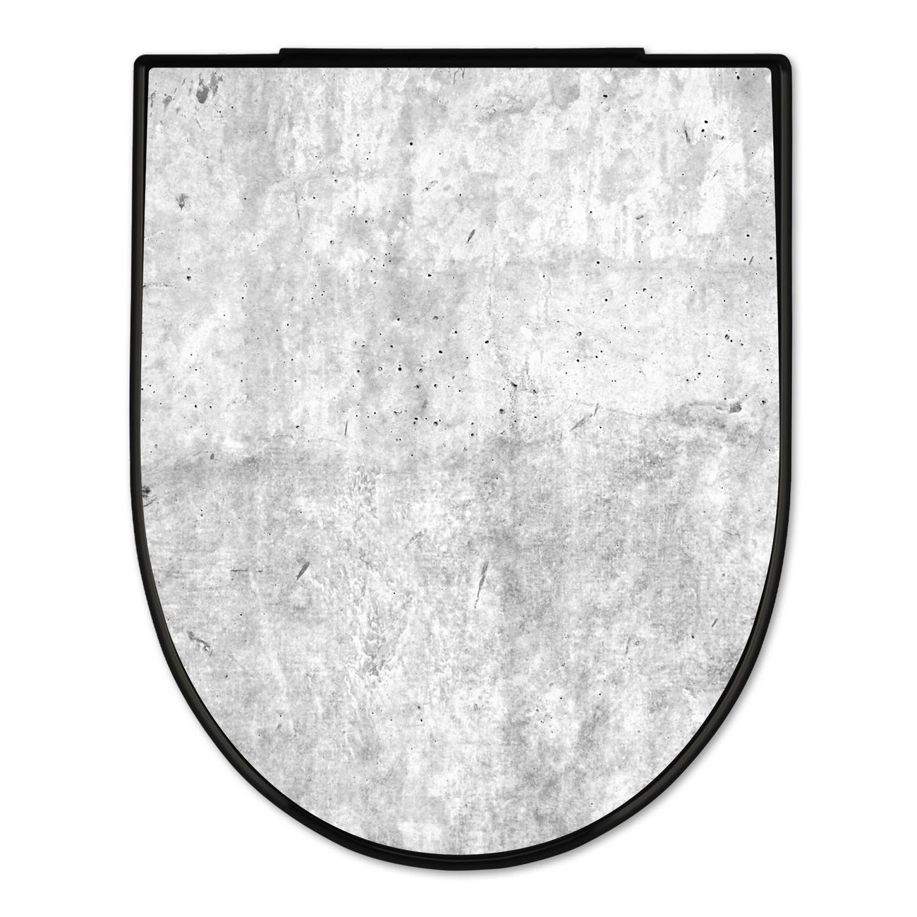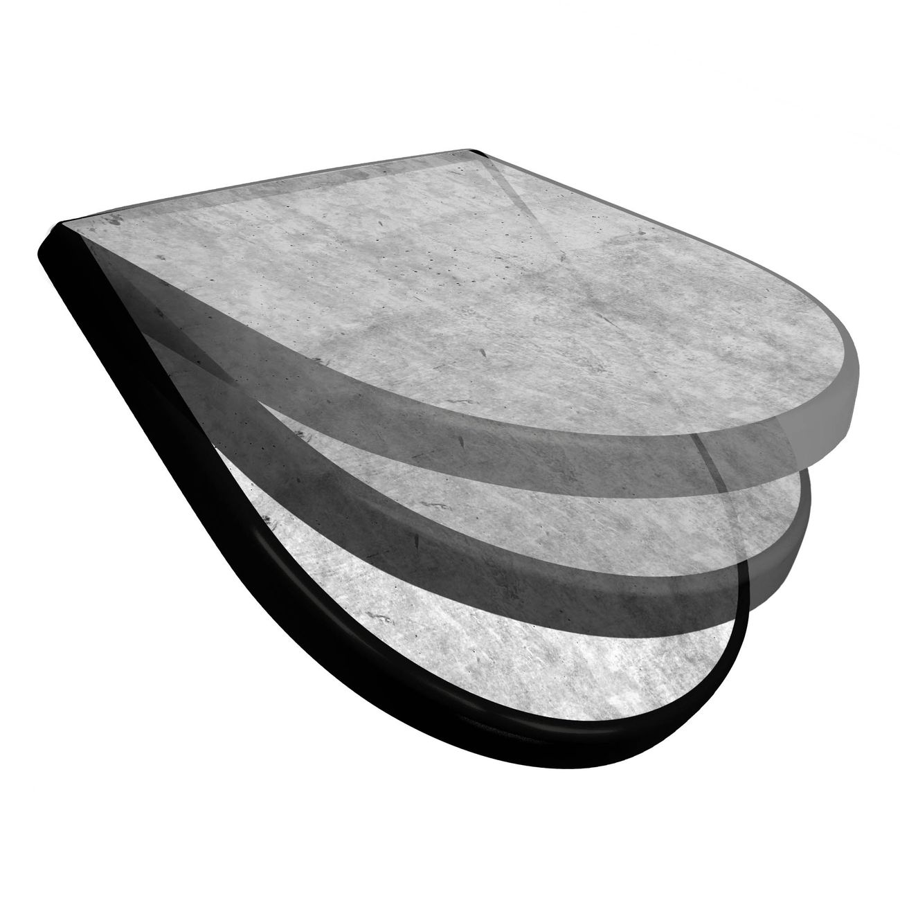 WC Sitz D-Form Schwarz mit Absenkautomatik Motiv Betontextur Grau