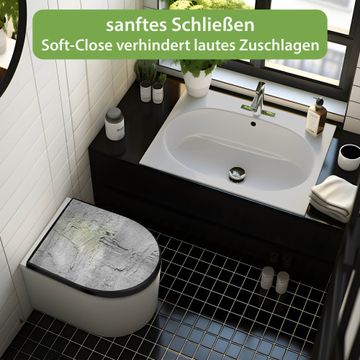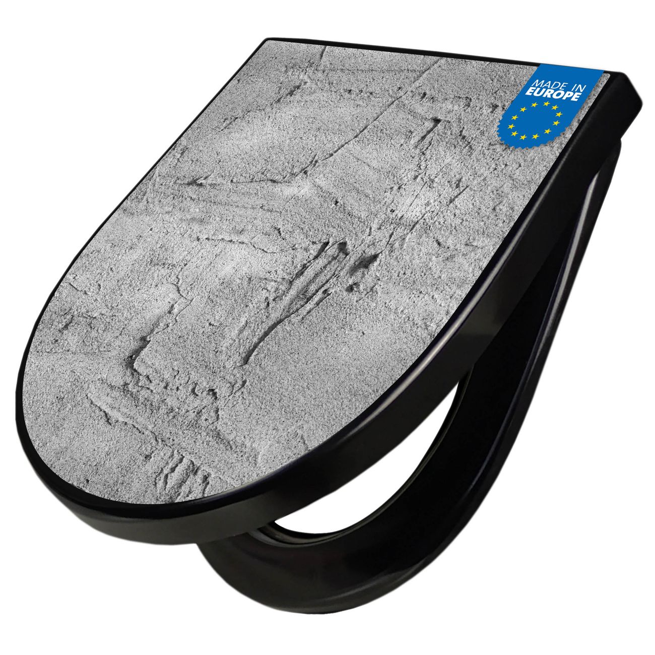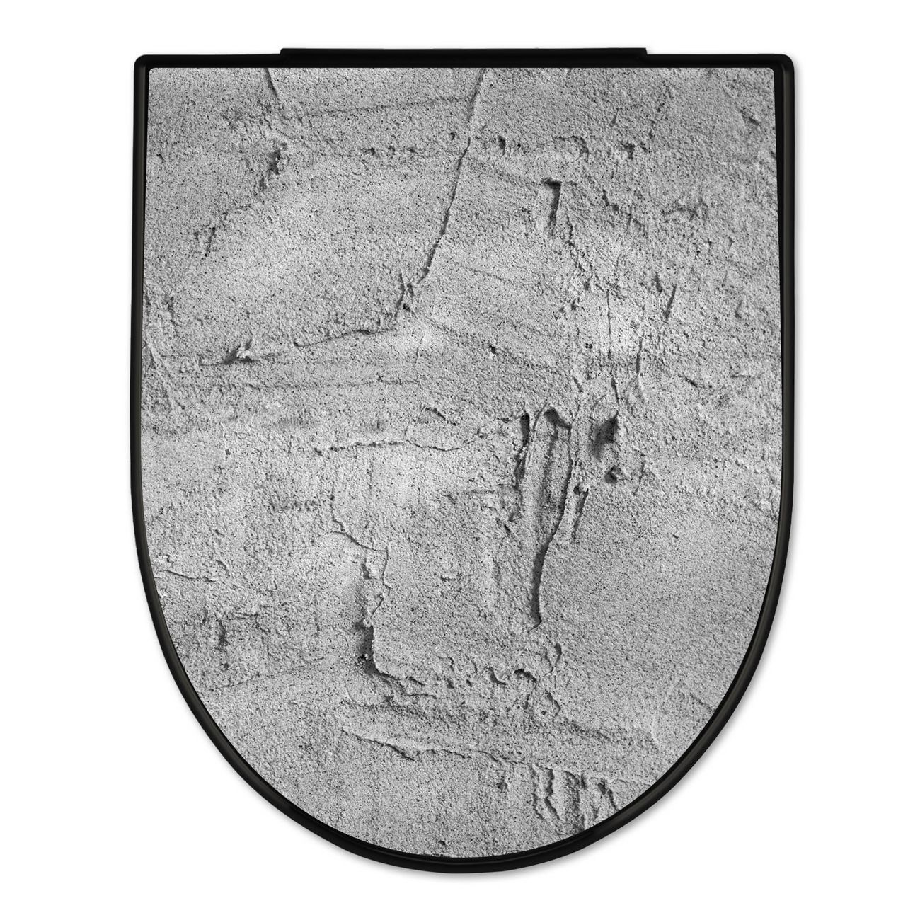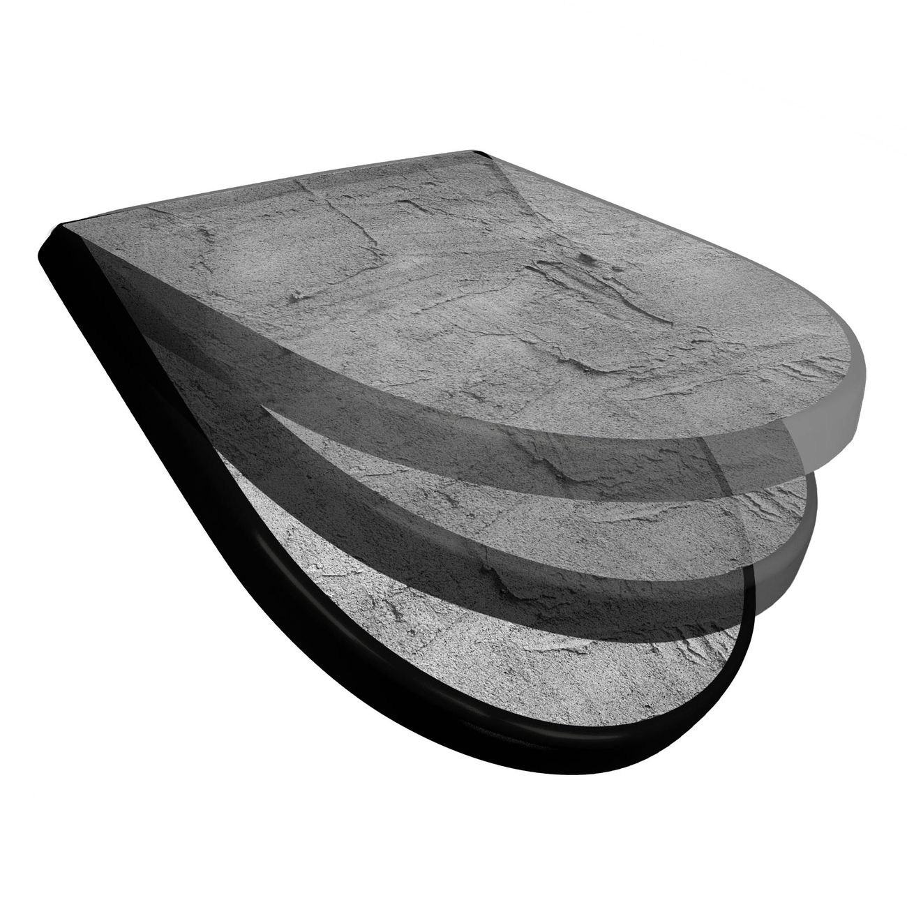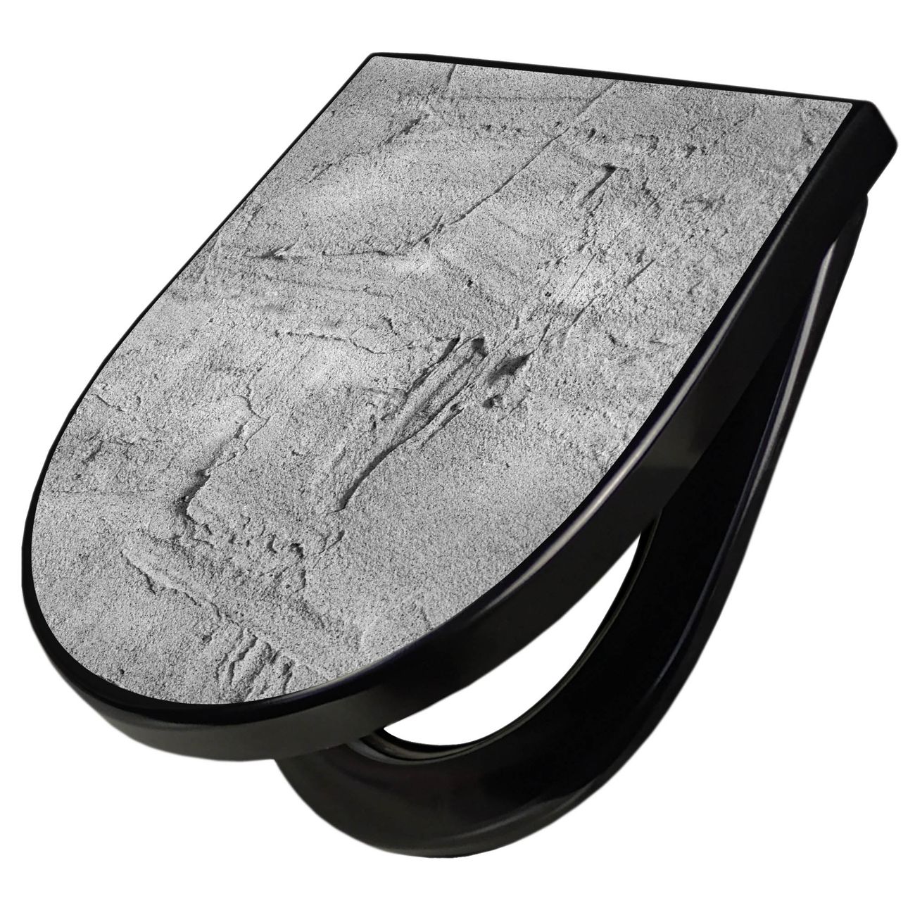 WC Sitz D-Form Schwarz mit Absenkautomatik Motiv Betonwand Struktur Grau